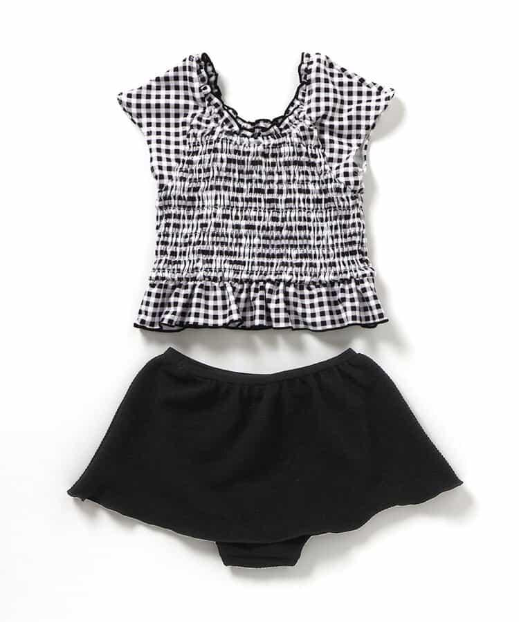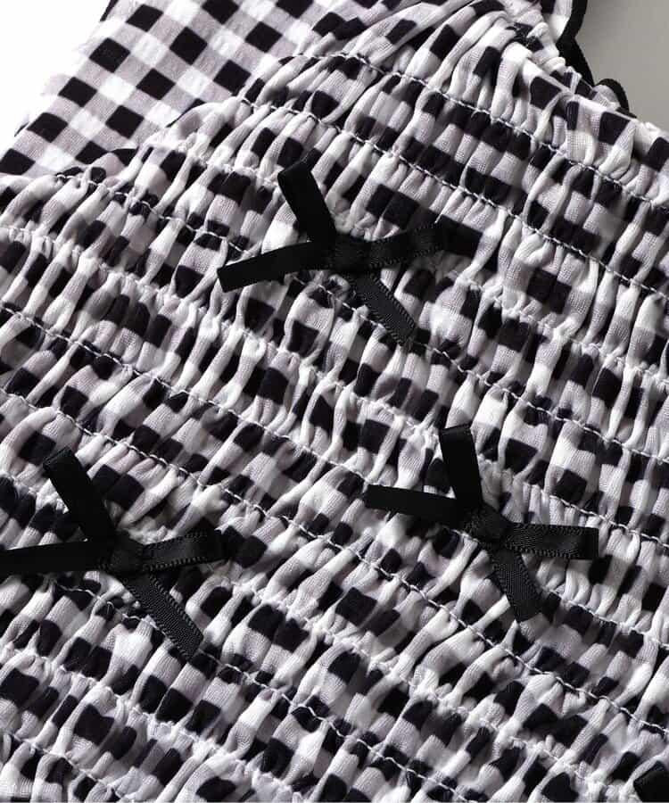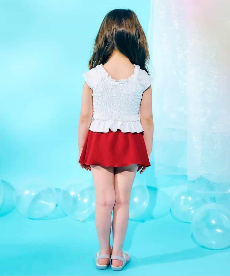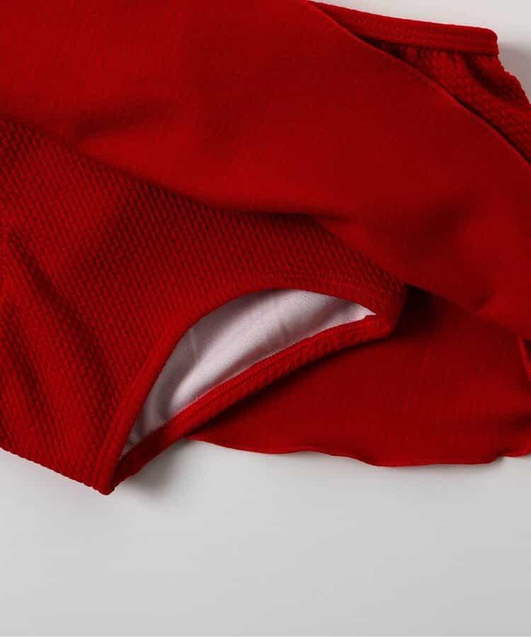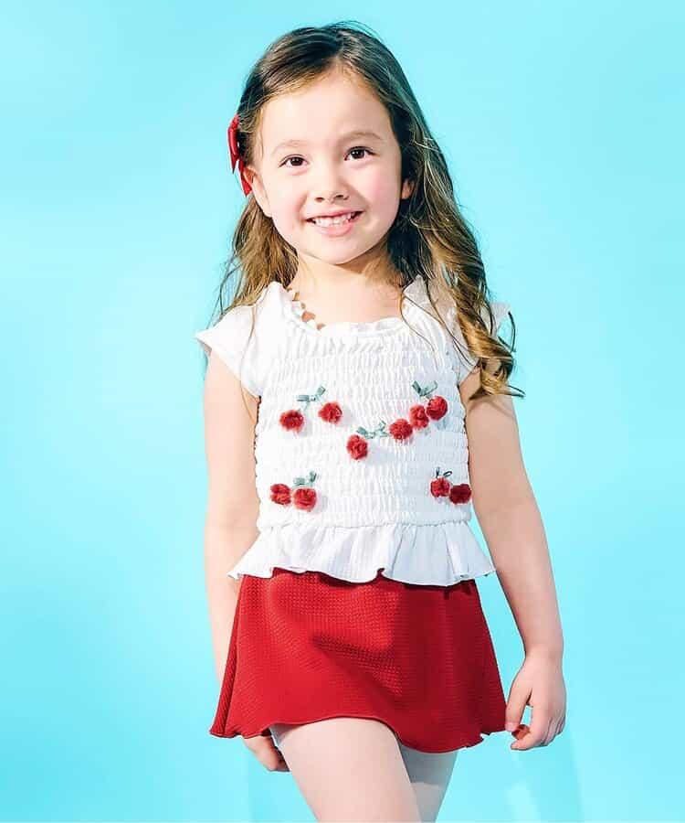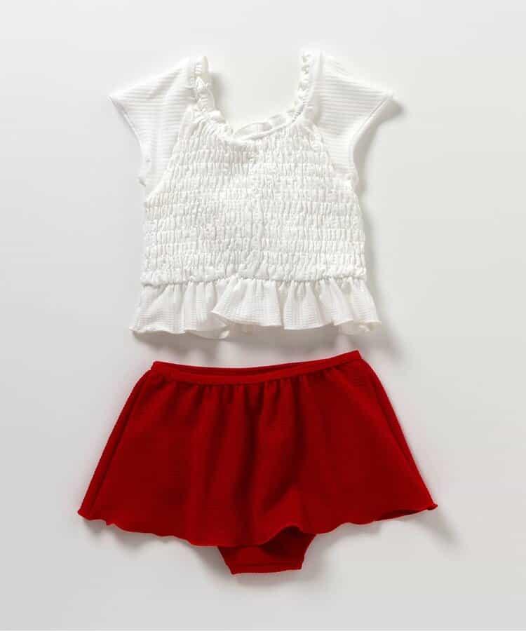 絲帶·櫻桃圖案荷葉邊分體泳衣