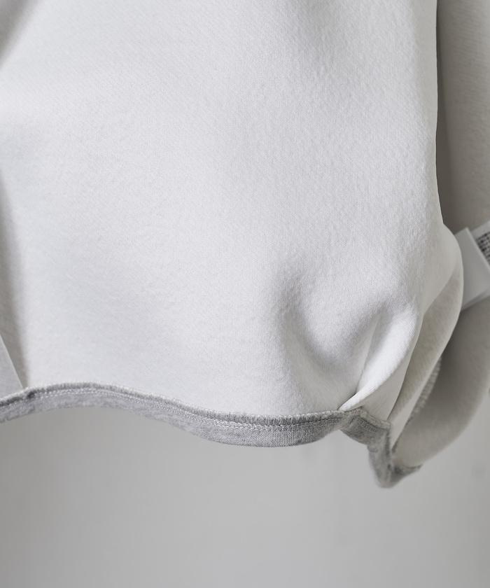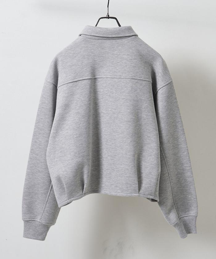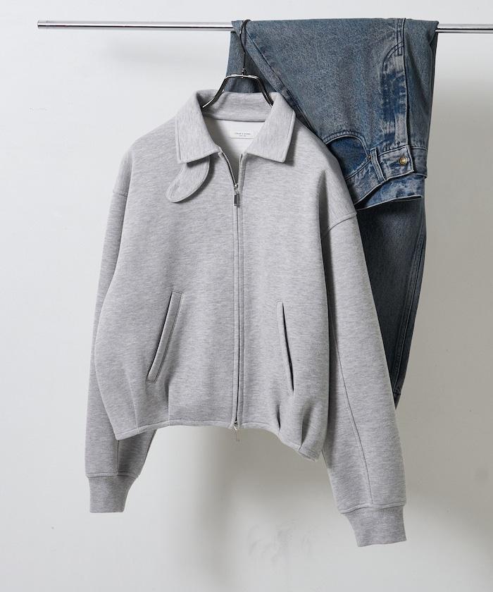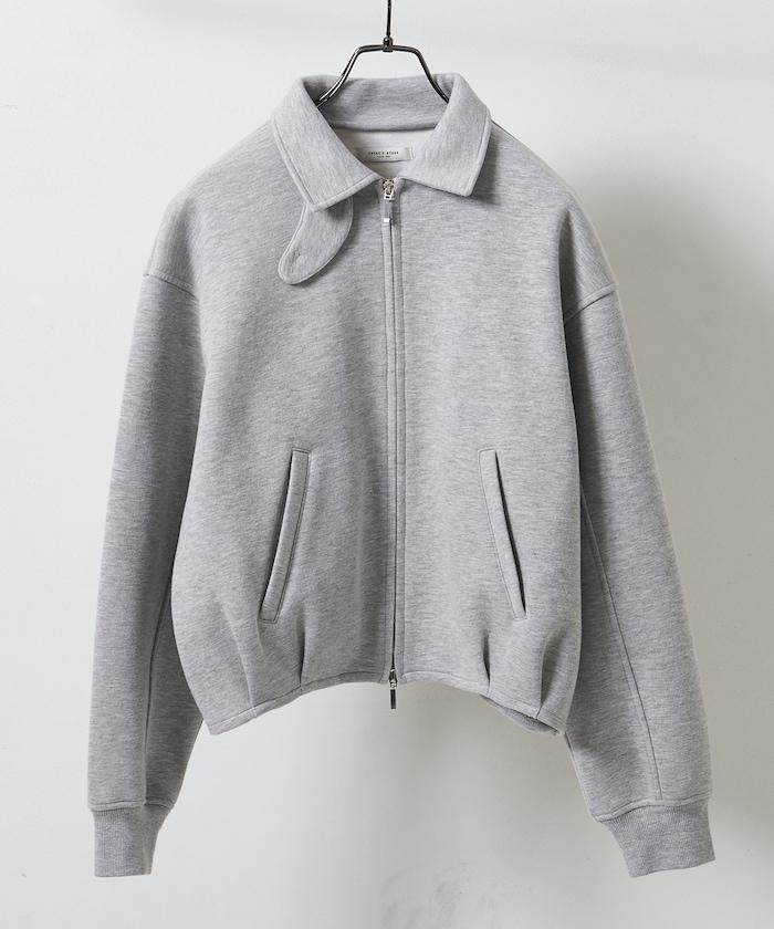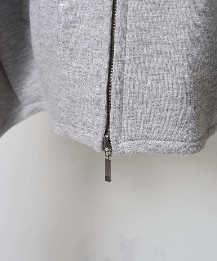 這款夾克衫的特點是通過在下襬處設計褶襉,形成立體輪廓。