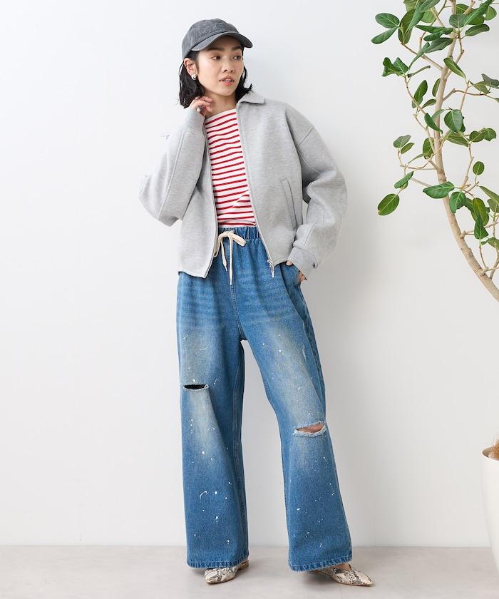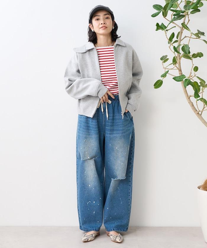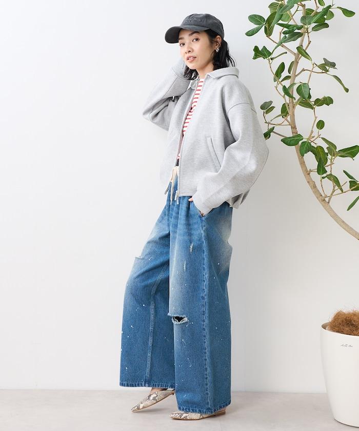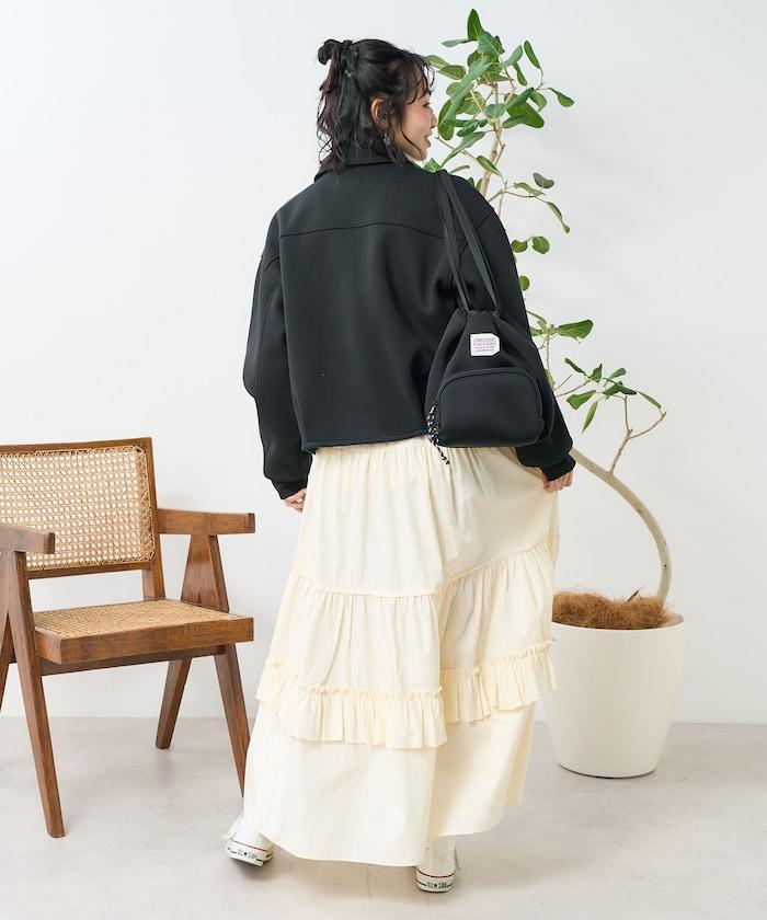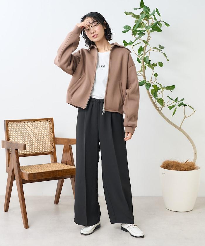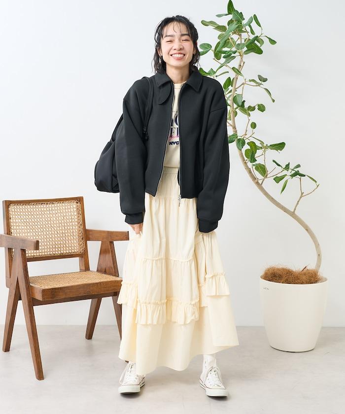 這款夾克衫的特點是通過在下襬處設計褶襉,形成立體輪廓。