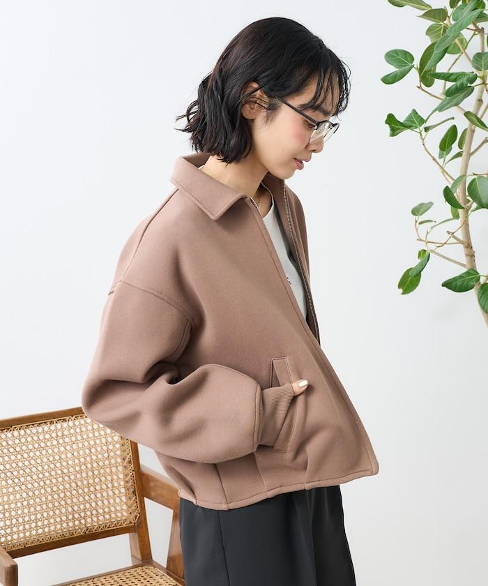 這款夾克的面料正面是薄羊毛襯裡,背面是粘合的薄針織面料。