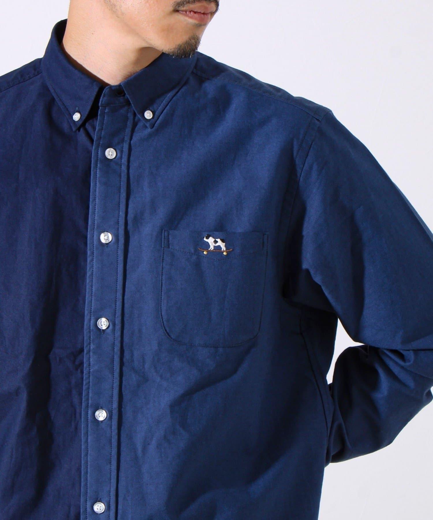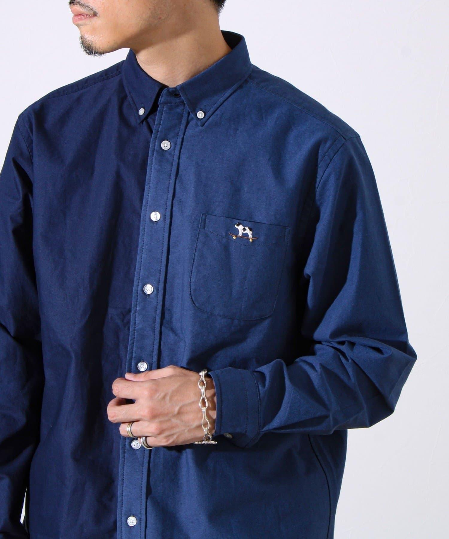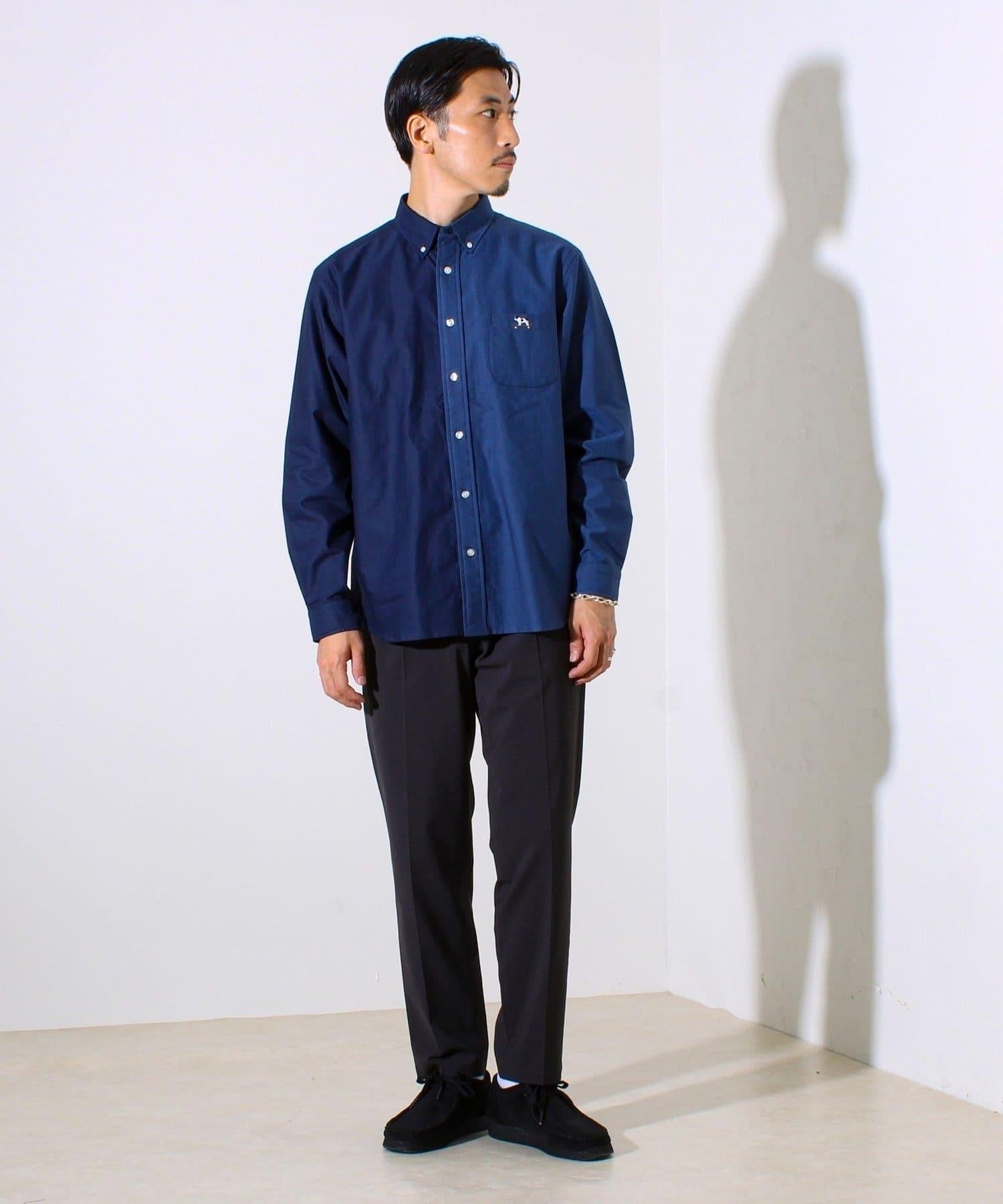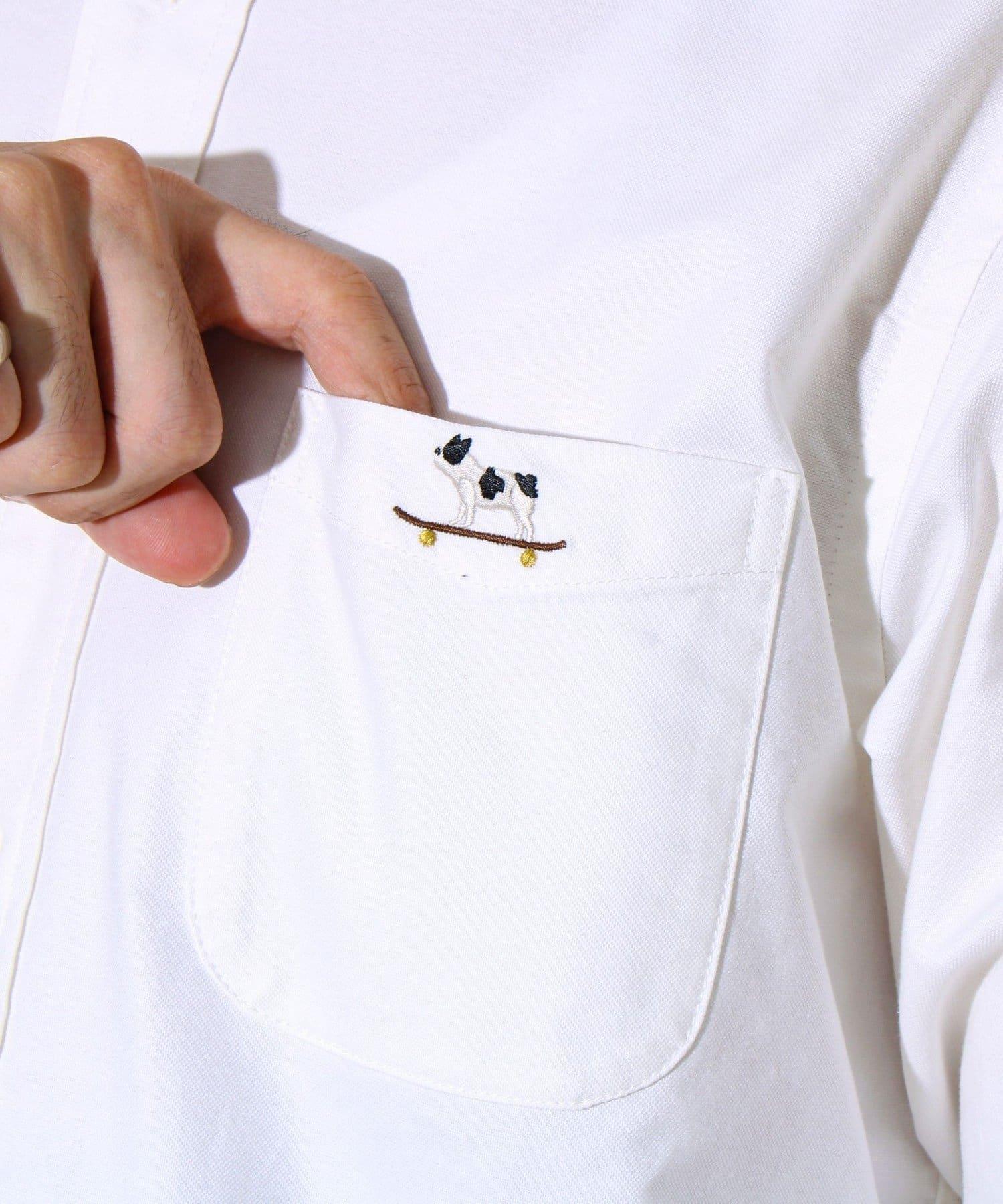 胸前口袋隨意繡有一隻法國鬥牛犬。幽默而特別的點睛之筆。