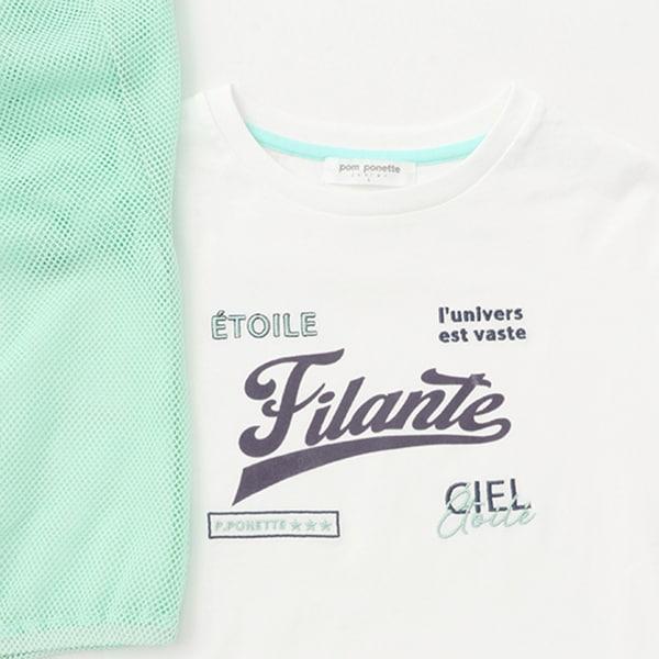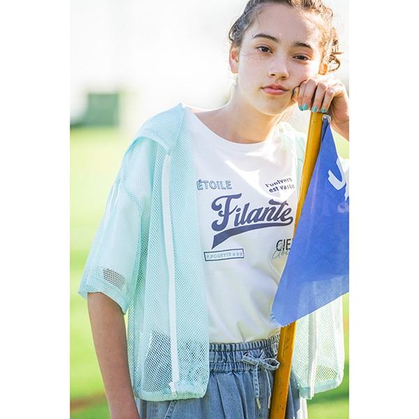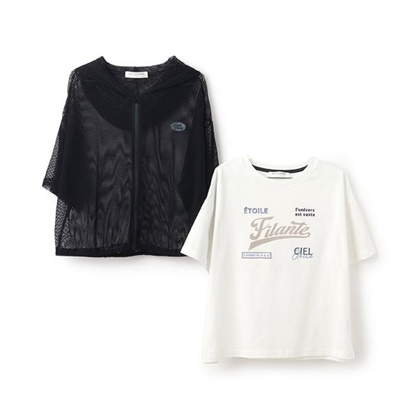 內搭是精緻考究的圖案 T 恤,也可單穿。