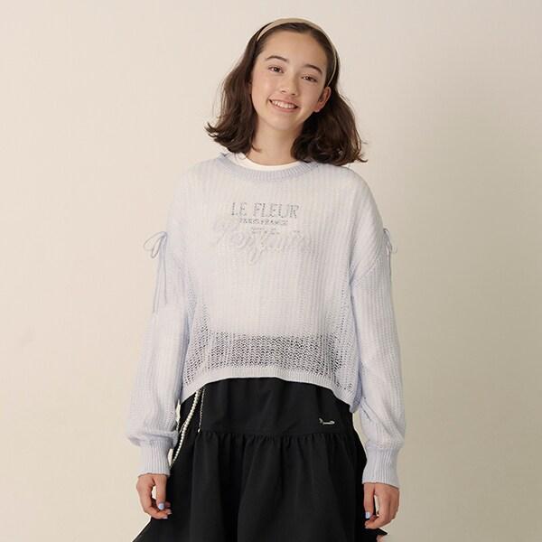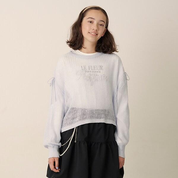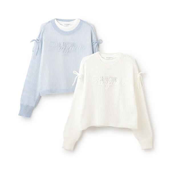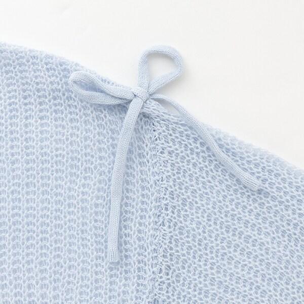 針織衫的袖子上有絲帶,可以解開或以不同方式繫上。
