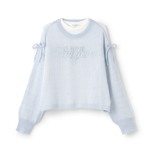 網眼編織針織衫+長袖T恤套裝