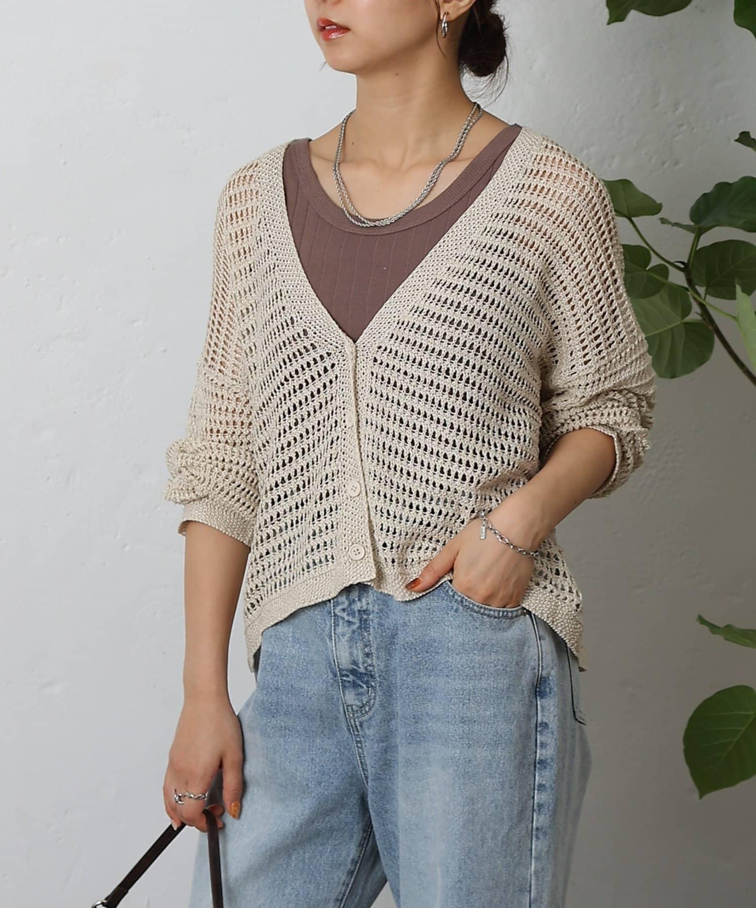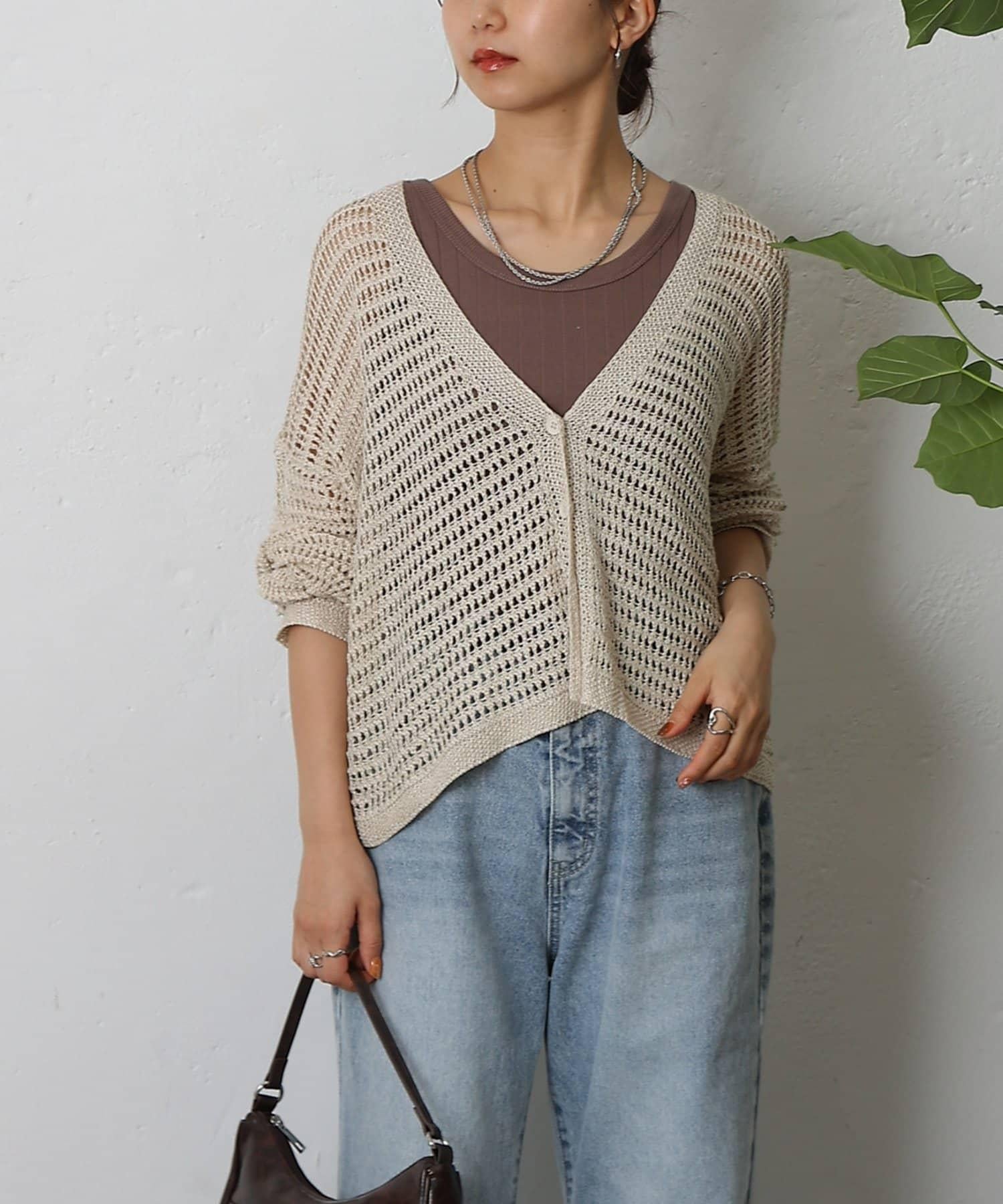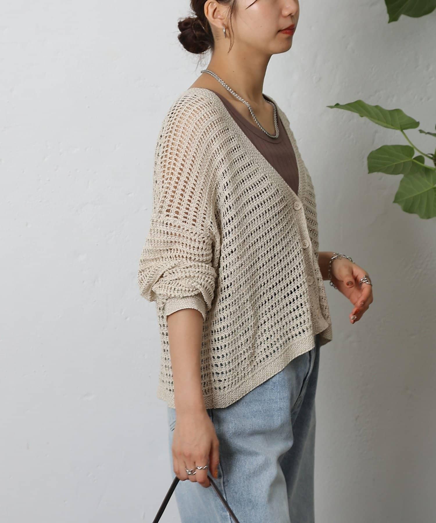 厚實的網眼針織開衫,為你的座標注入一股輕風。只需將它添加到你的常規款式中,就能完成一套時髦的裝扮。針織的版型給人一種很好的慵懶感,風格上帶有成熟的感覺。透氣的網眼針織看起來很酷,非常適合即將到來的季節。它可以疊穿在背心或吊帶衫上,露出健康的肌膚,也可以疊穿在連衣裙或襯衫上,打造優雅的疊穿風格。它也非常方便放在包裡,在旅行或其他短途旅行時,需要時可以迅速穿上。亞麻混紡面料質地輕盈,觸感舒適。自然的色調,將天然材料的質感發揮得淋漓盡致,是任何搭配都能輕鬆駕馭的一大看點 ◎無論春夏秋冬還是漫長的季節,它都是一款值得信賴的服飾,一定會活躍在你的生活中。