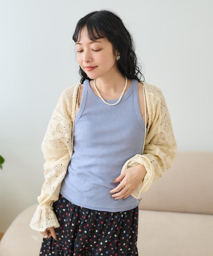 即使作為內搭穿著,也能瞥見肩帶和下襬,增添時尚休閒感。