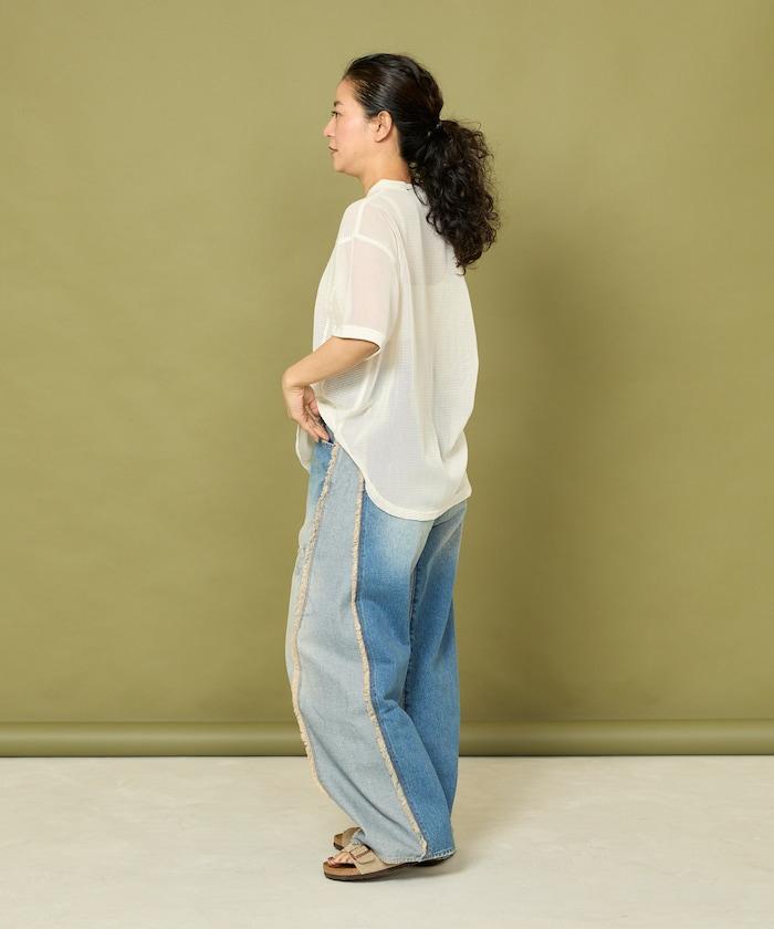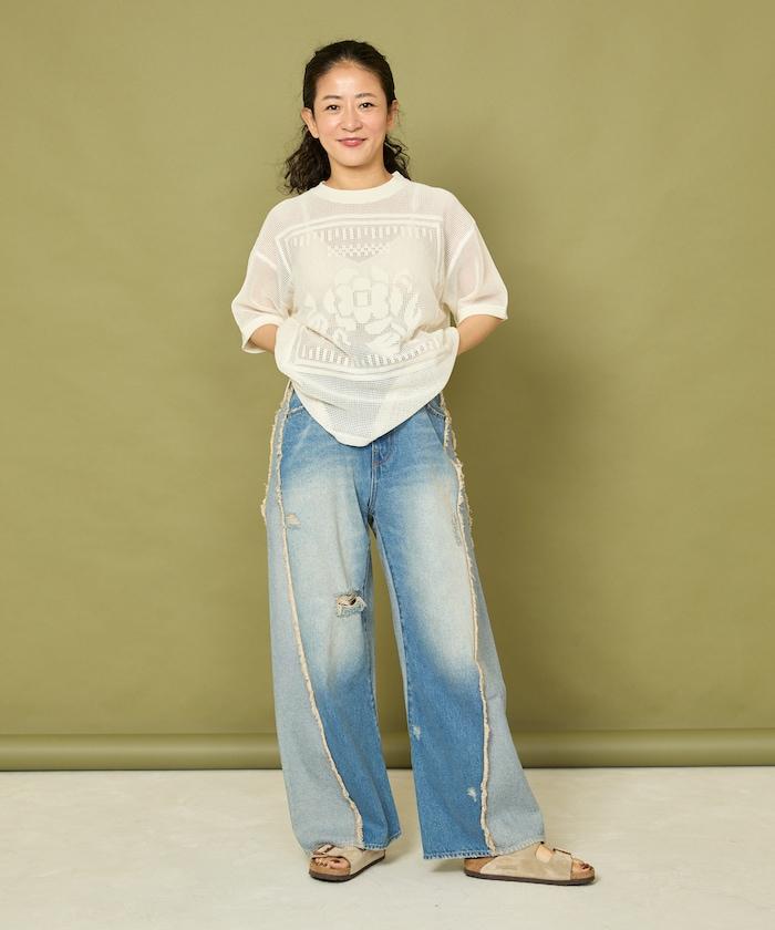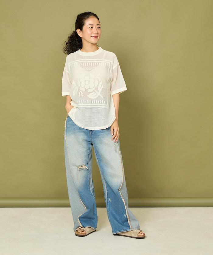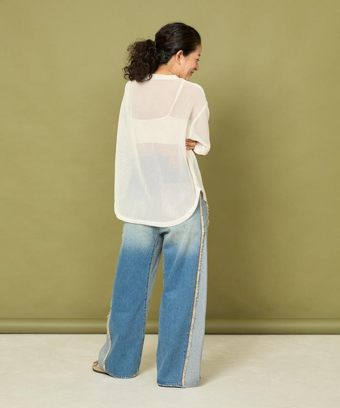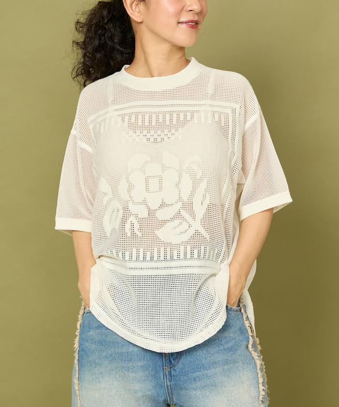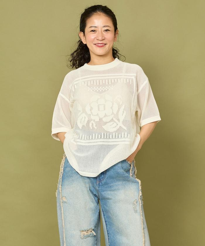 這是秋季的新單品,但它是使用秋色網狀蕾絲的上衣,從炎熱的季節開始就可以穿著。