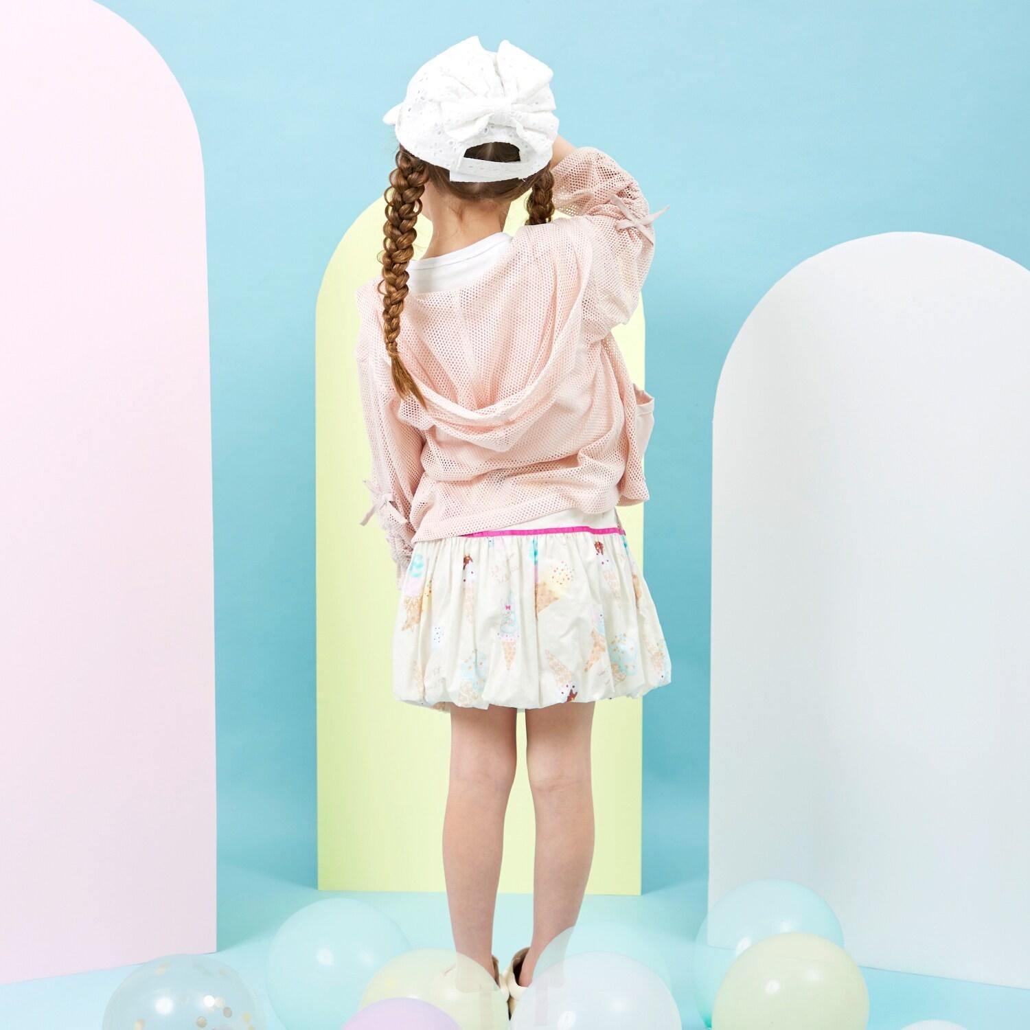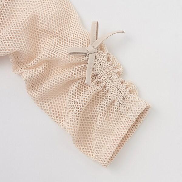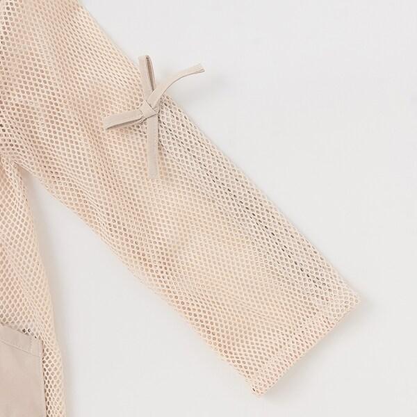 袖子採用抽繩設計,可以收攏以創造不同的平衡感。(絲帶是裝飾性的。袖長可在反面輕鬆繫上)。