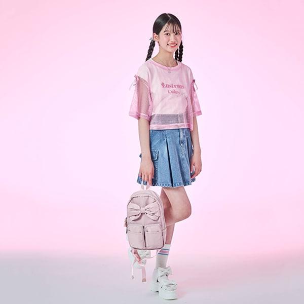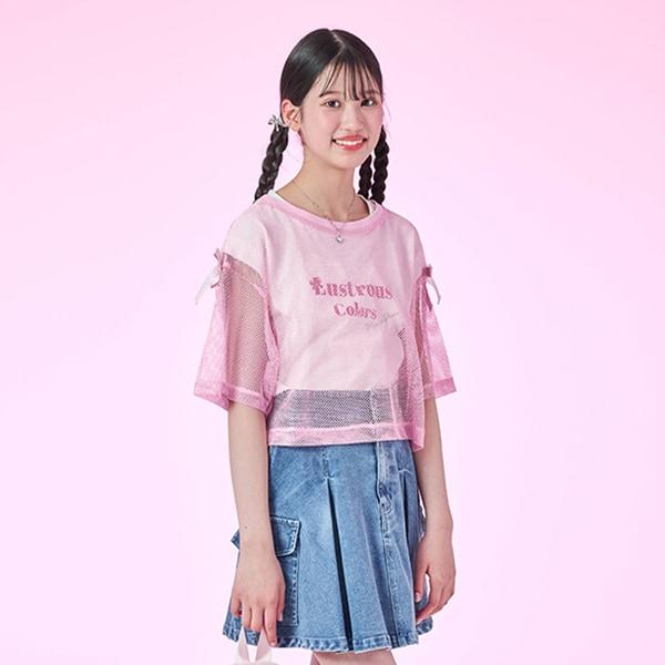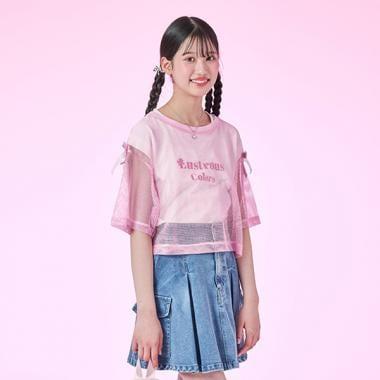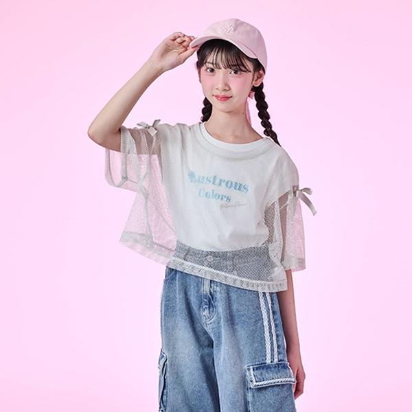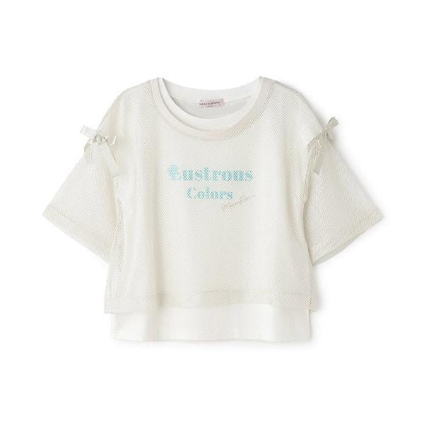 這款肩部飾有絲帶的網眼 T 恤可以疊穿,讓季節氛圍更加濃郁。