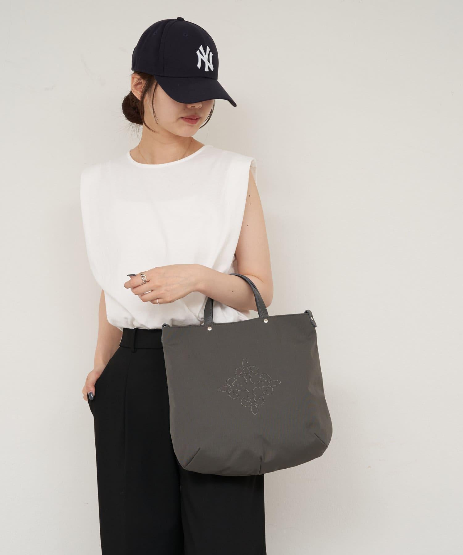 刺繡字母圖案是這款包的一大特色,給人一種基本的印象,但在設計上卻閃耀著個性的光芒。