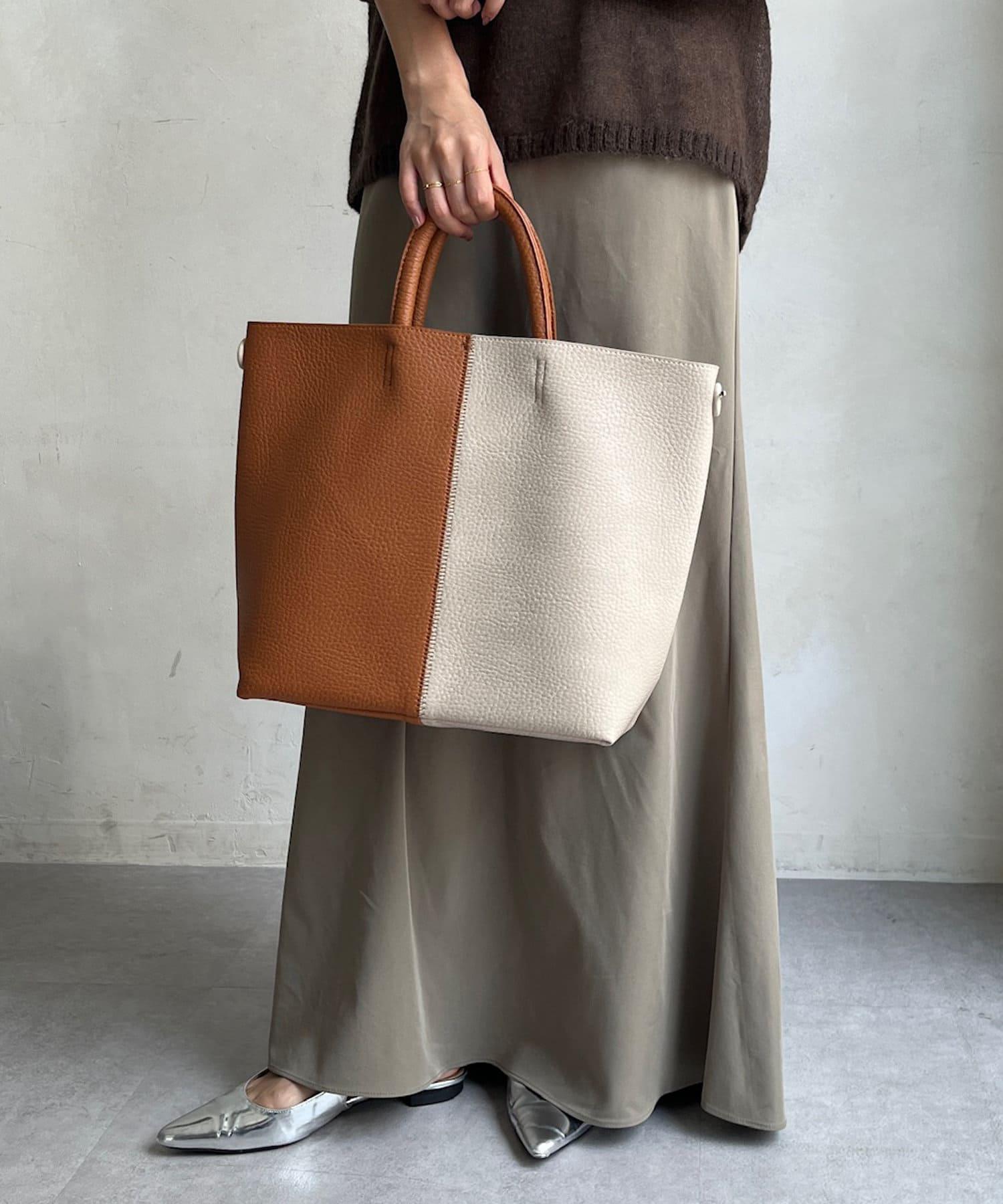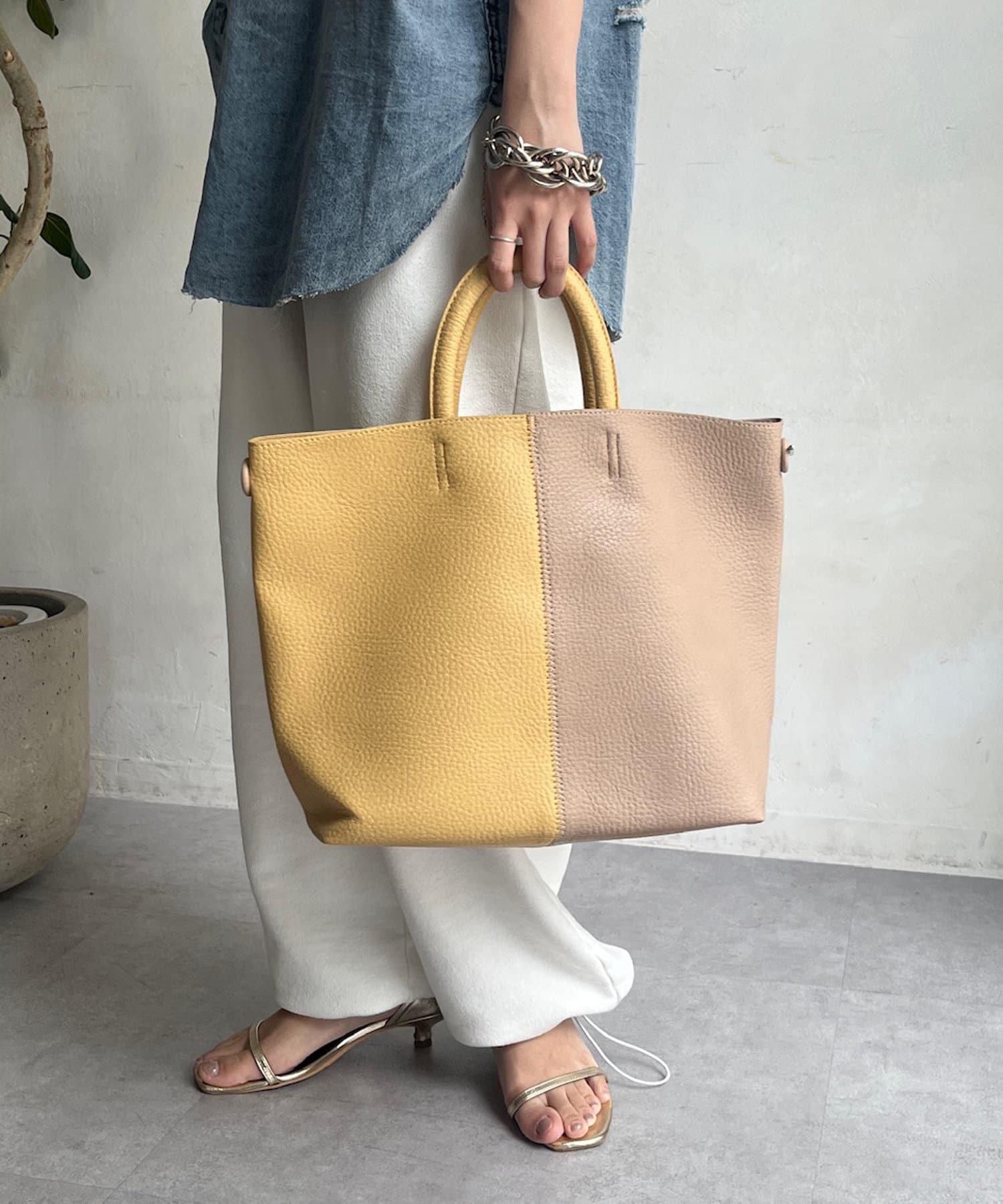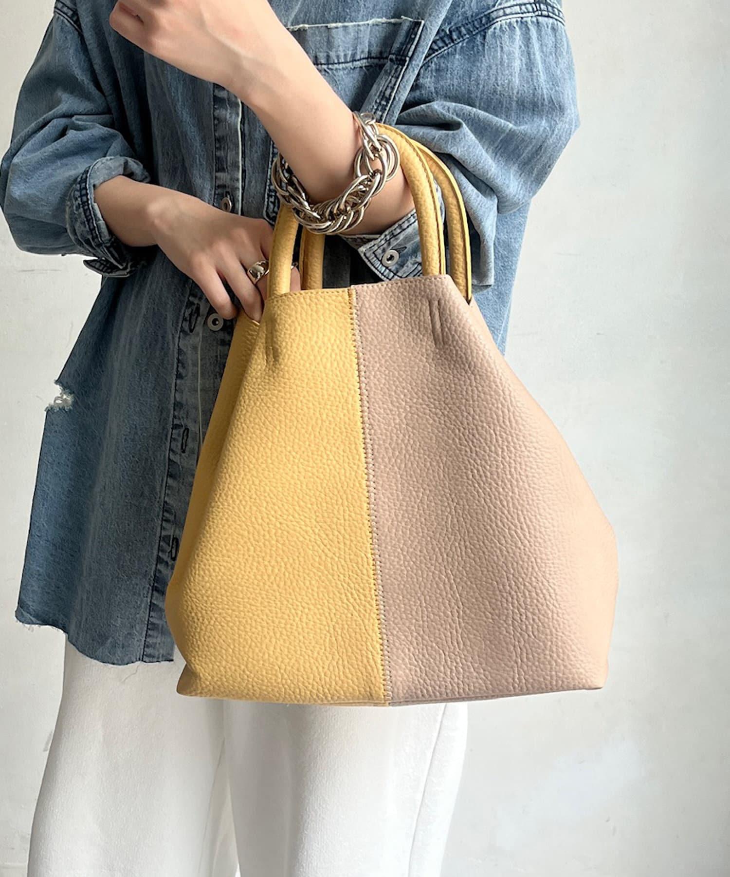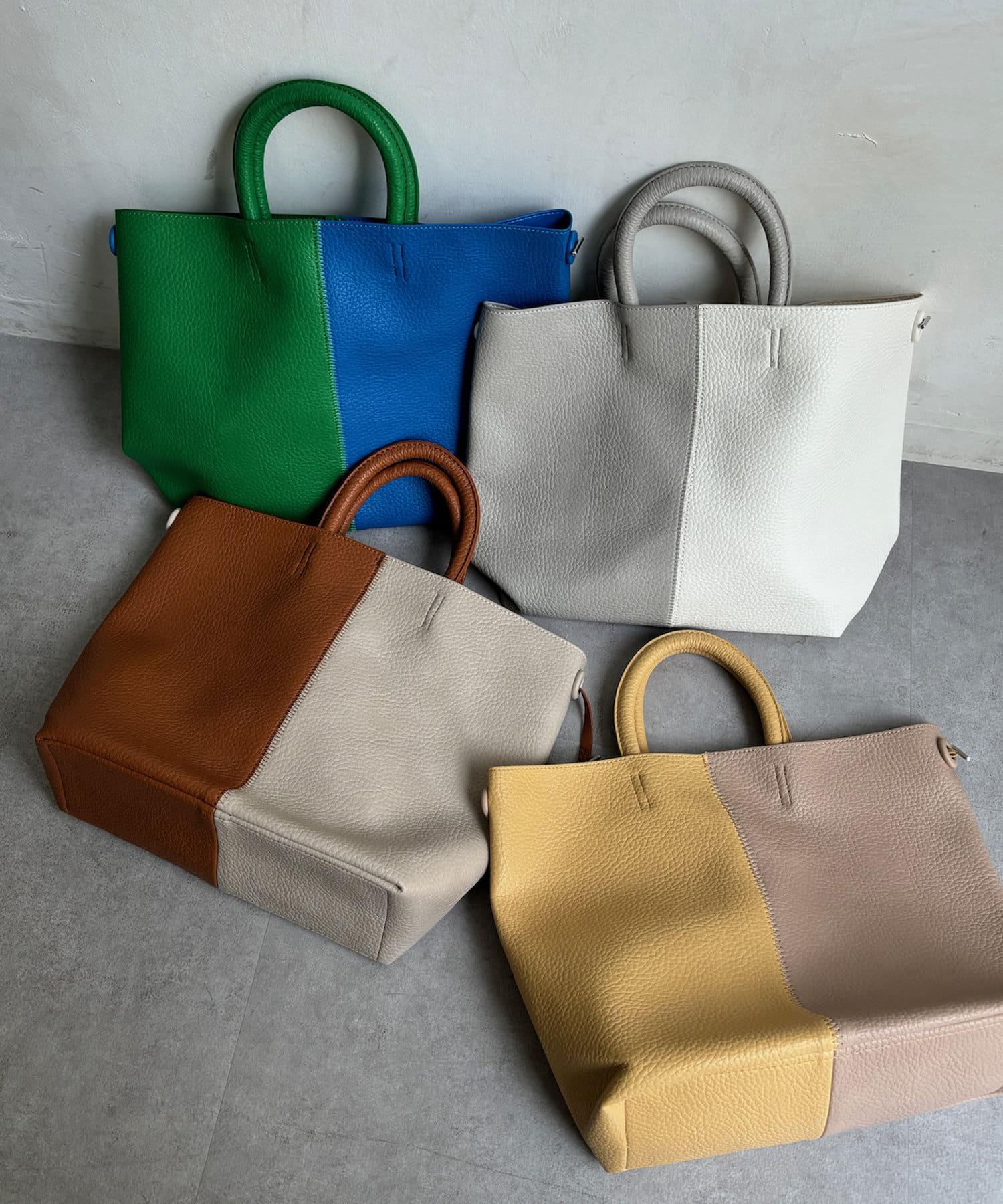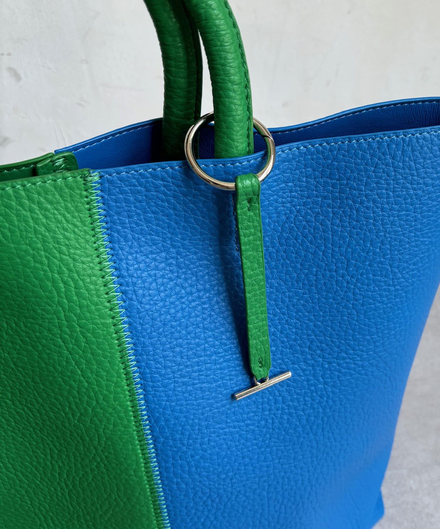這款手提包設計俏皮,主體中央分為兩種顏色。