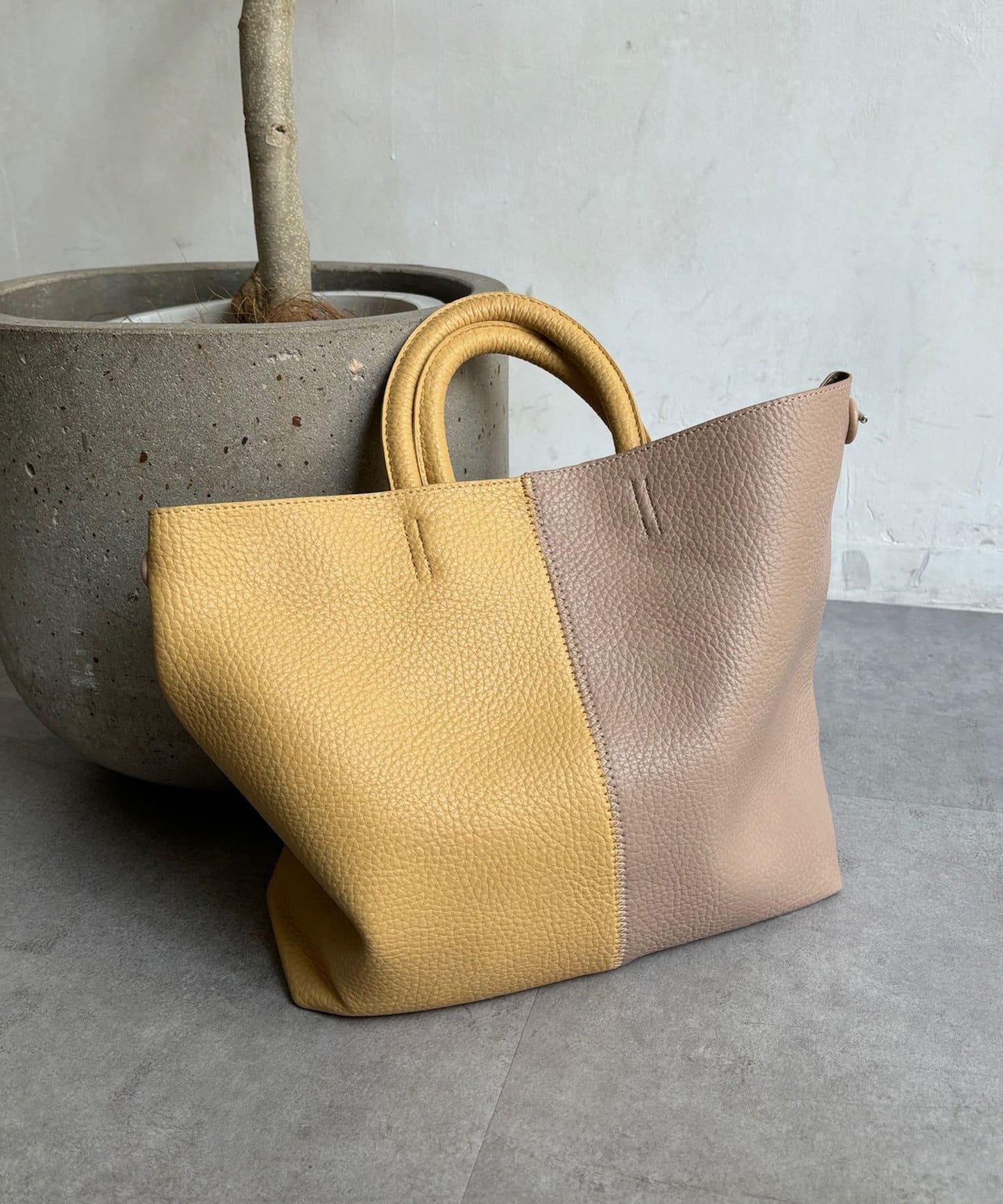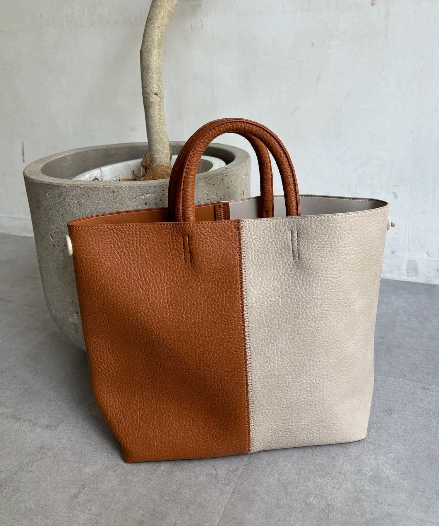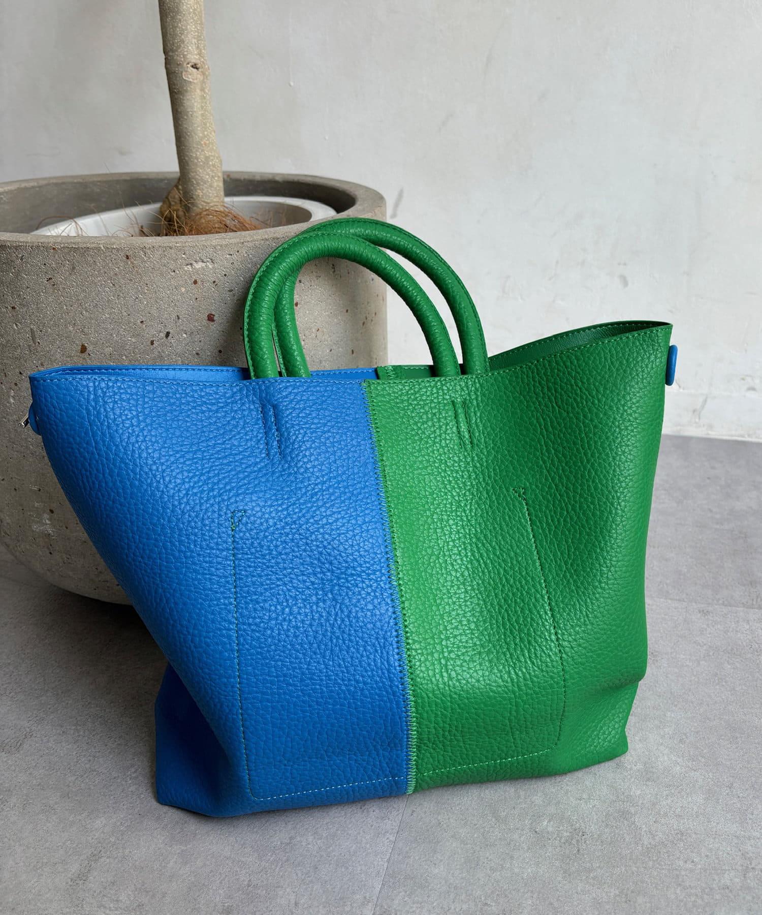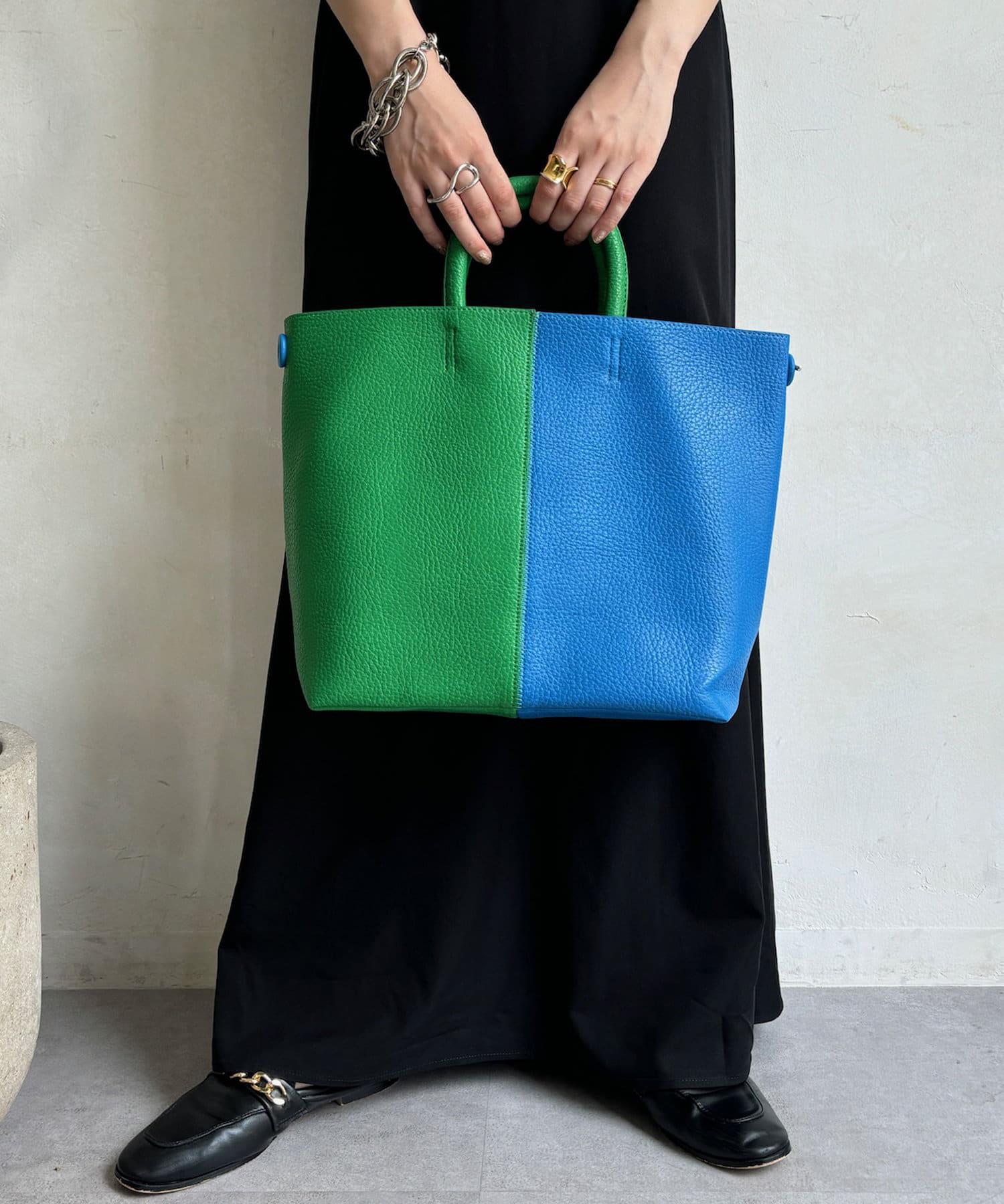 這款手提包設計俏皮,主體中央分為兩種顏色。