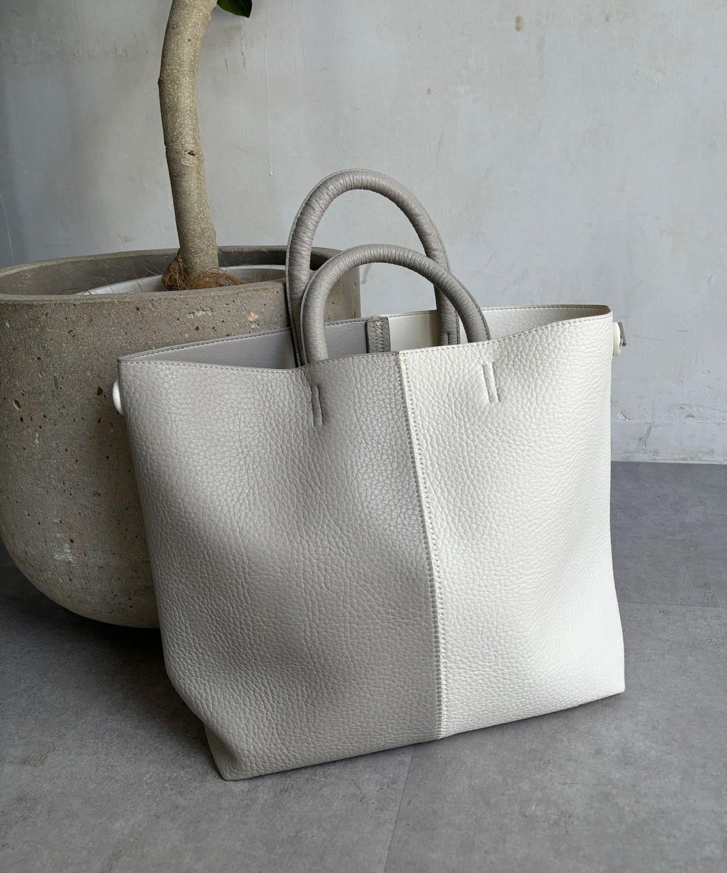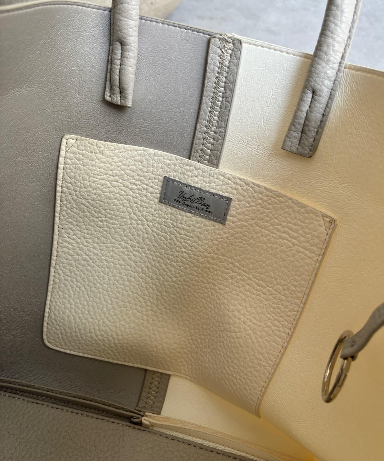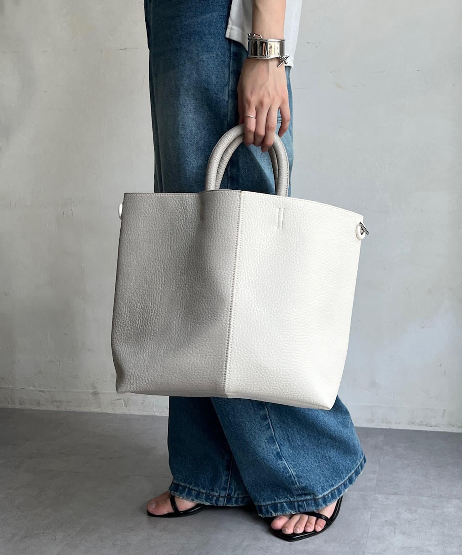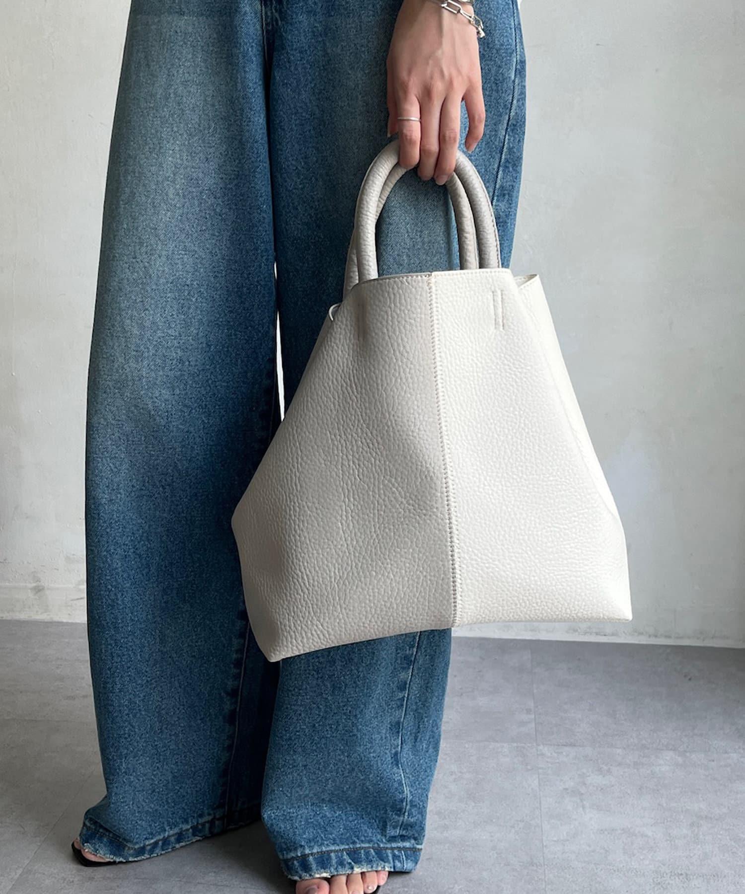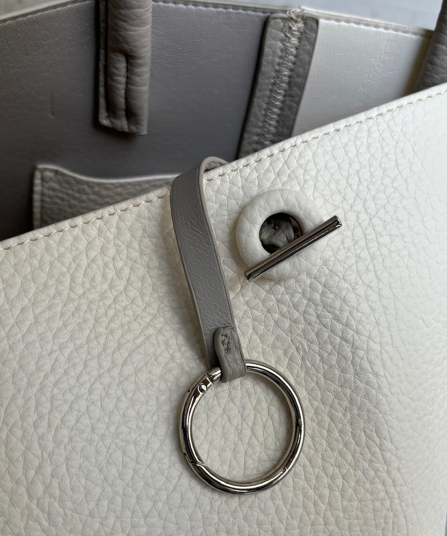 這款手提包設計俏皮,主體中央分為兩種顏色。