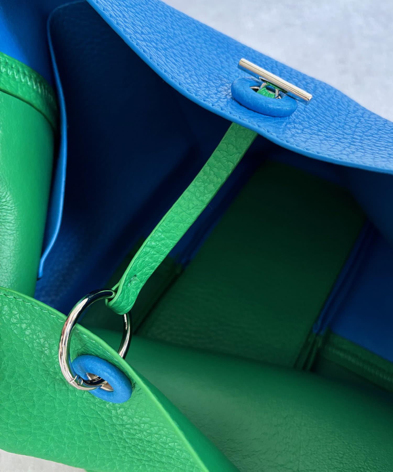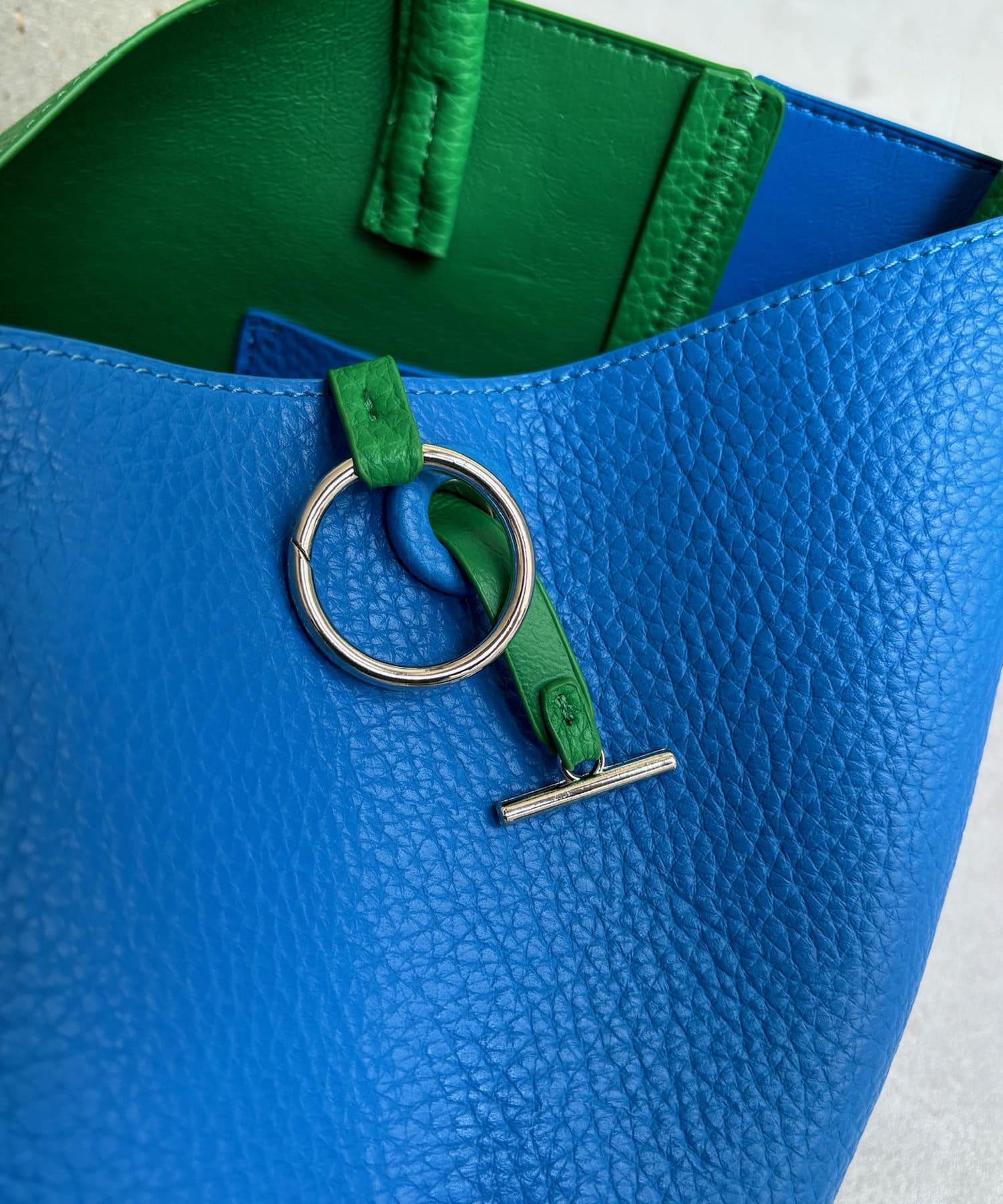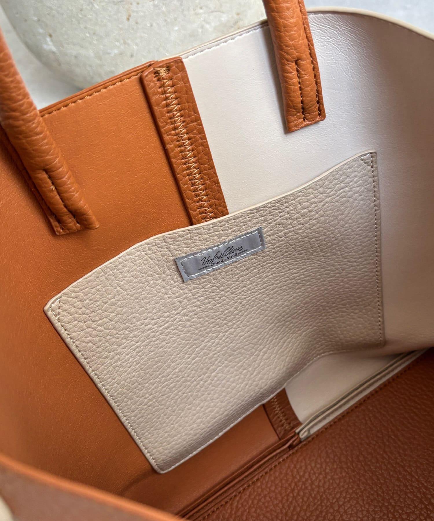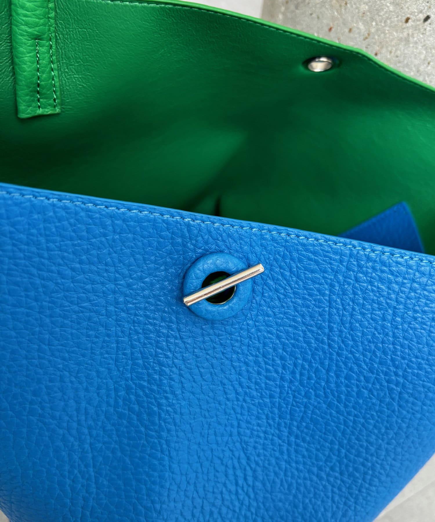 這款手提包設計俏皮,主體中央分為兩種顏色。