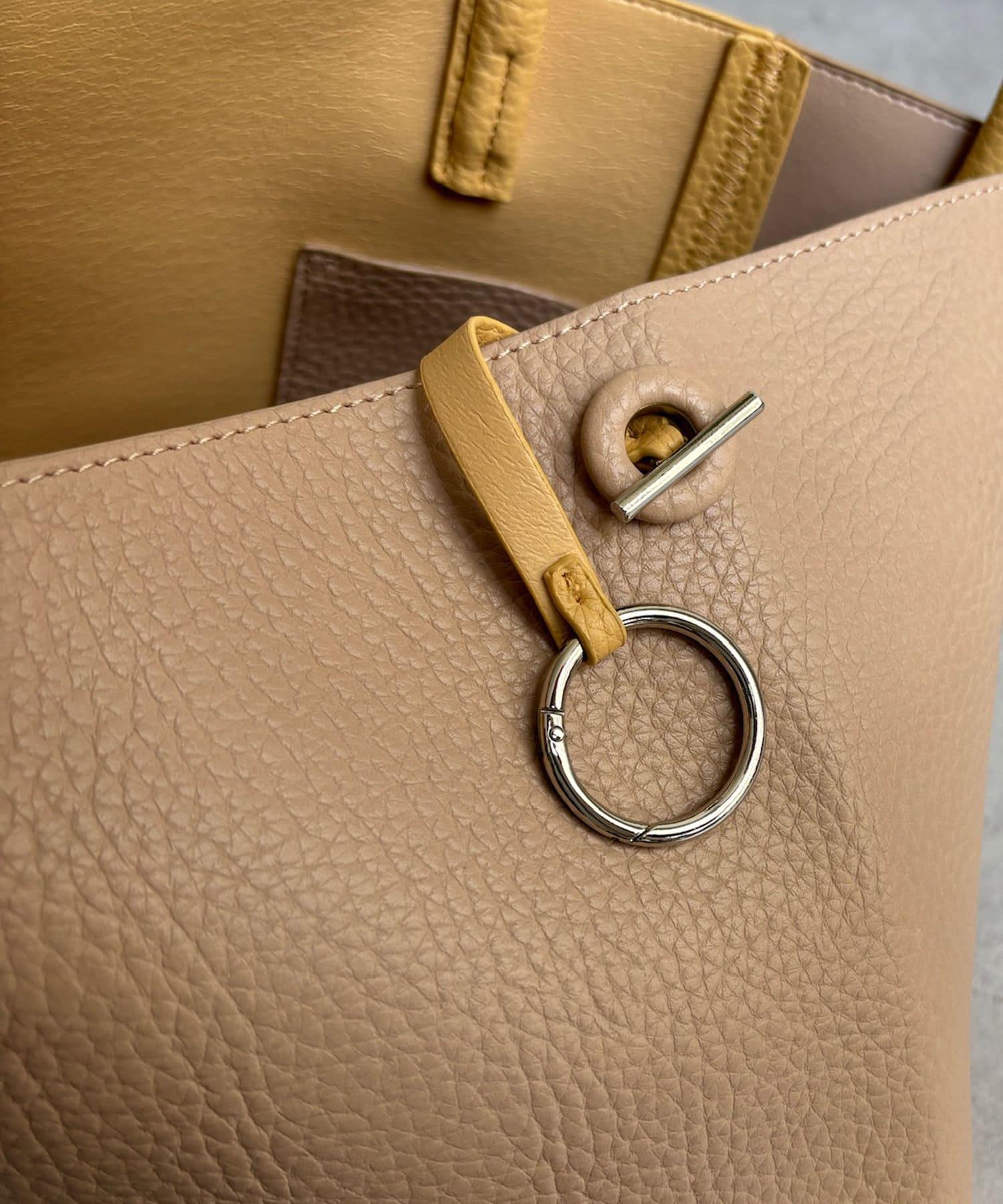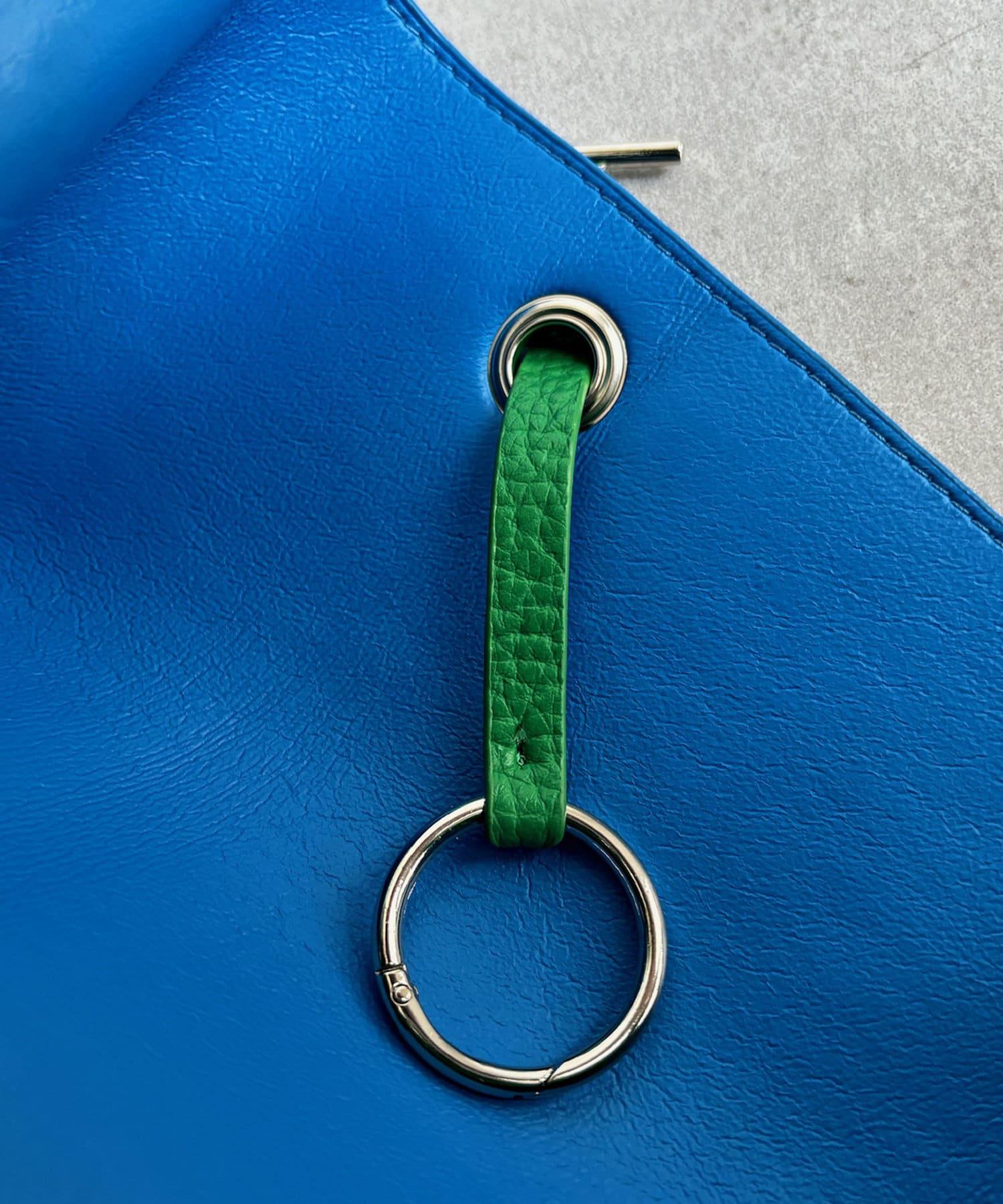 附帶的掛飾不僅可以原封不動地作為掛飾使用,還可以勾在兩側的小孔上,改變包包的形狀。