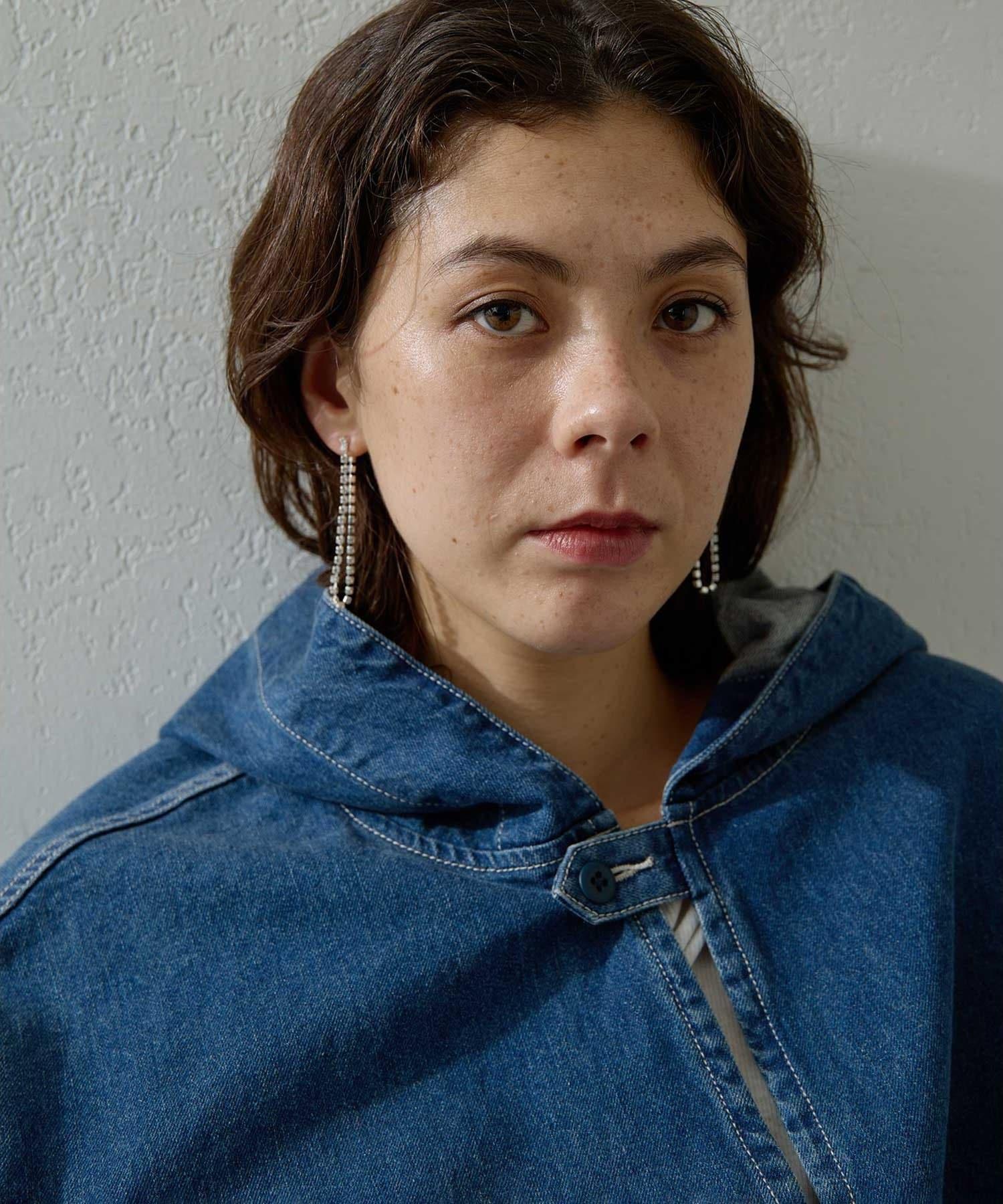 長形耳環的末端有一個卡扣,摺疊後可扣在耳後。