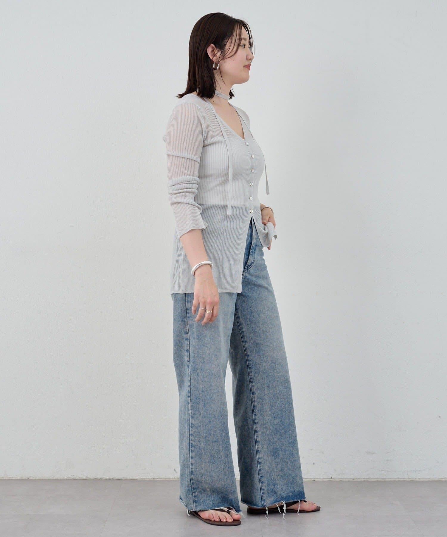 頸部 V 形開口和下襬也做了開口處理,看起來整潔乾淨◎。