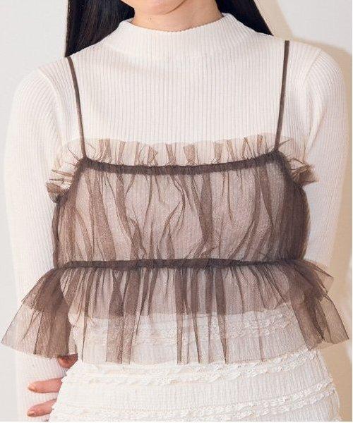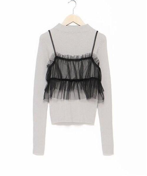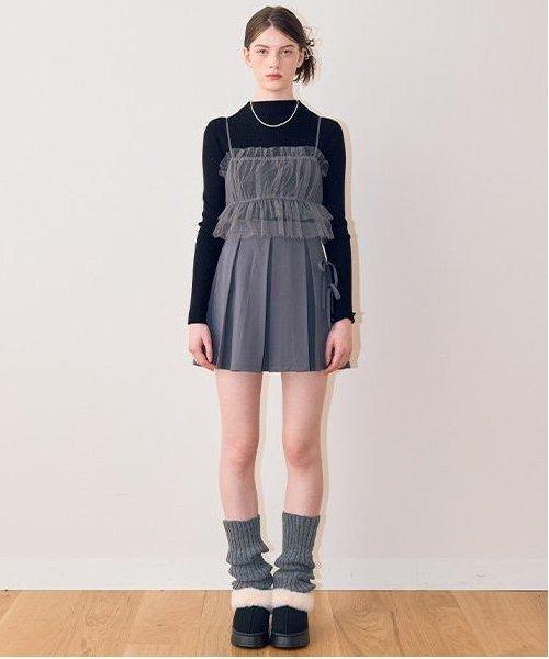 半身裙採用彈力恰到好處的薄紗,褶邊部分輪廓優美 ◎內搭針織衫採用柔軟的彈力紗線,打造貼身輪廓,可成熟穿著。