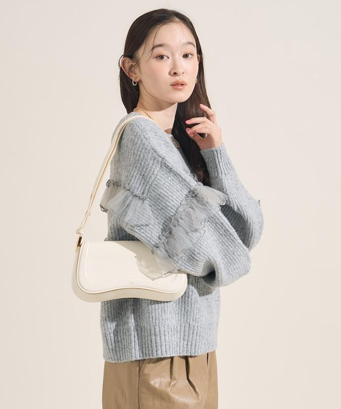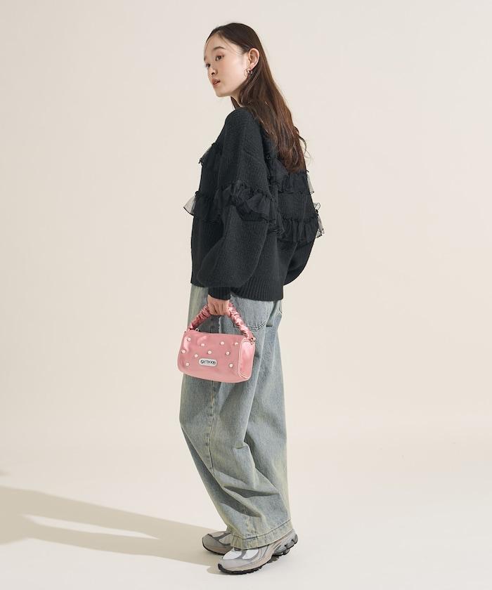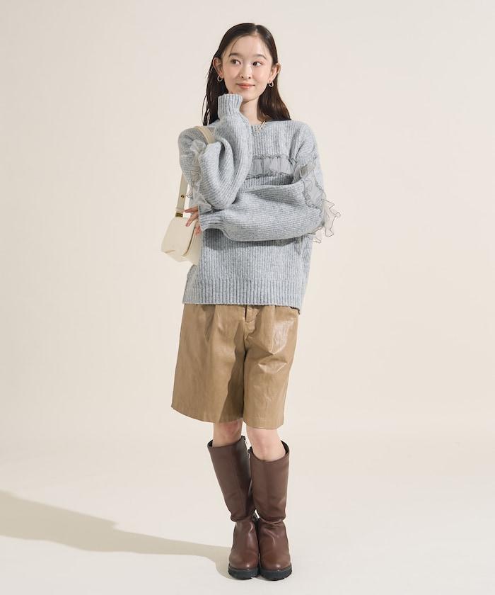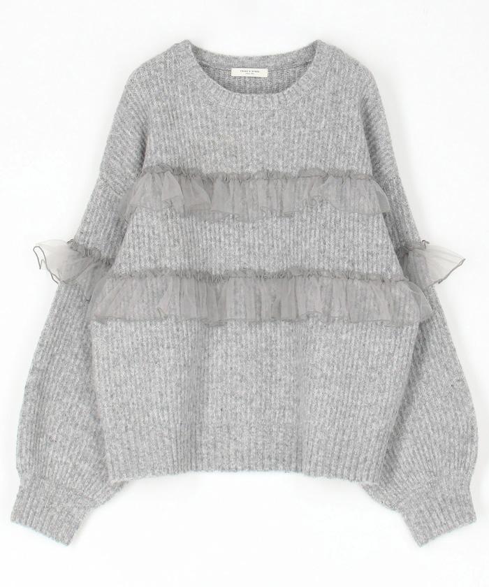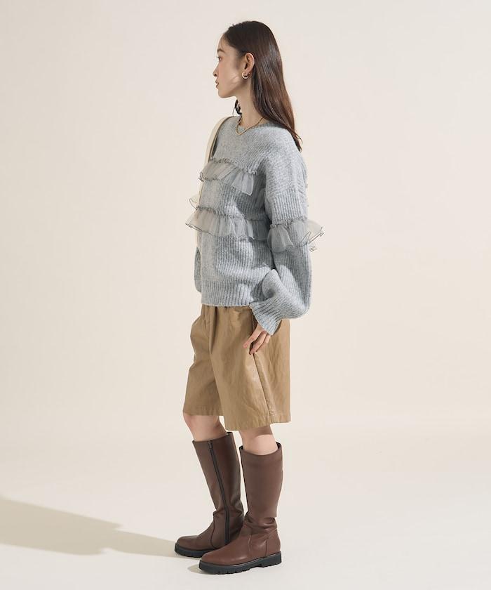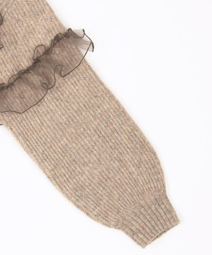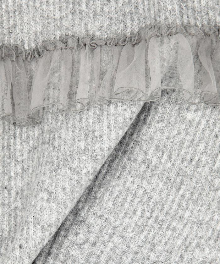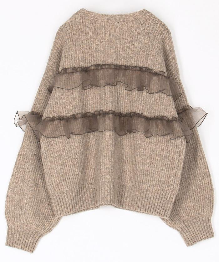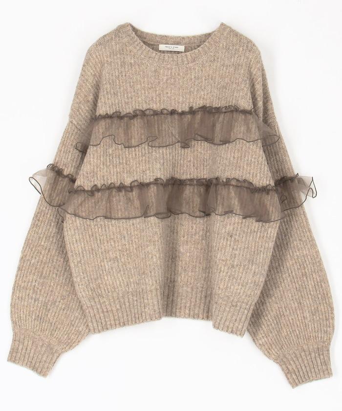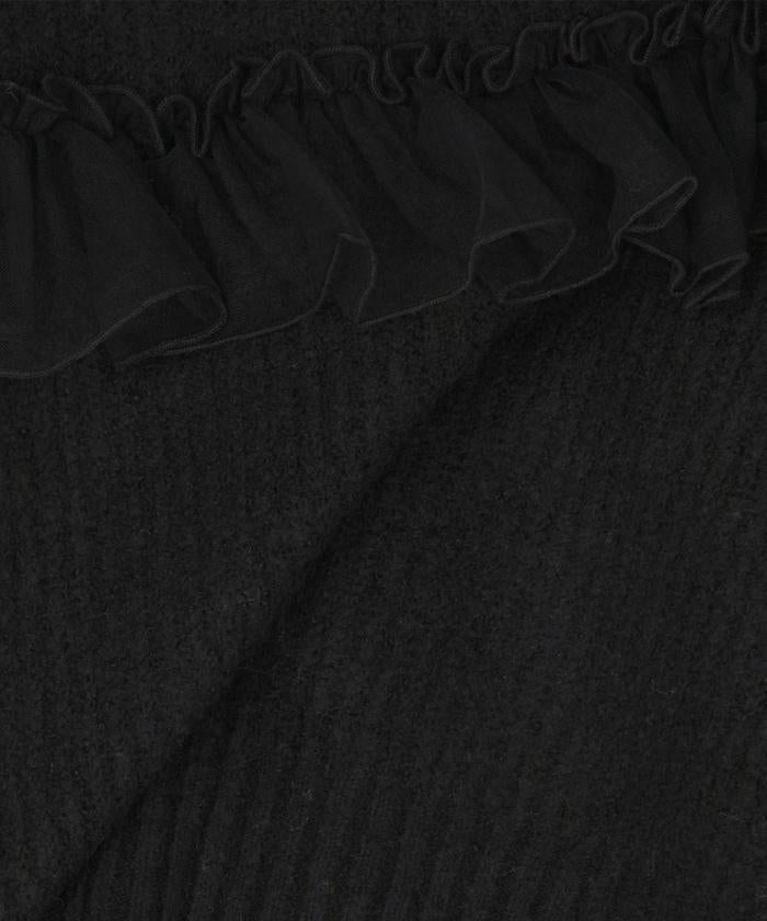 網紗荷葉邊拼接針織套頭衫
