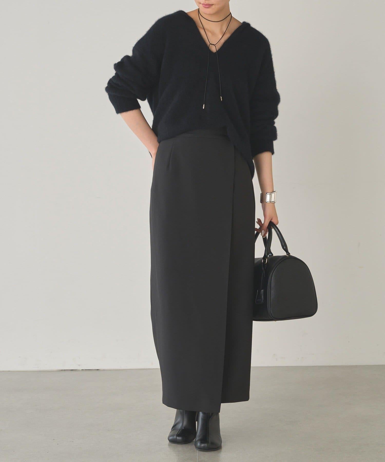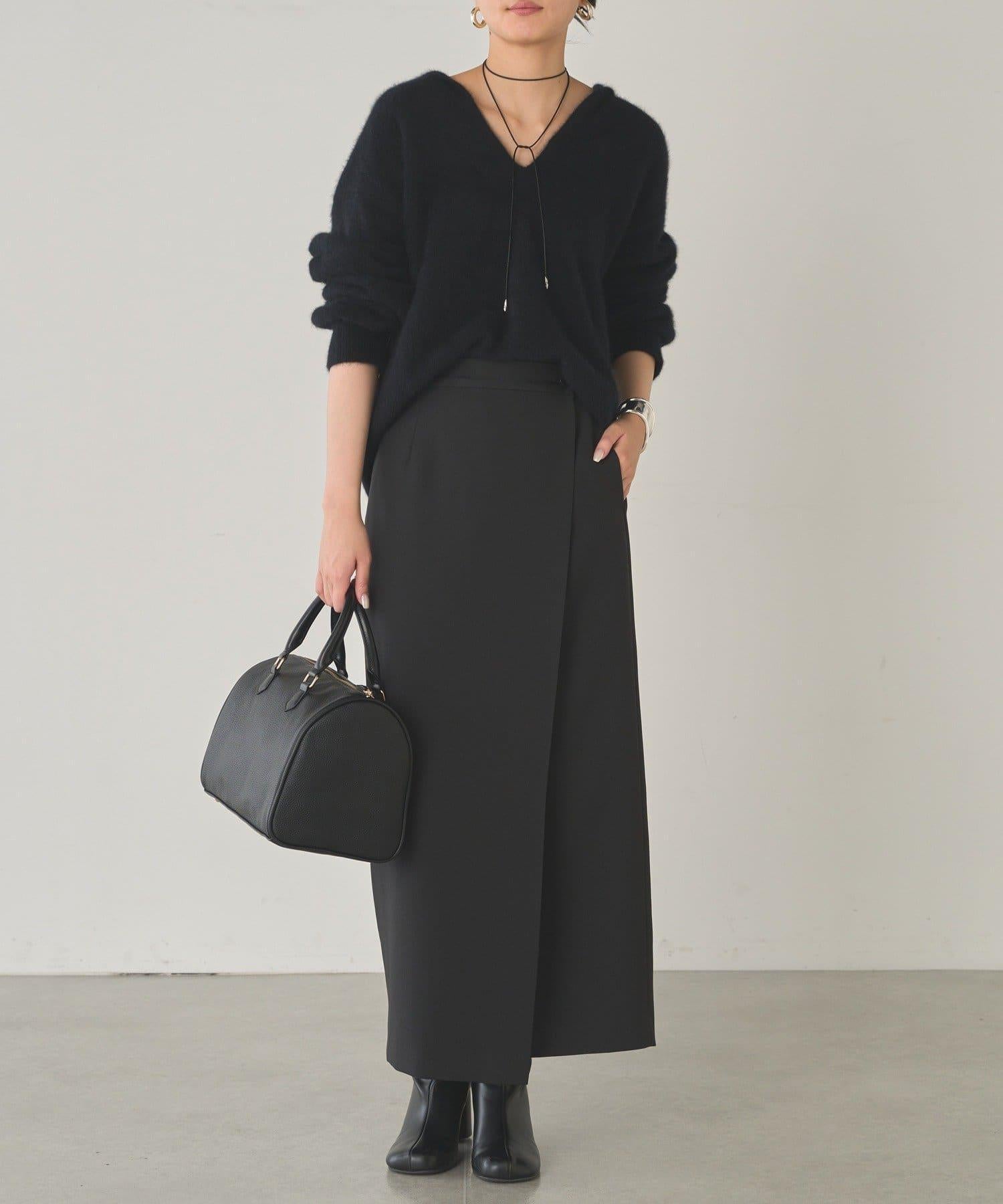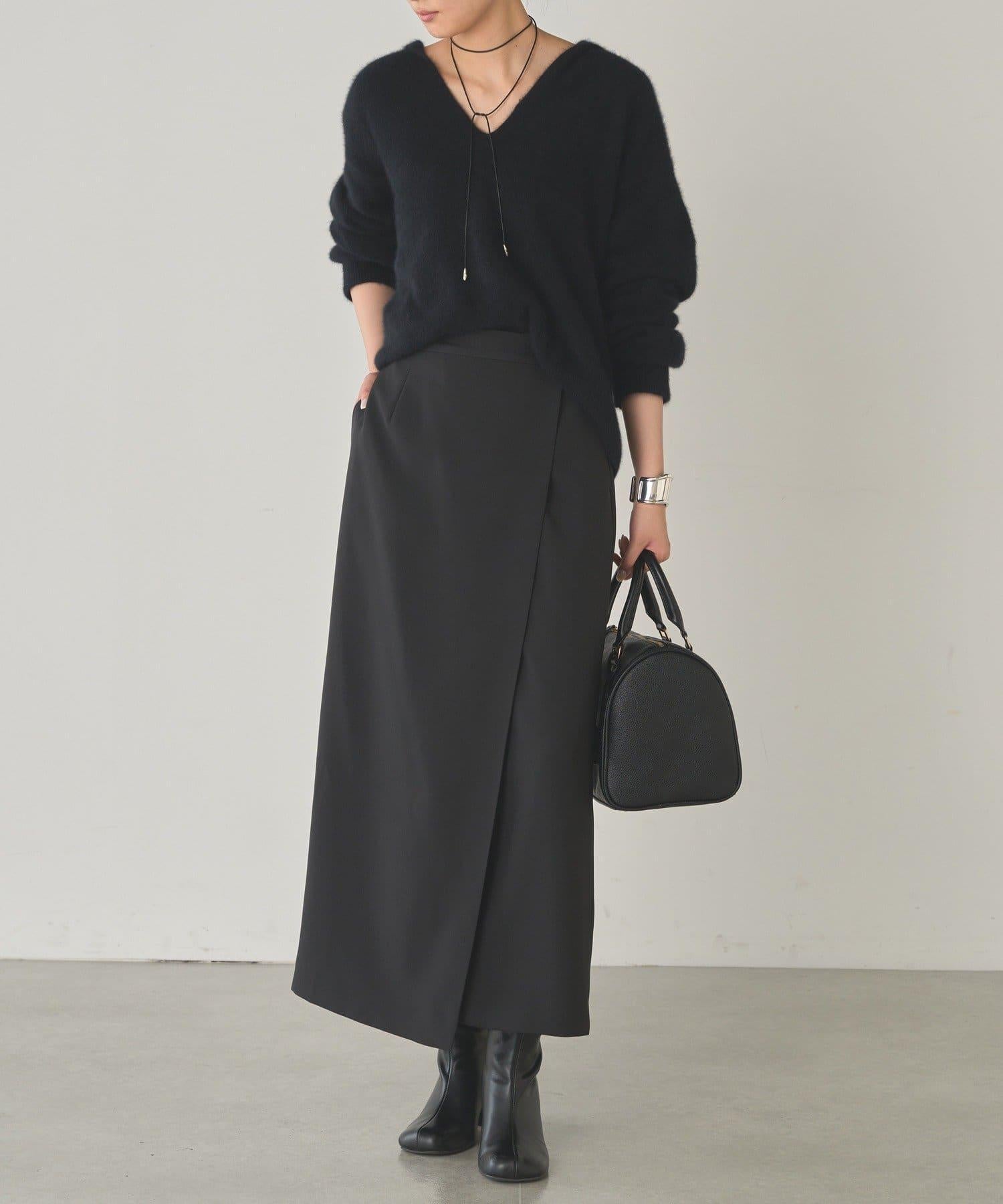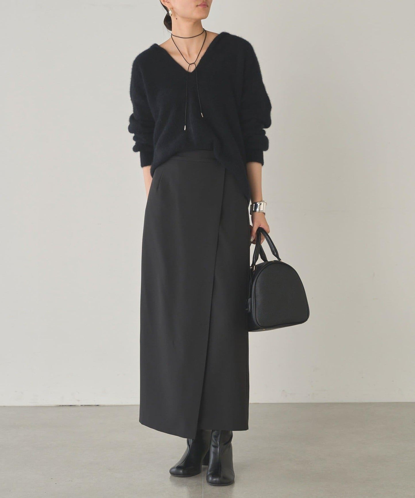 乍一看,這條黑色短裙很簡單。然而,不對稱的重疊包邊設計讓你的個性更加突出。