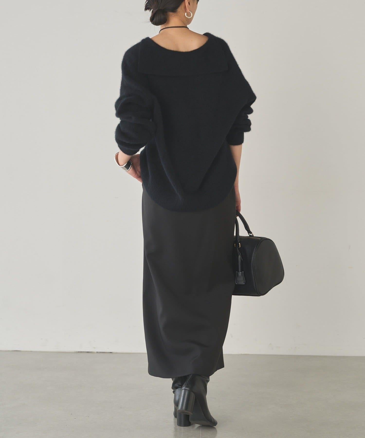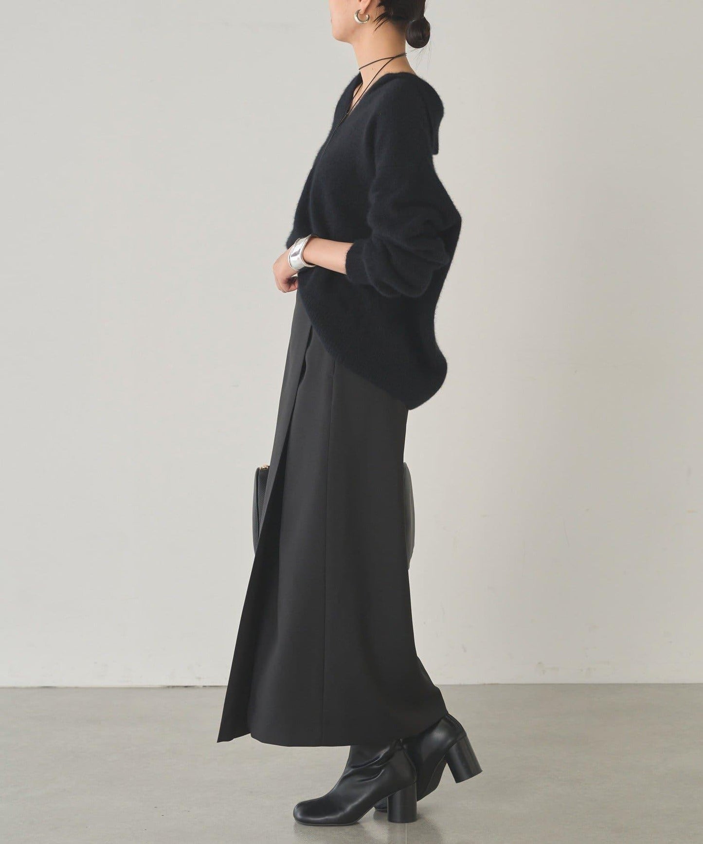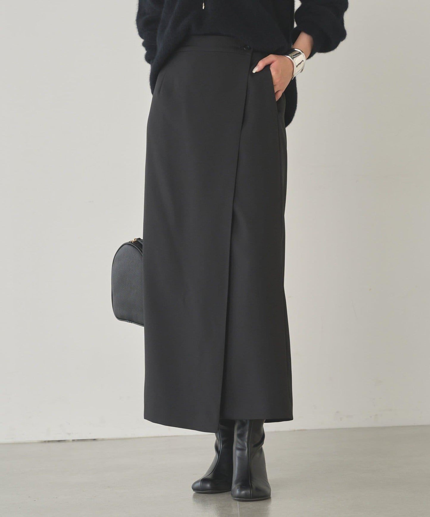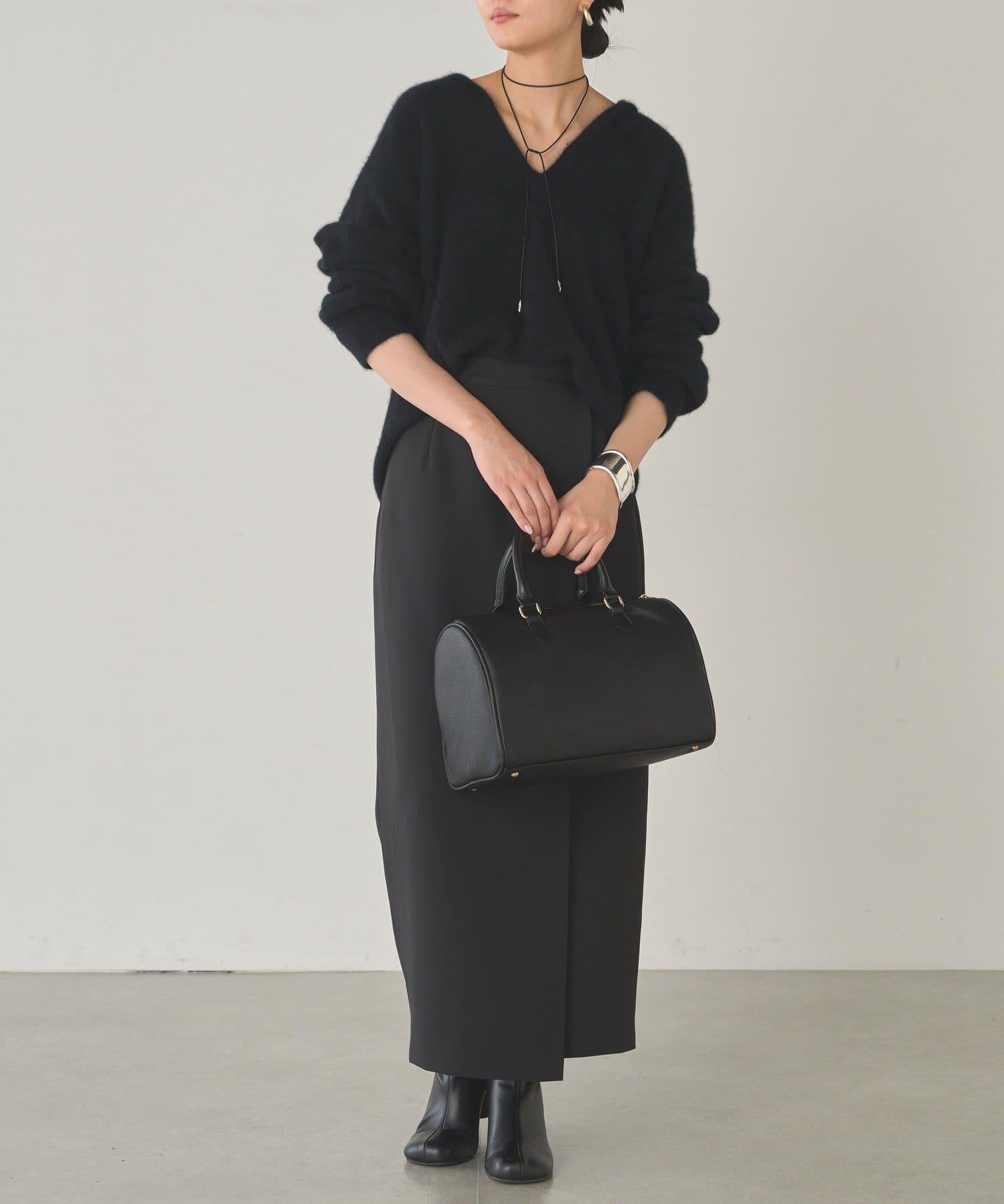 乍一看,這條黑色短裙很簡單。然而,不對稱的重疊包邊設計讓你的個性更加突出。