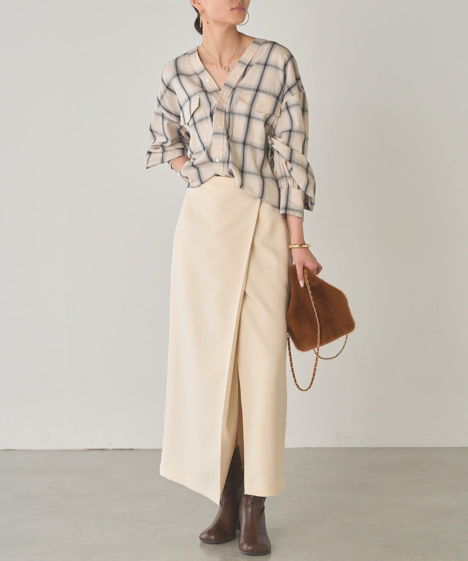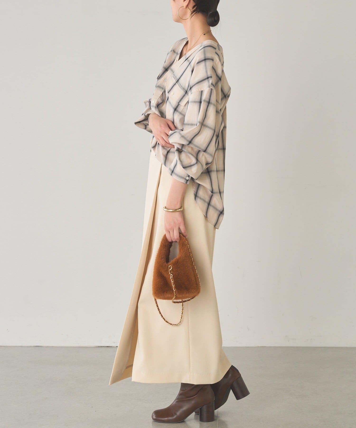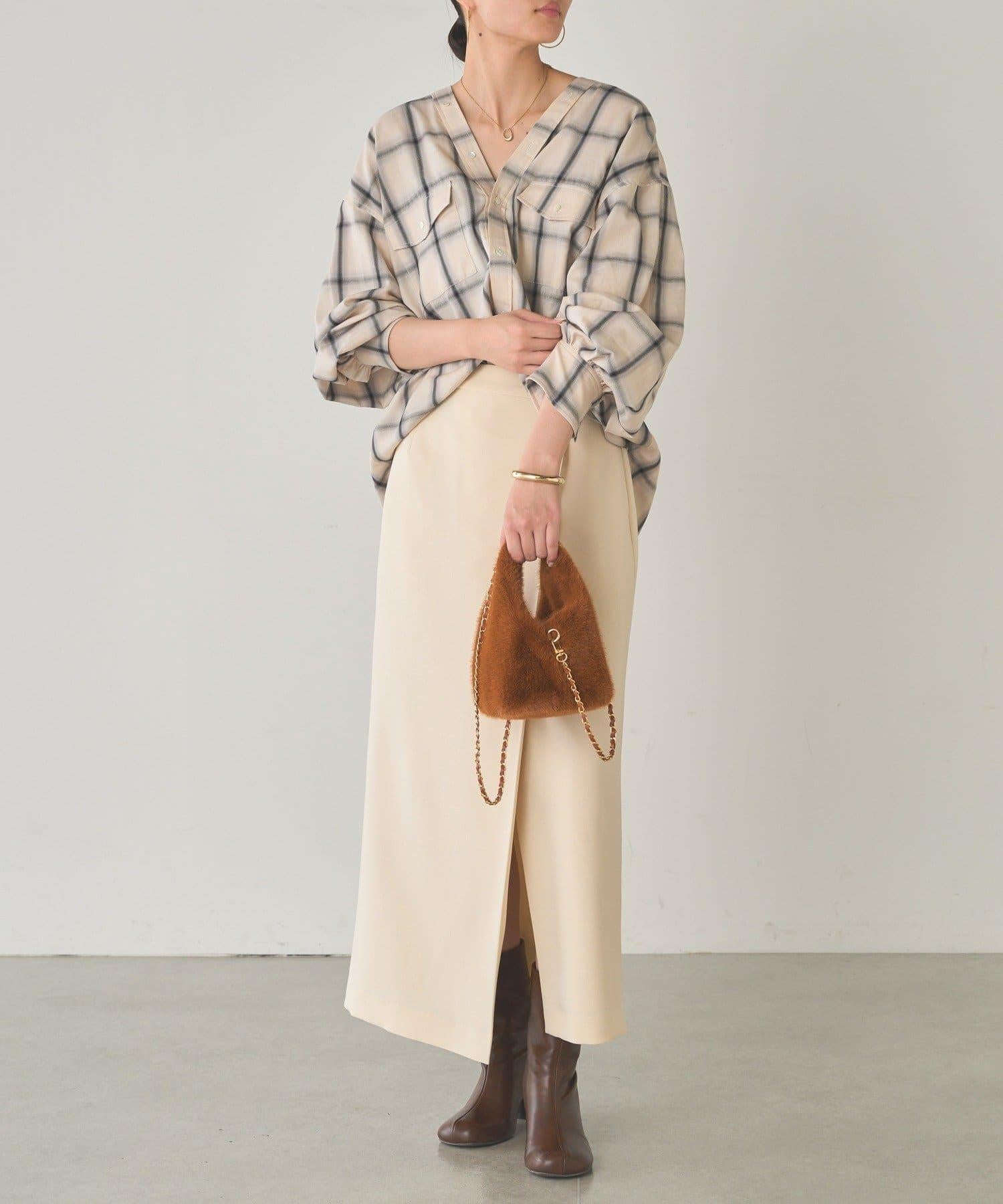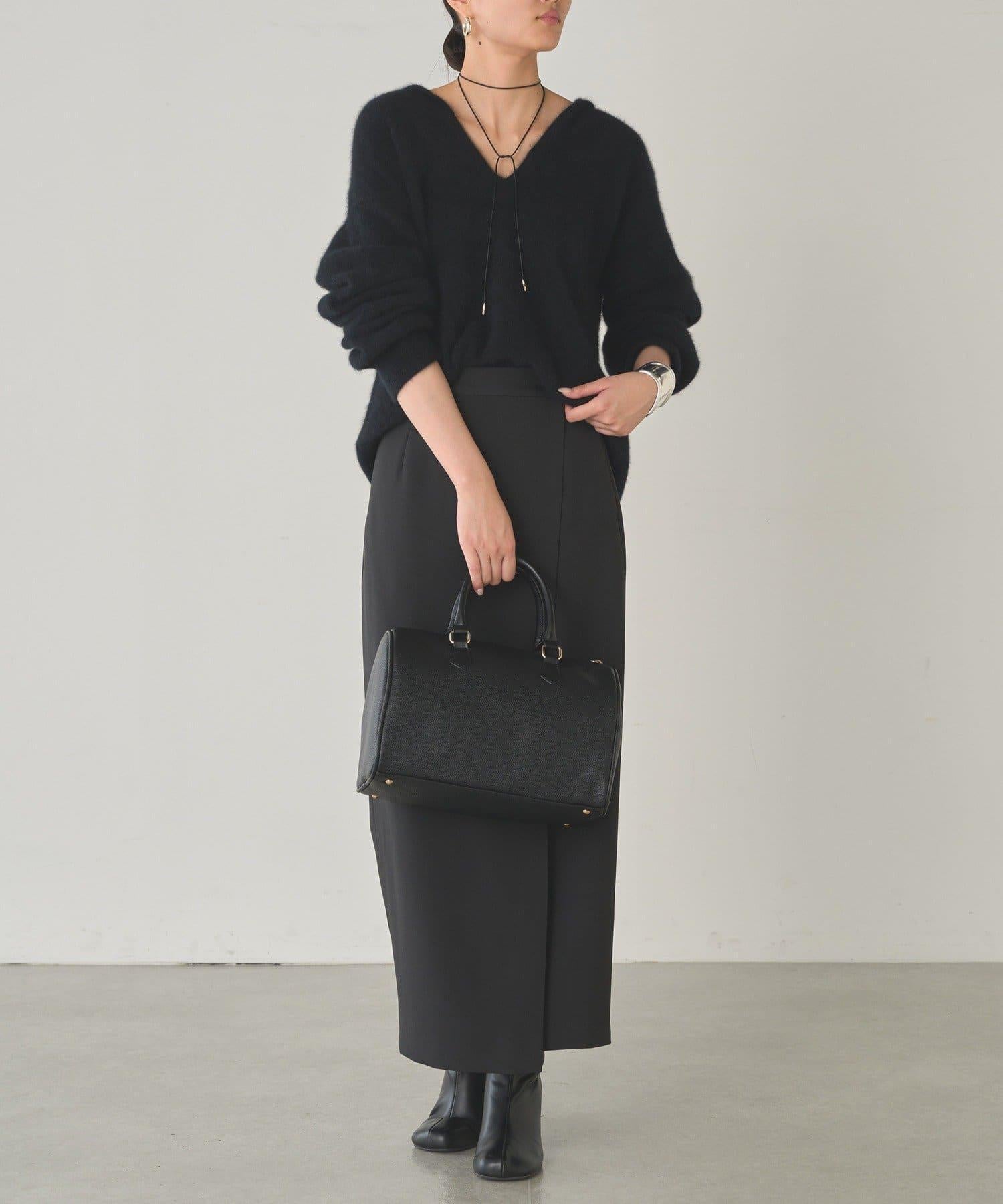 乍一看,這條黑色短裙很簡單。然而,不對稱的重疊包邊設計讓你的個性更加突出。