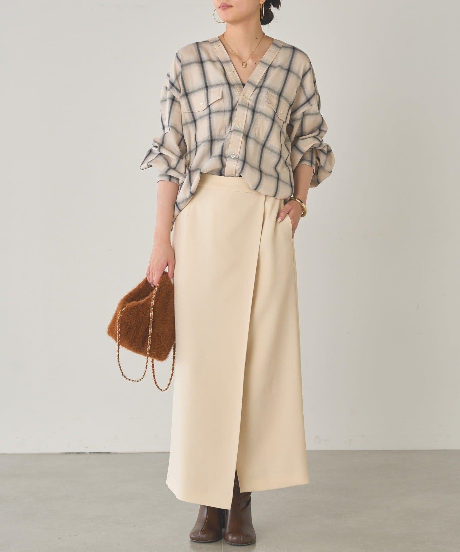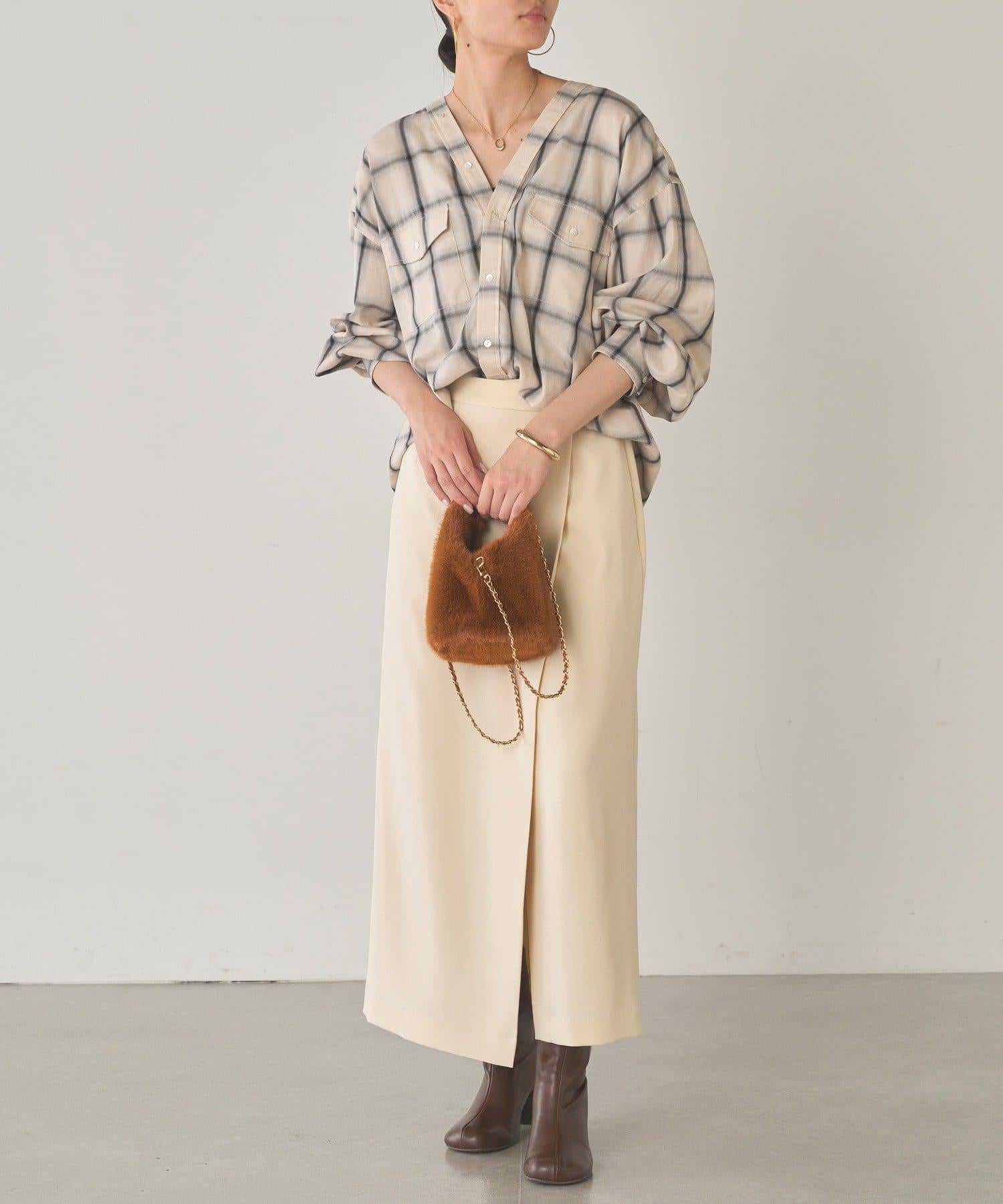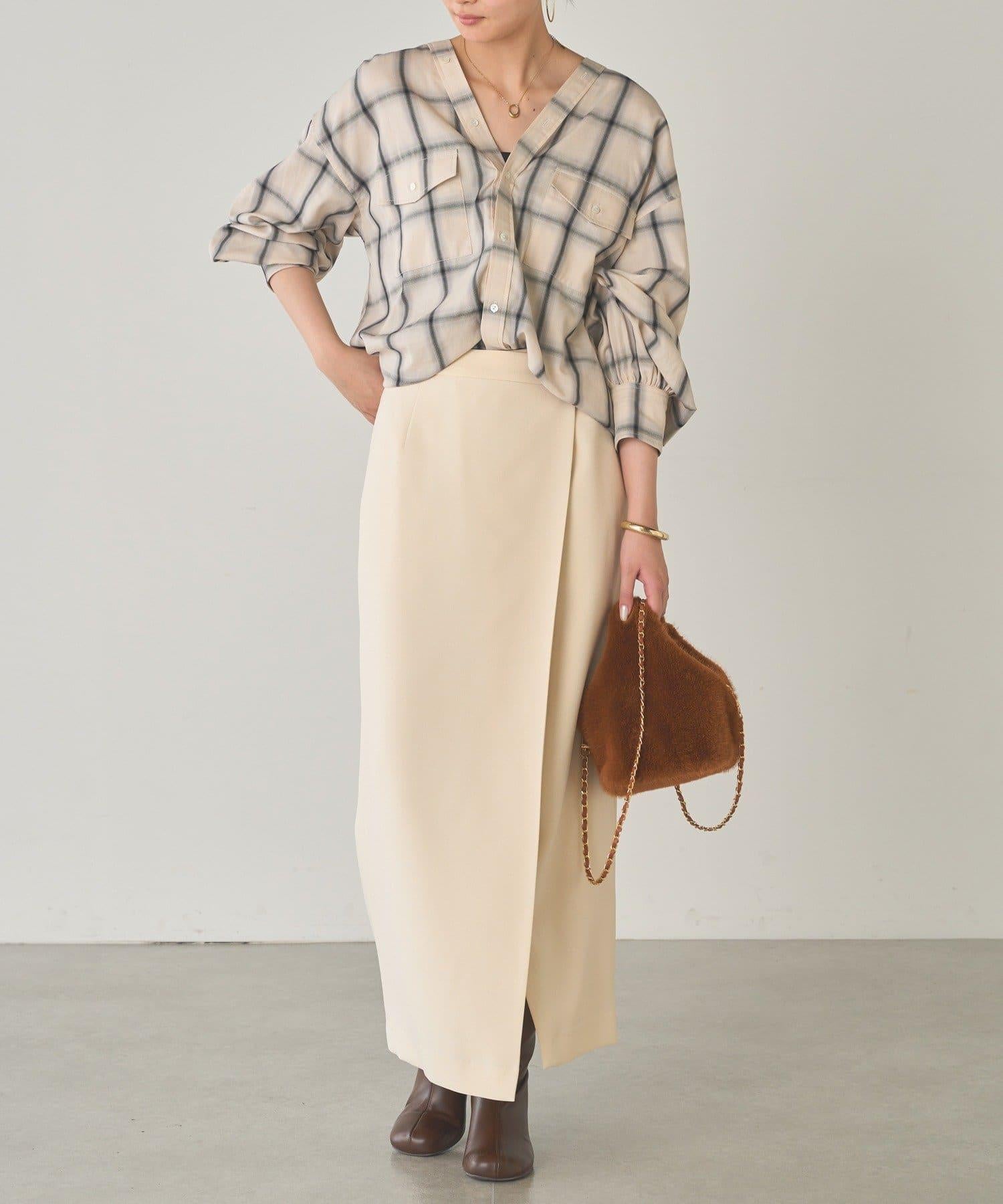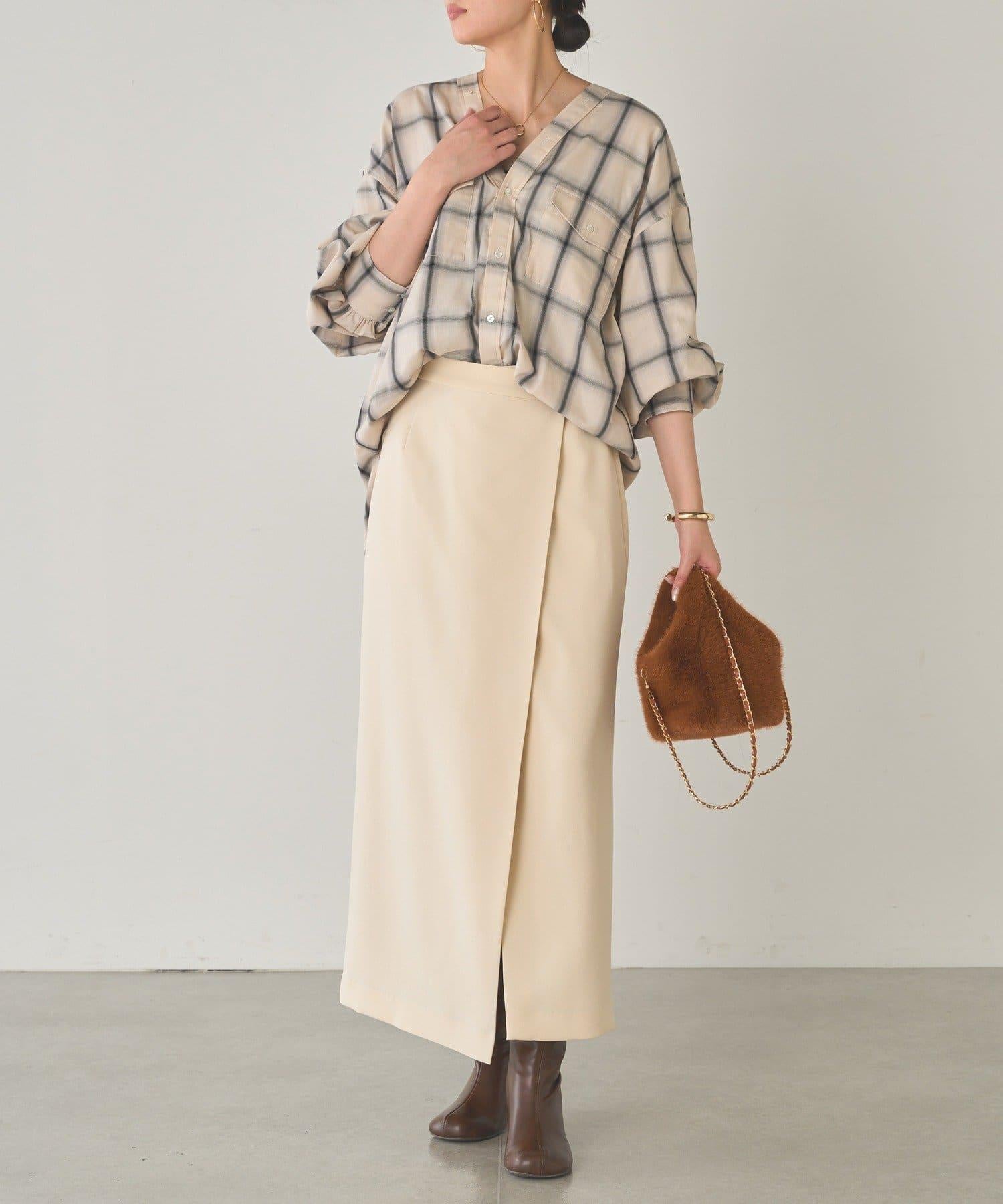 乍一看,這條黑色短裙很簡單。然而,不對稱的重疊包邊設計讓你的個性更加突出。