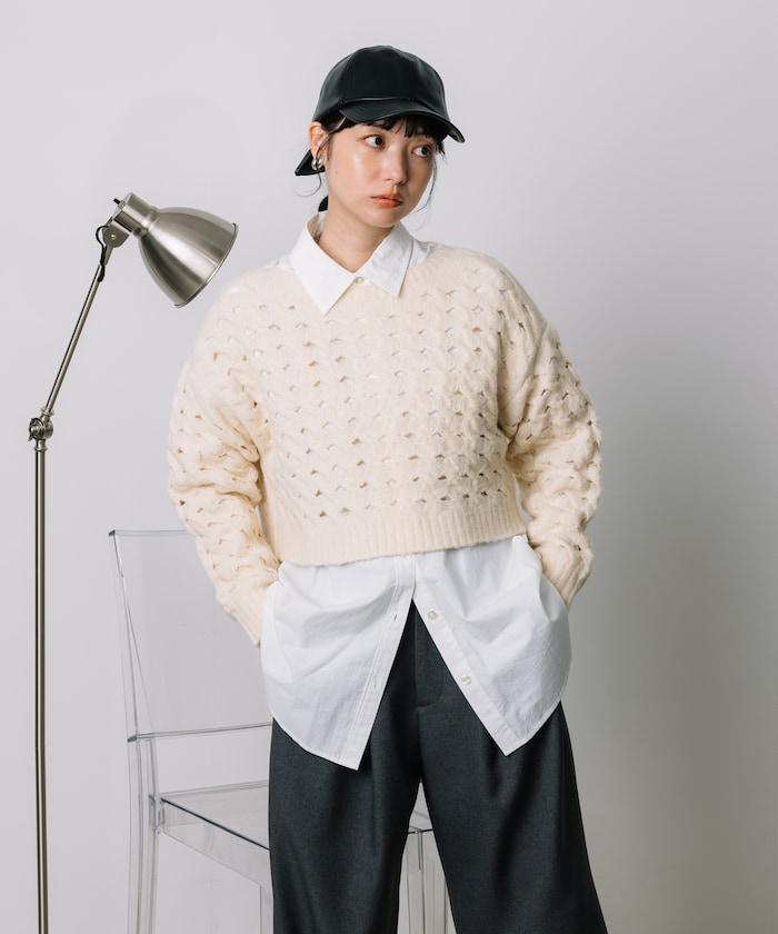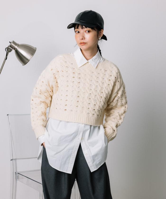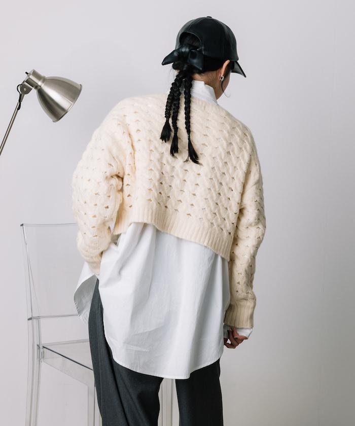電纜編織的針織衫是一種有趣的內搭疊穿方式。
