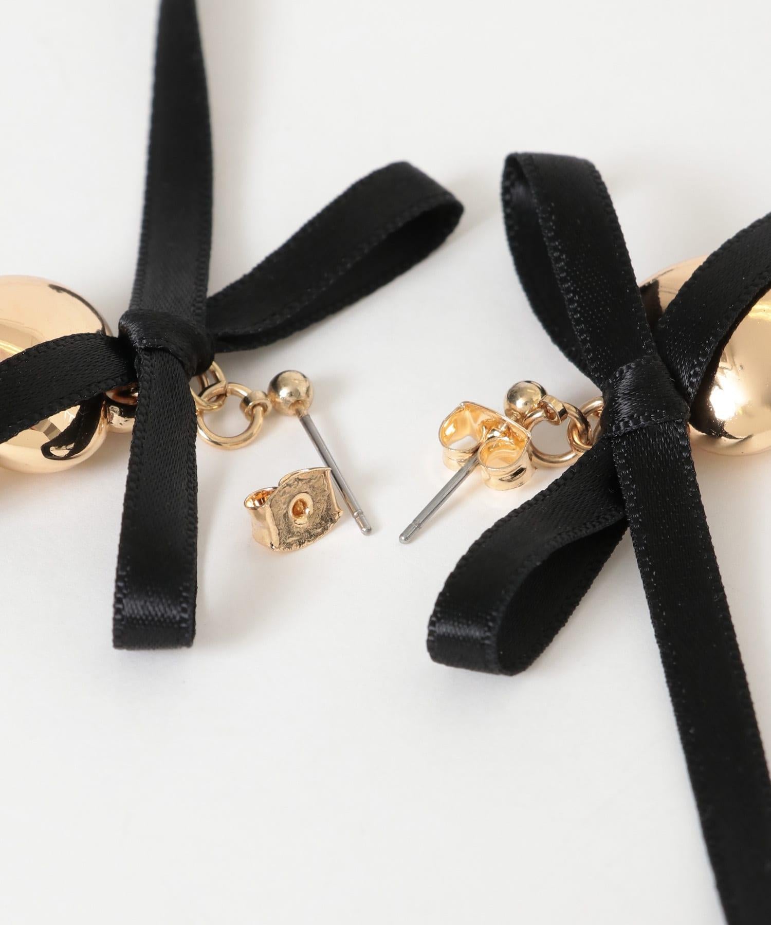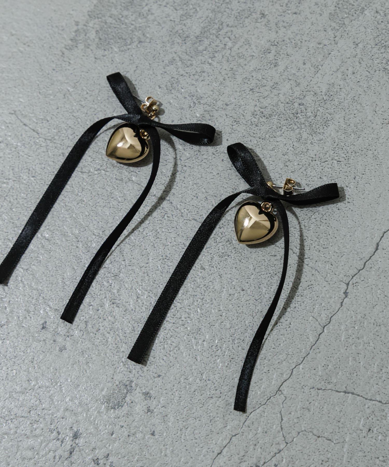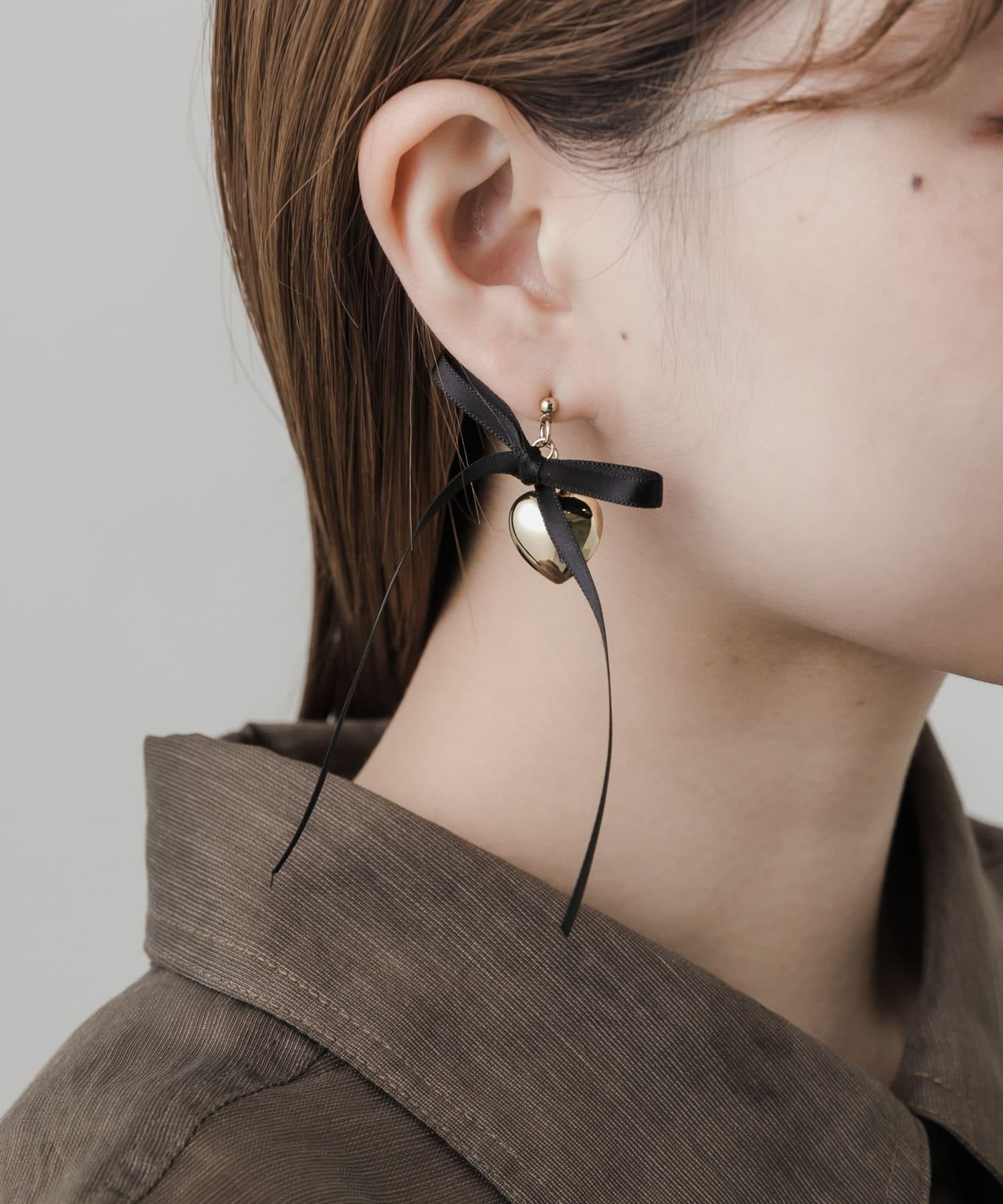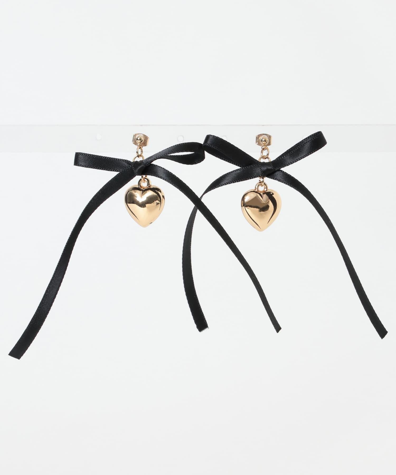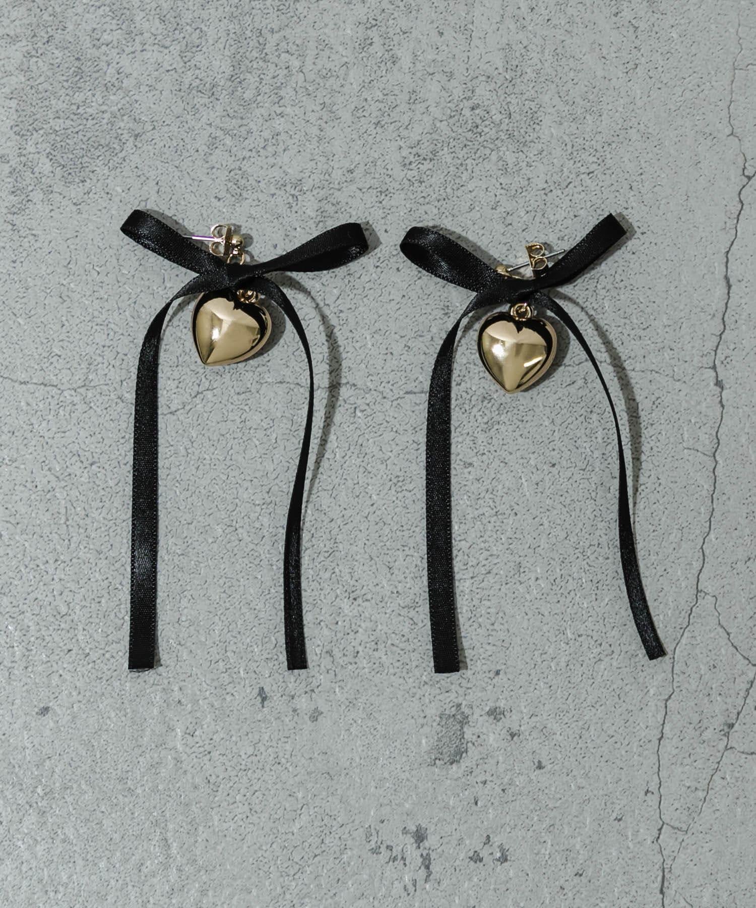 這款女性化耳環的特色是由緞面面料製成的絲帶和圓形心形吊飾。