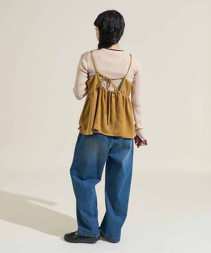 飄帶設計的吊帶背心,可柔和地遮住腹部。