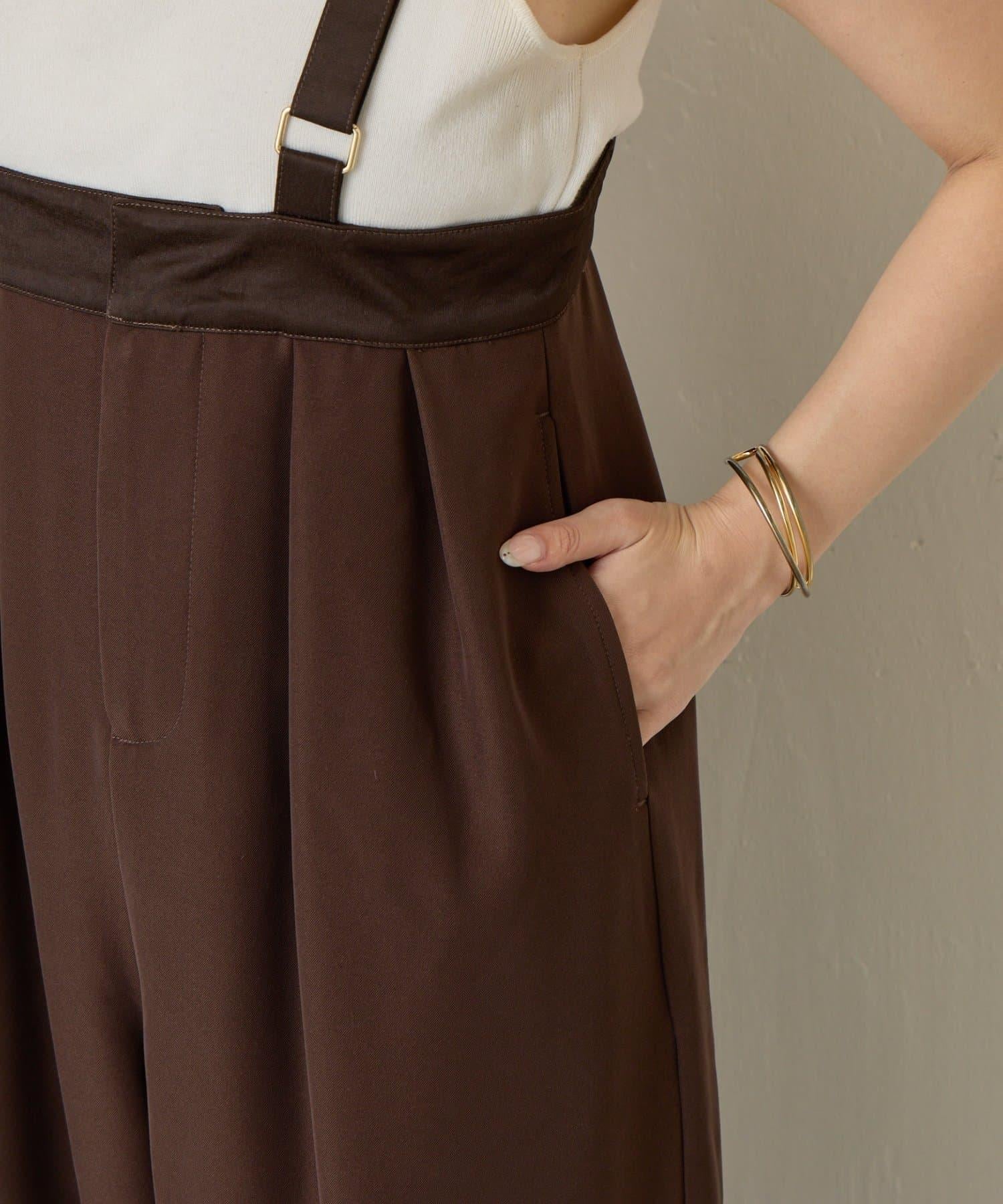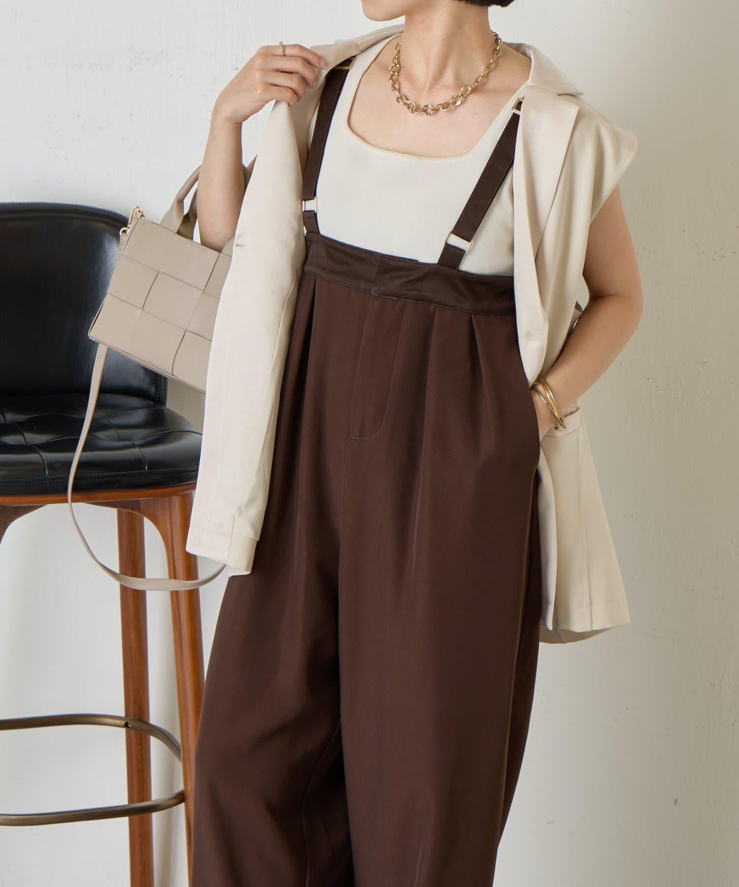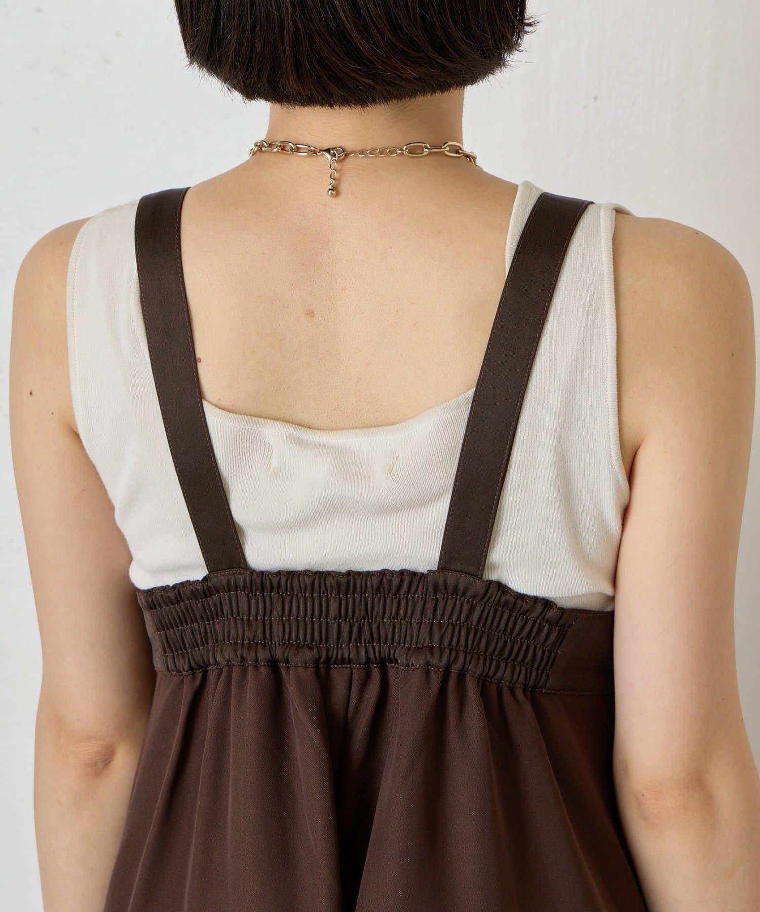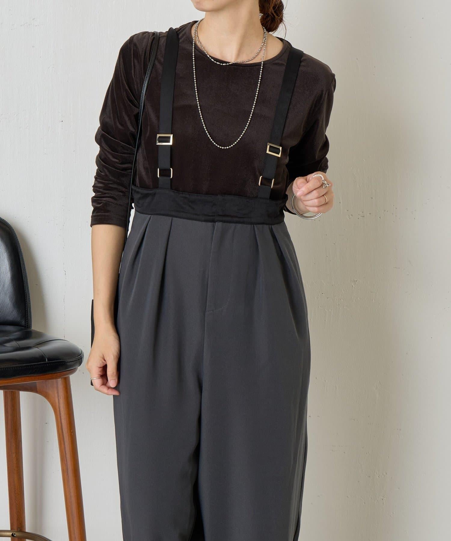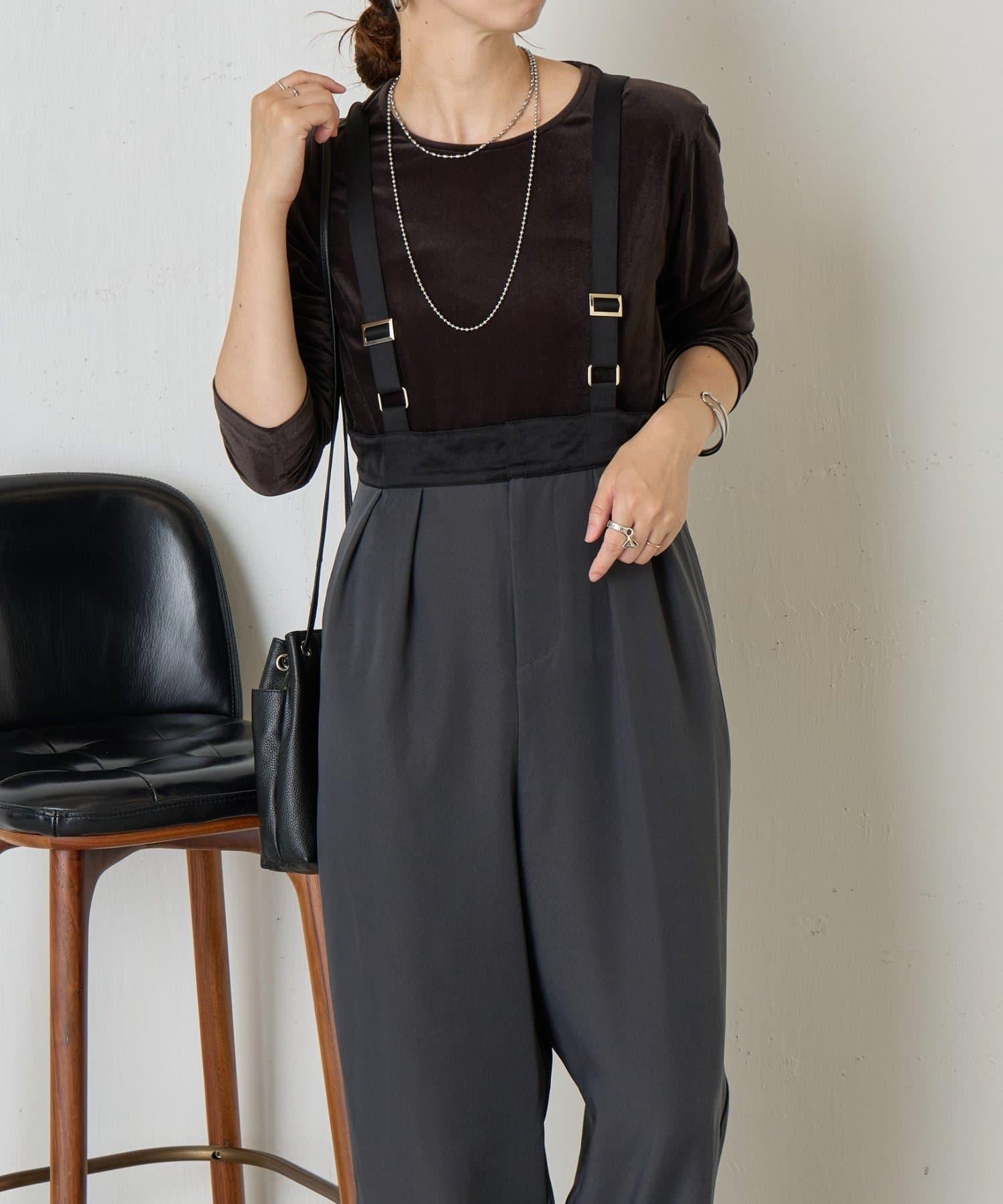 緞面拼接弧形揹帶褲