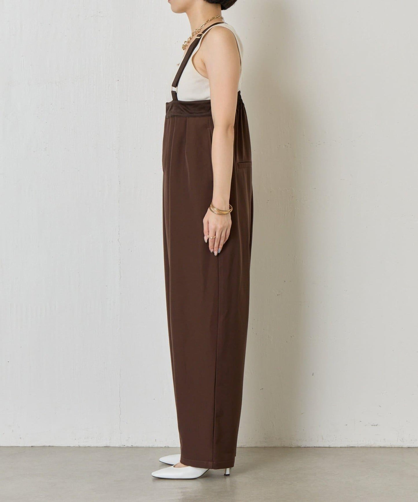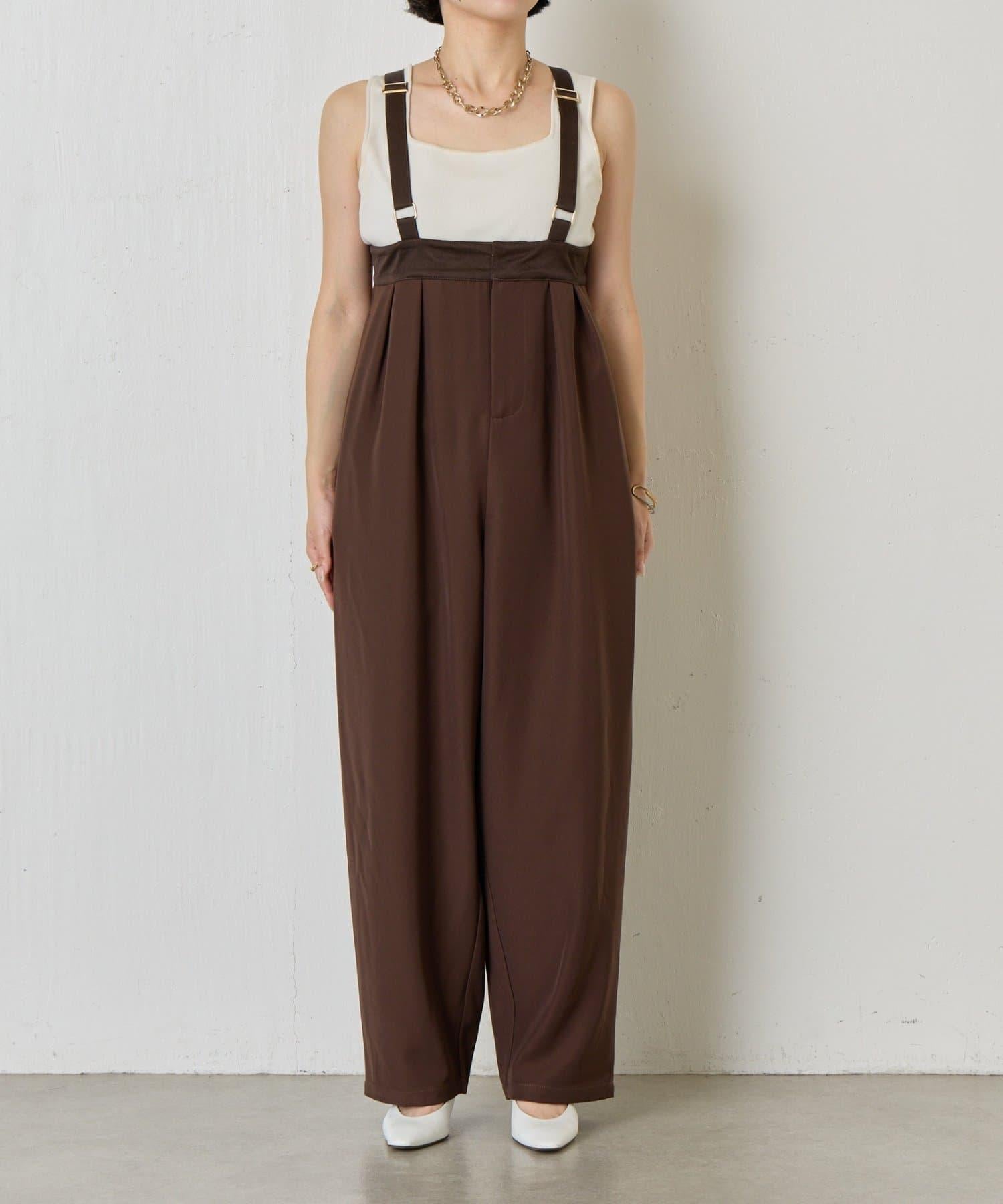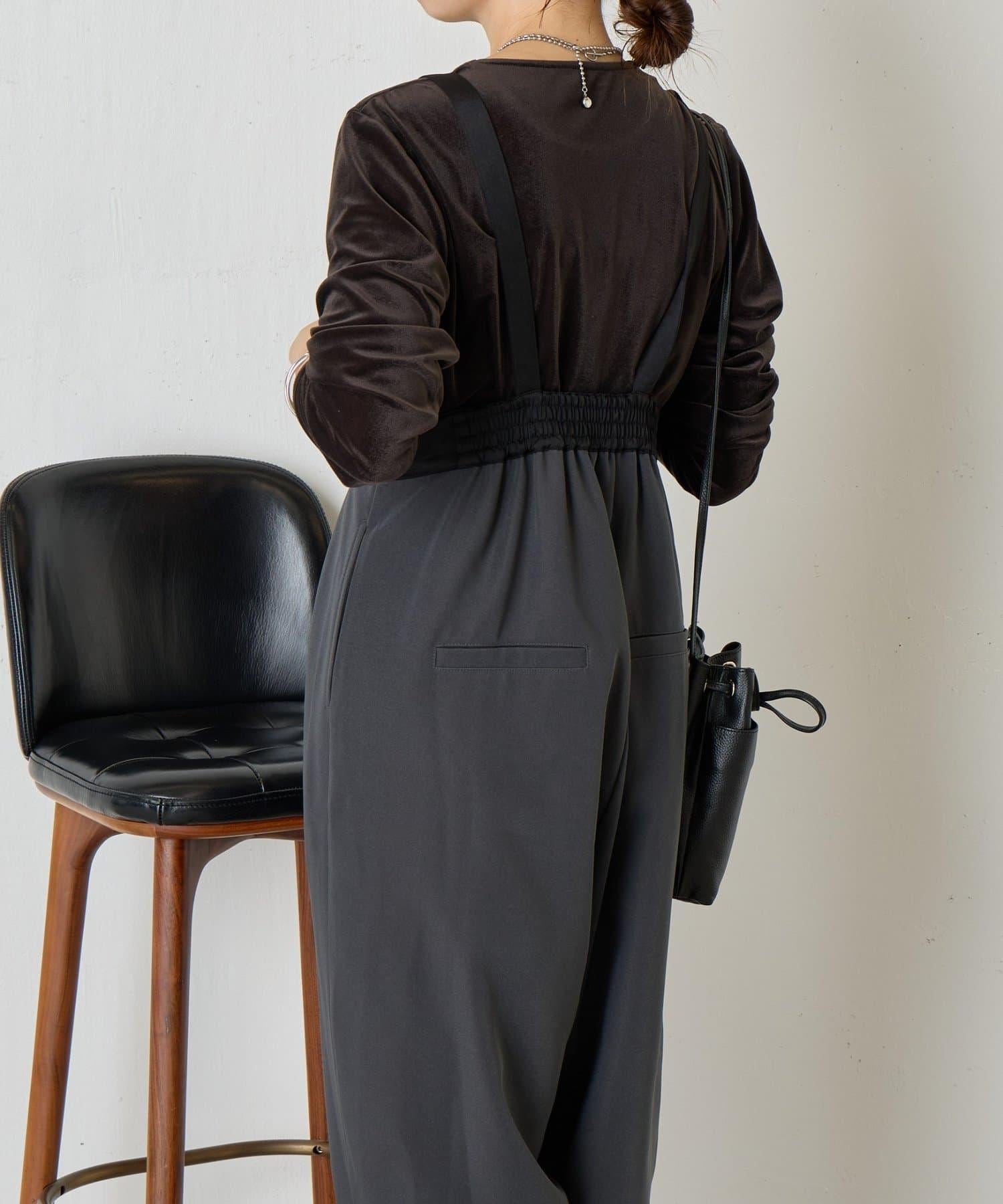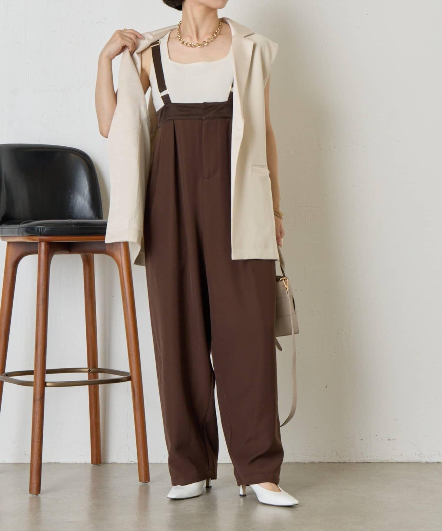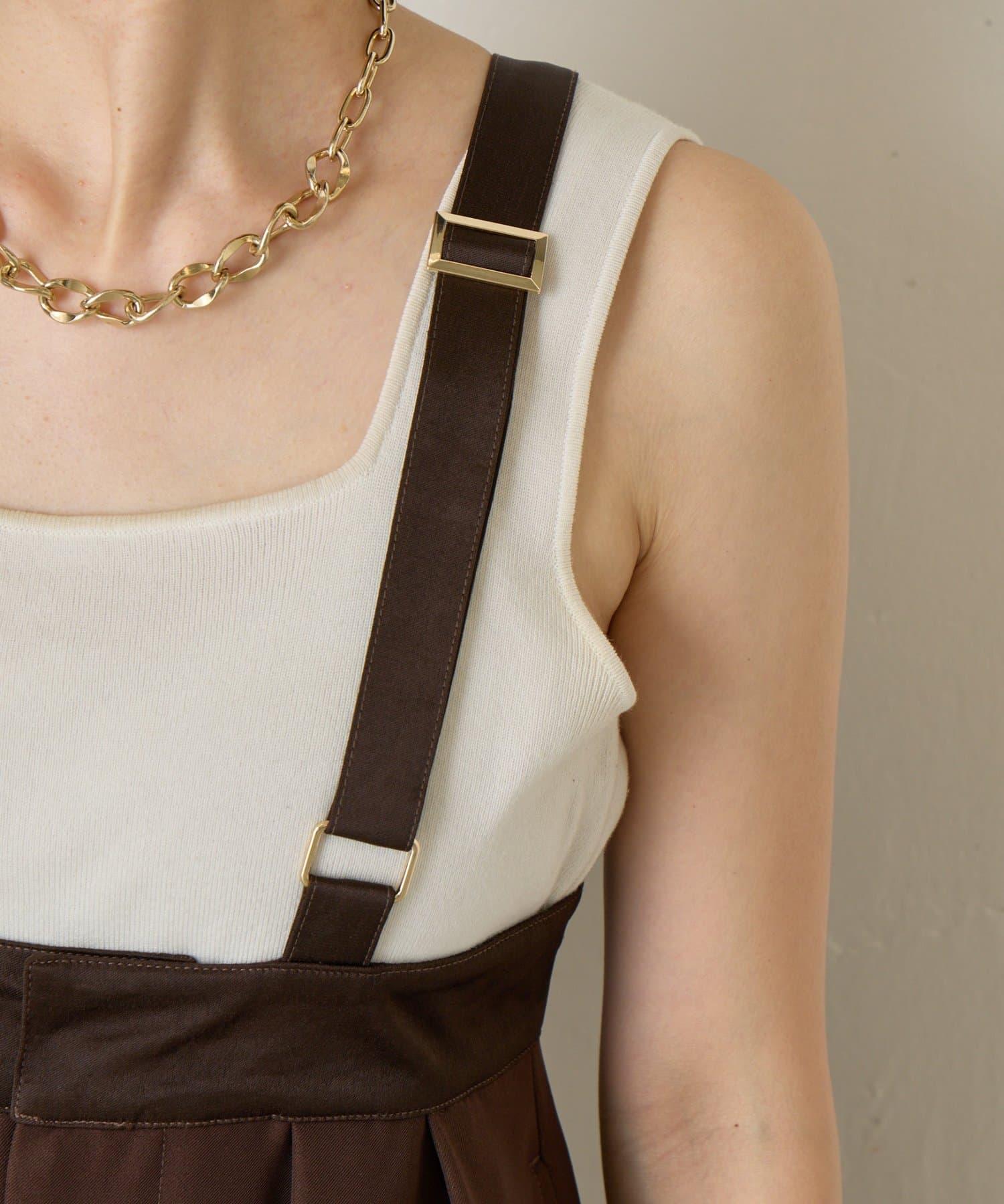 緞面拼接弧形揹帶褲
