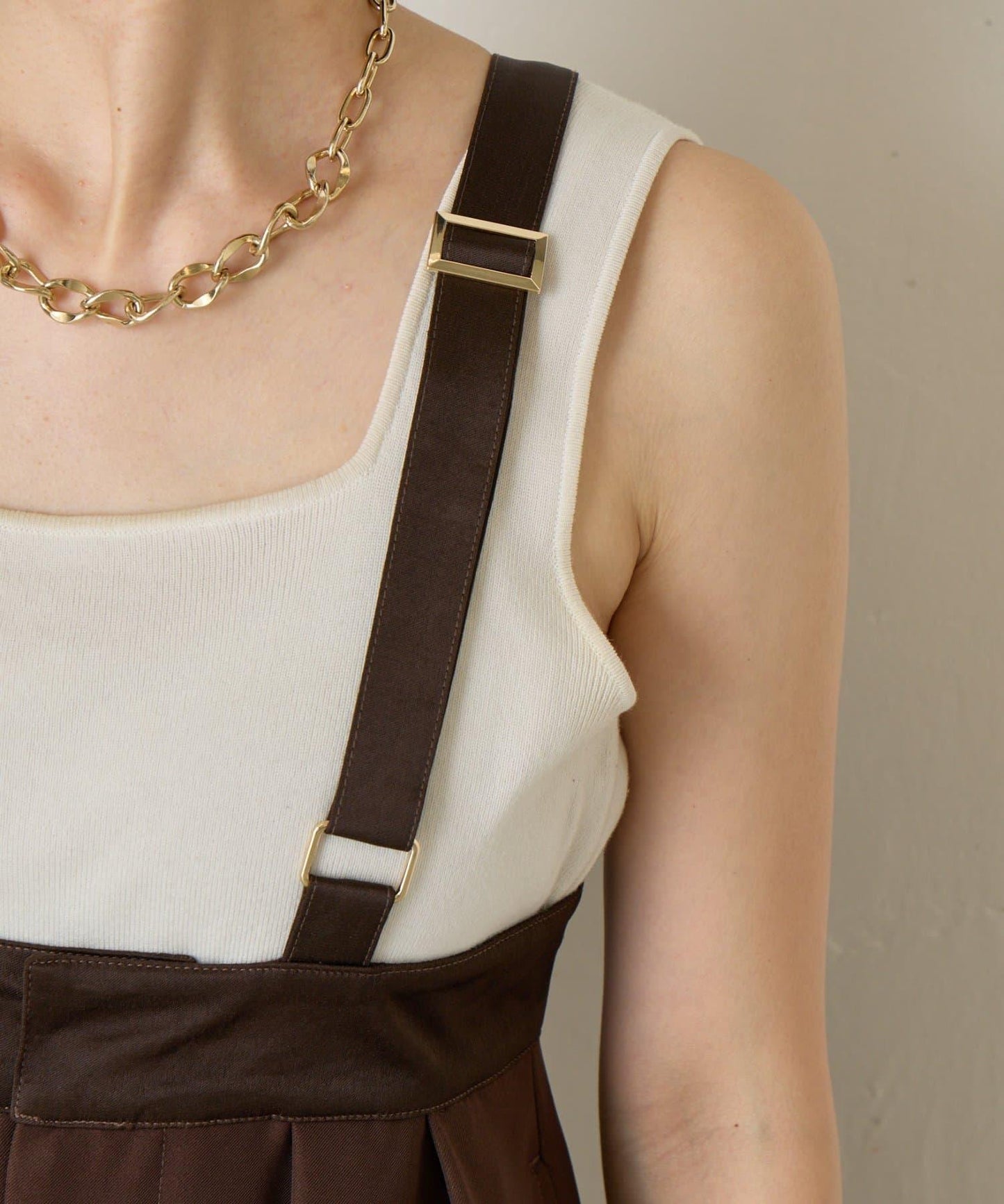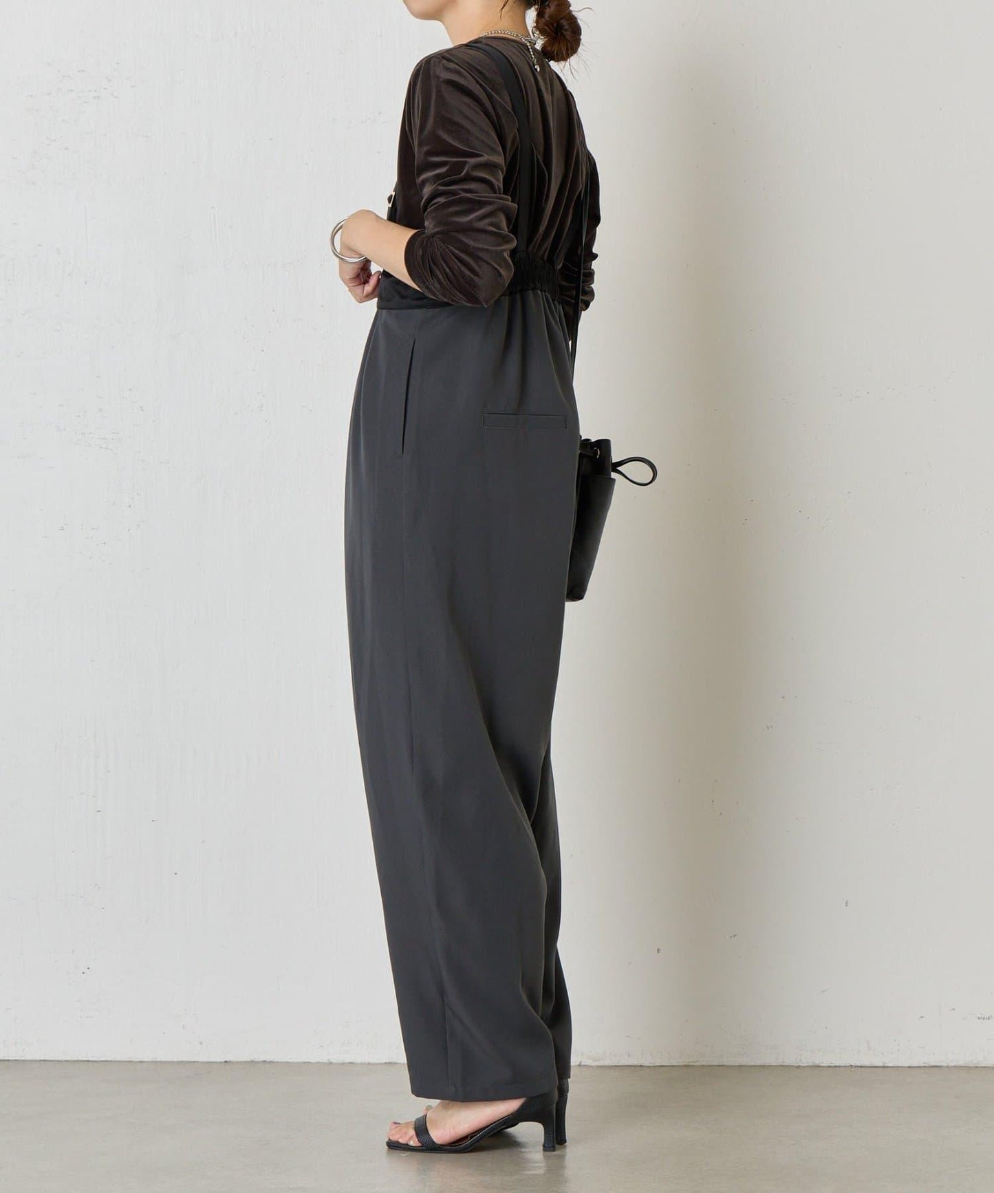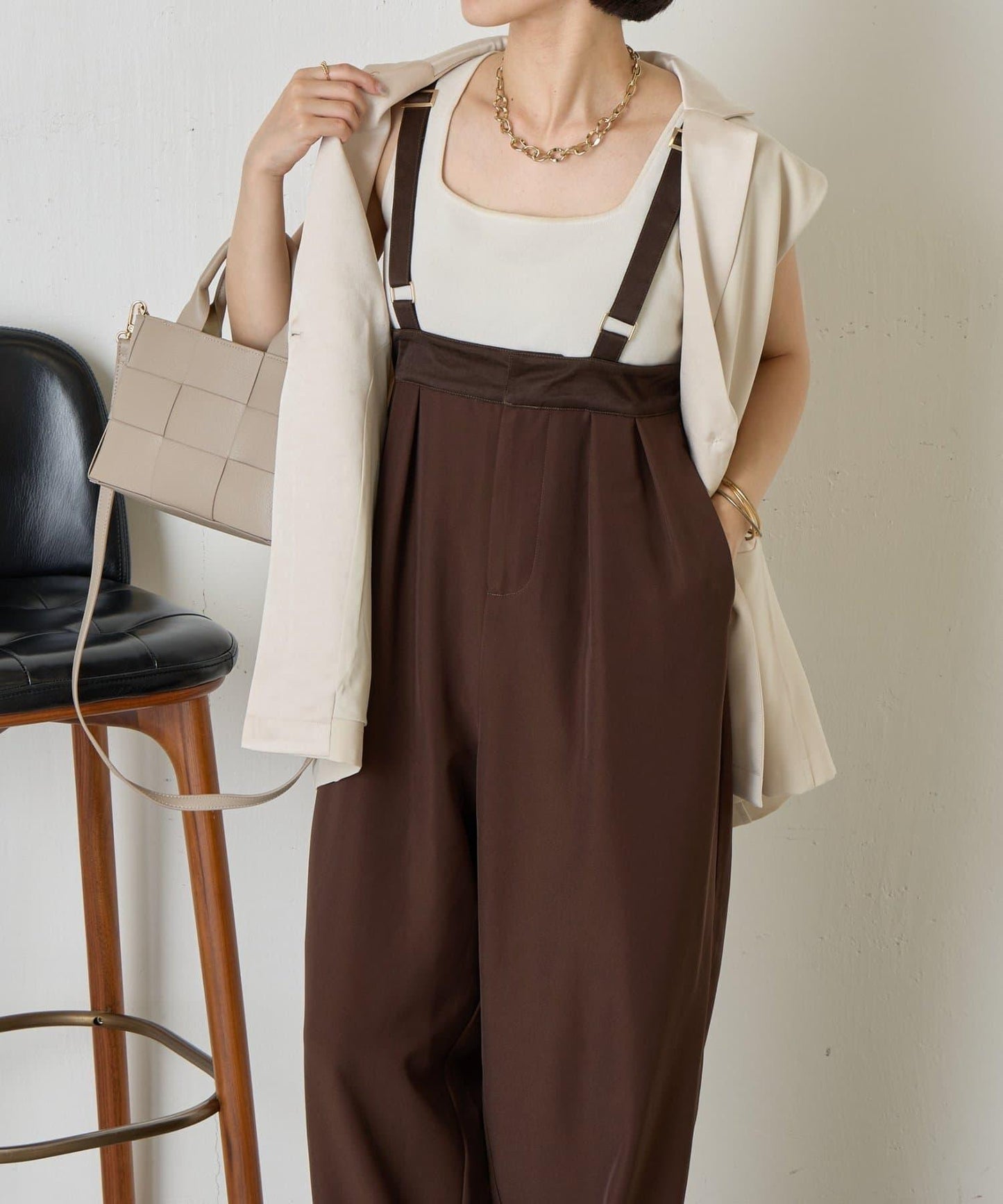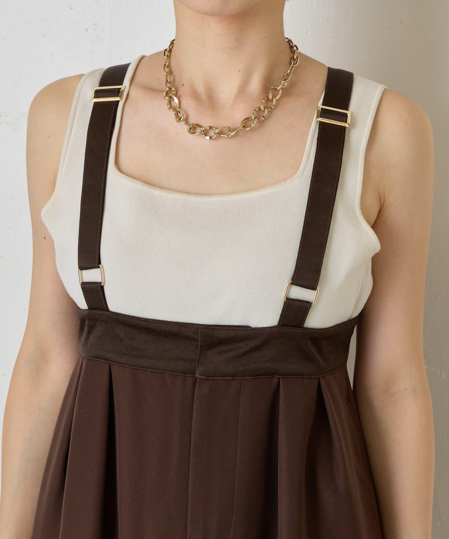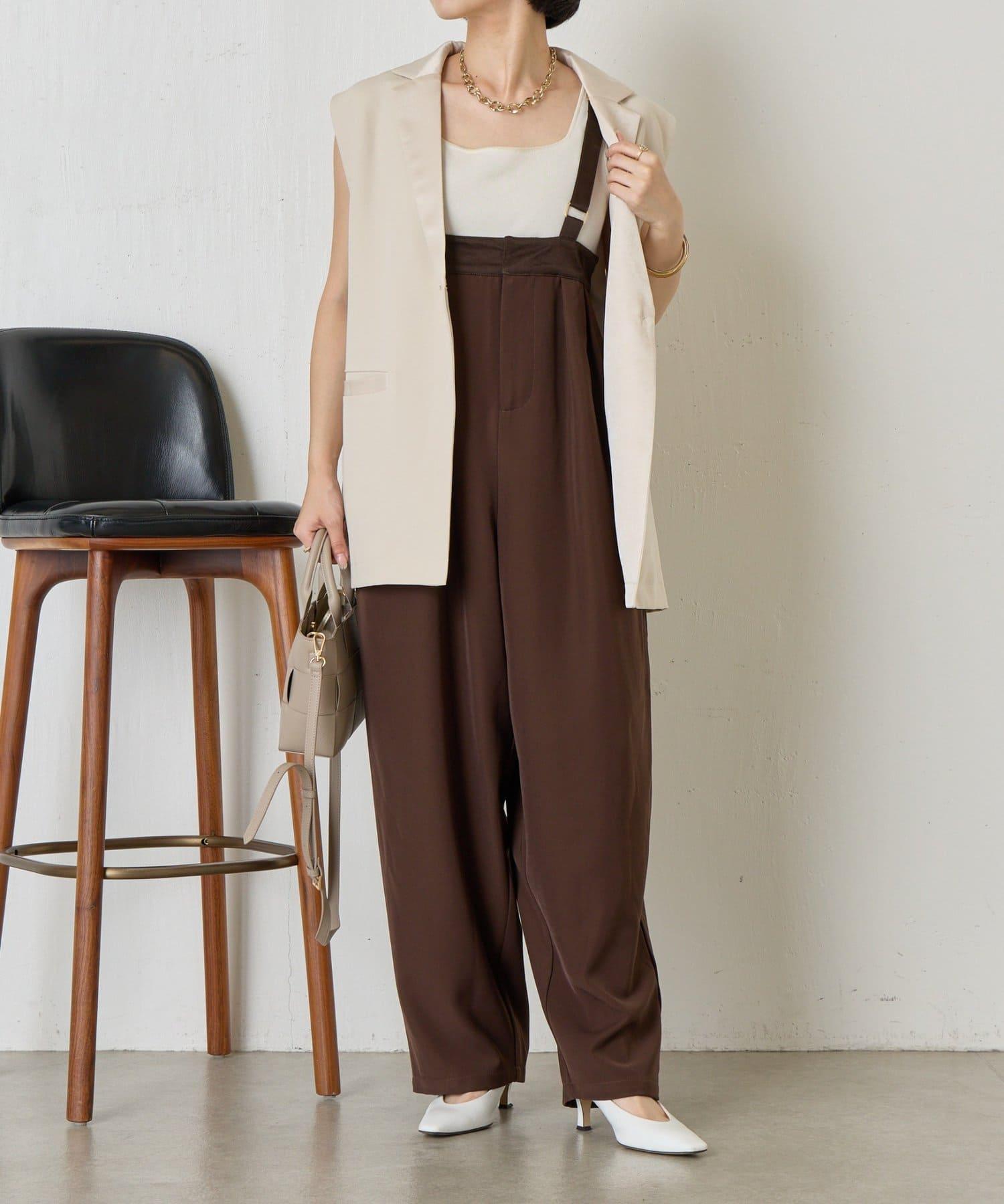 緞面拼接弧形揹帶褲