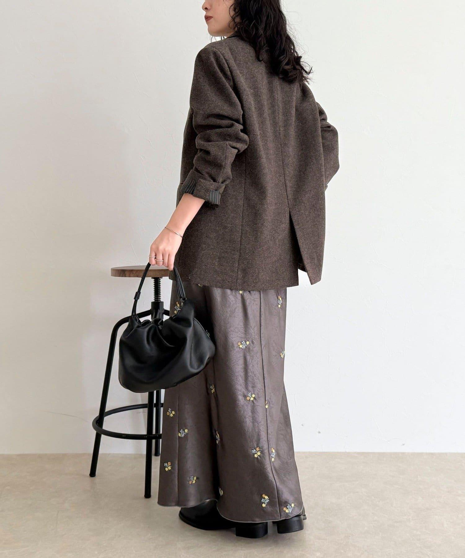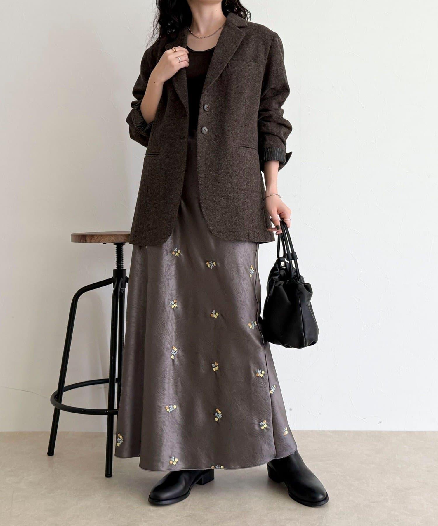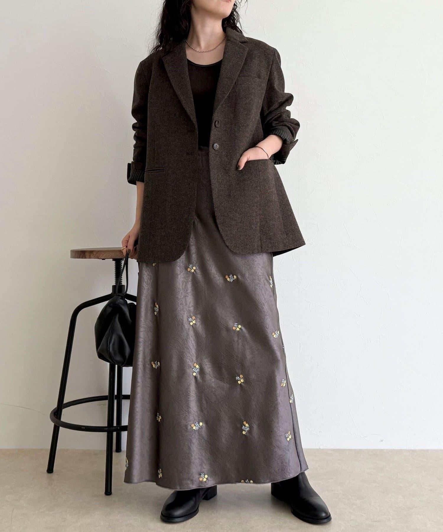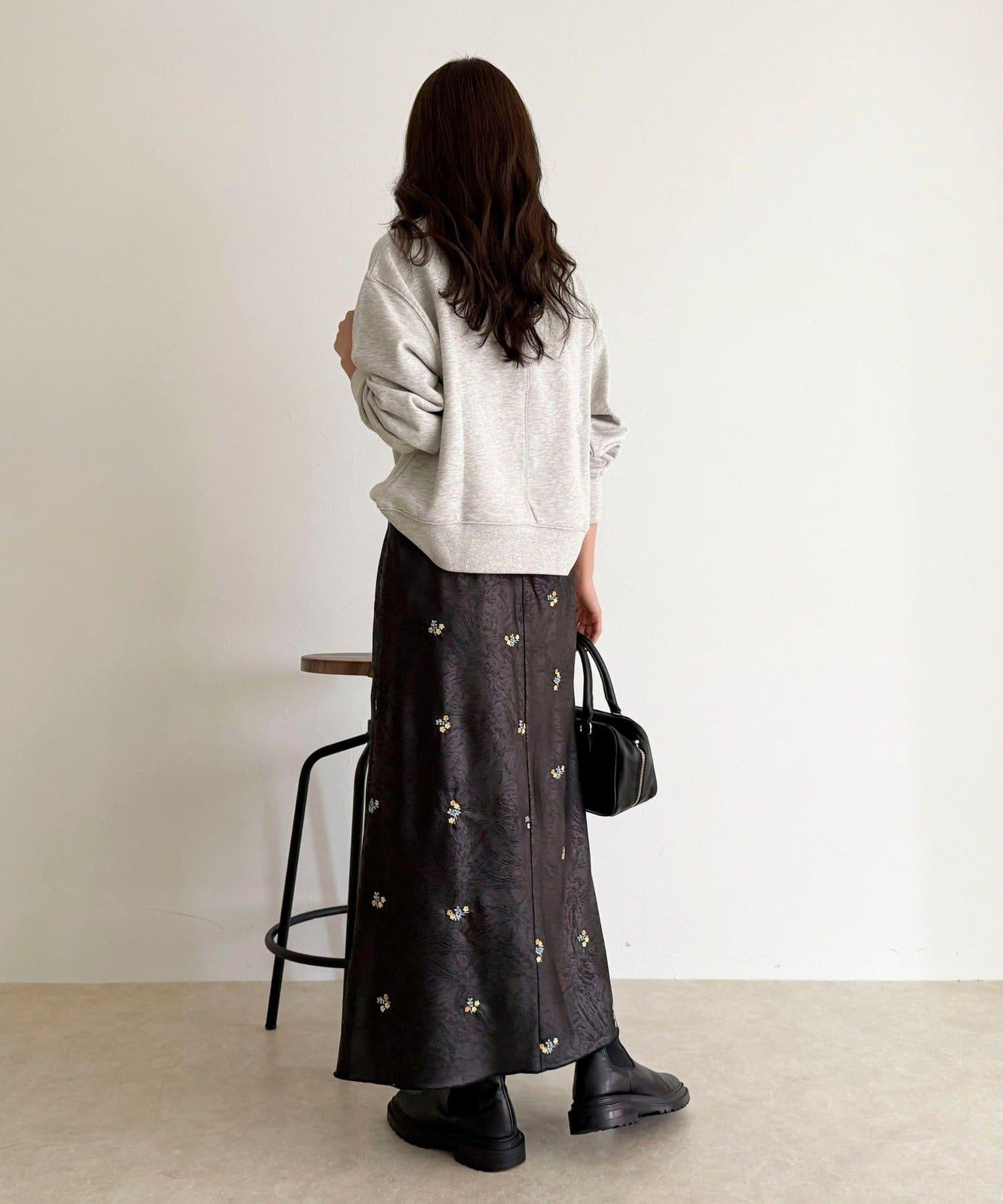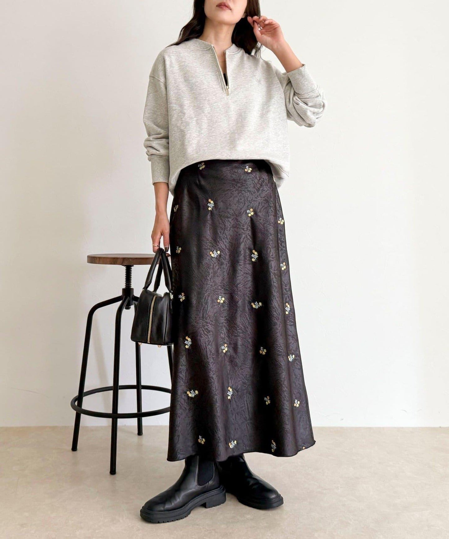 身高 156cm 的工作人員(穿 38 號):腰部鬆緊帶柔軟貼身,長時間穿著也很舒適!刺繡非常華麗,只需搭配一件簡單的上衣,這條裙子就能成為全場的焦點。