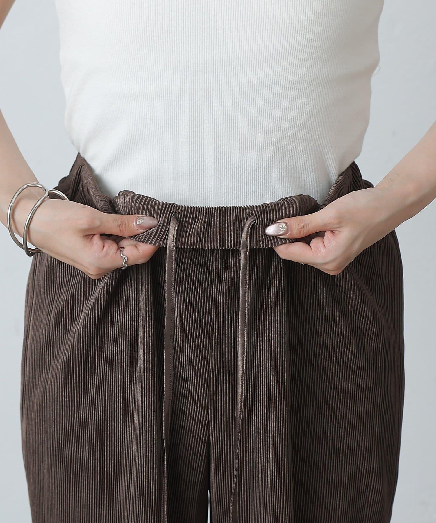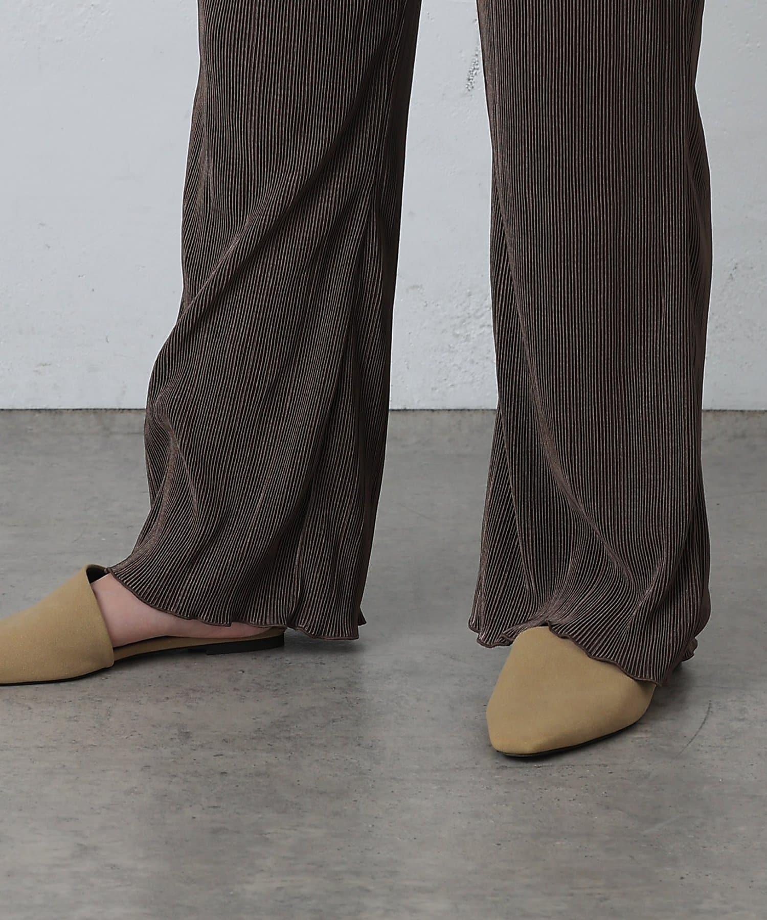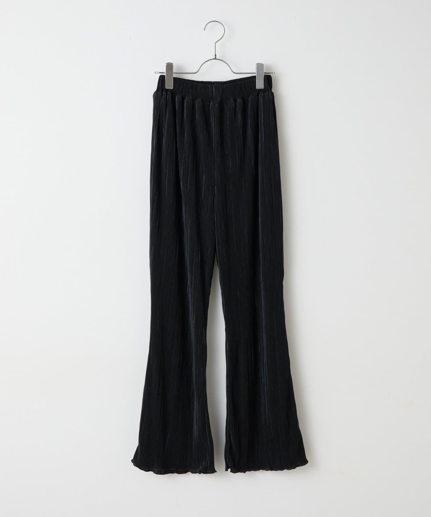 精緻的垂直褶皺為這款喇叭褲營造出優雅的光澤和色調。