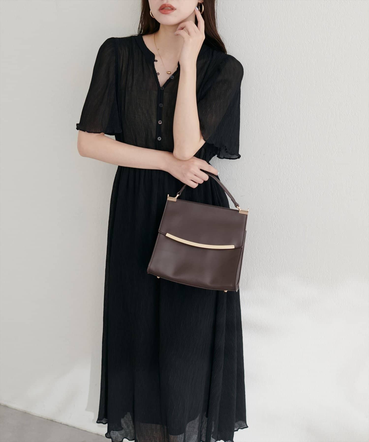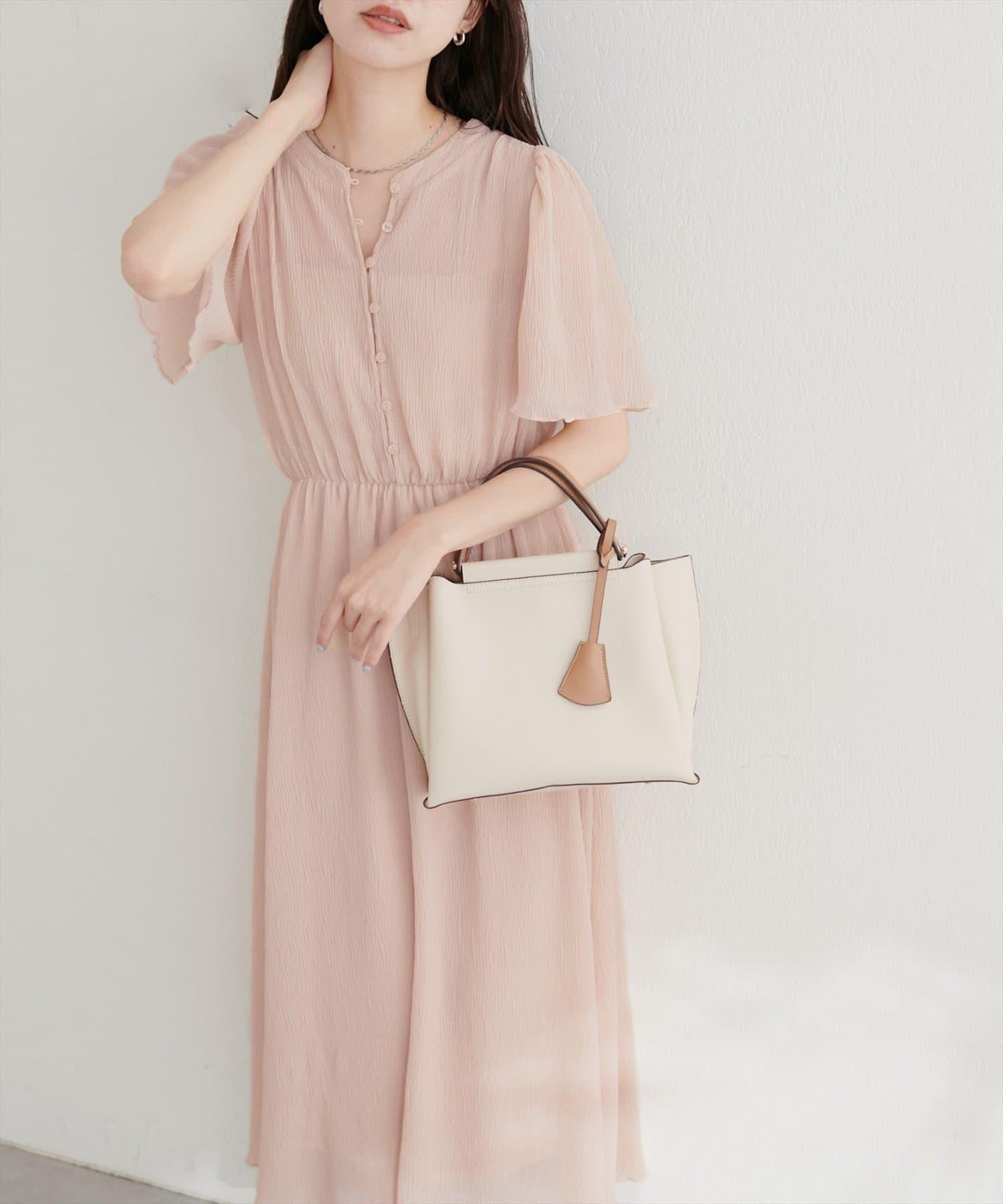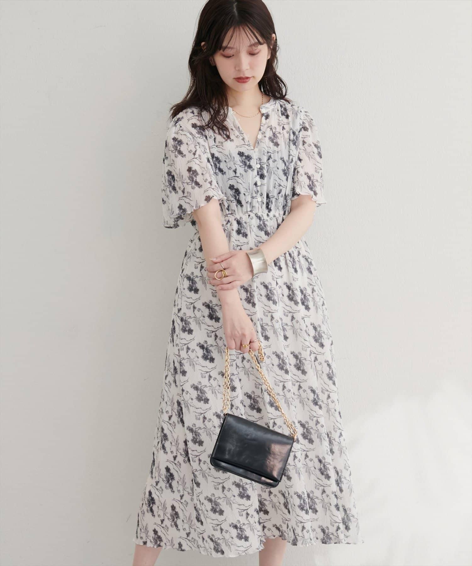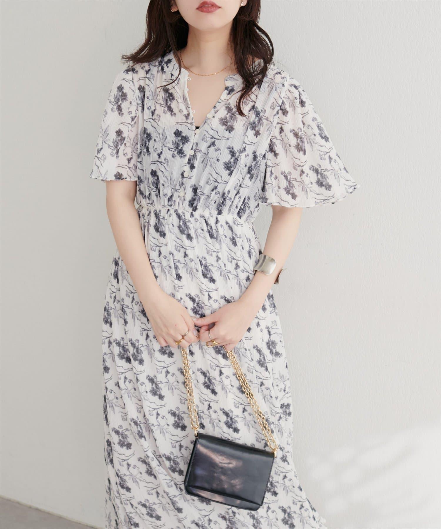 總褶皺波浪袖連衣裙