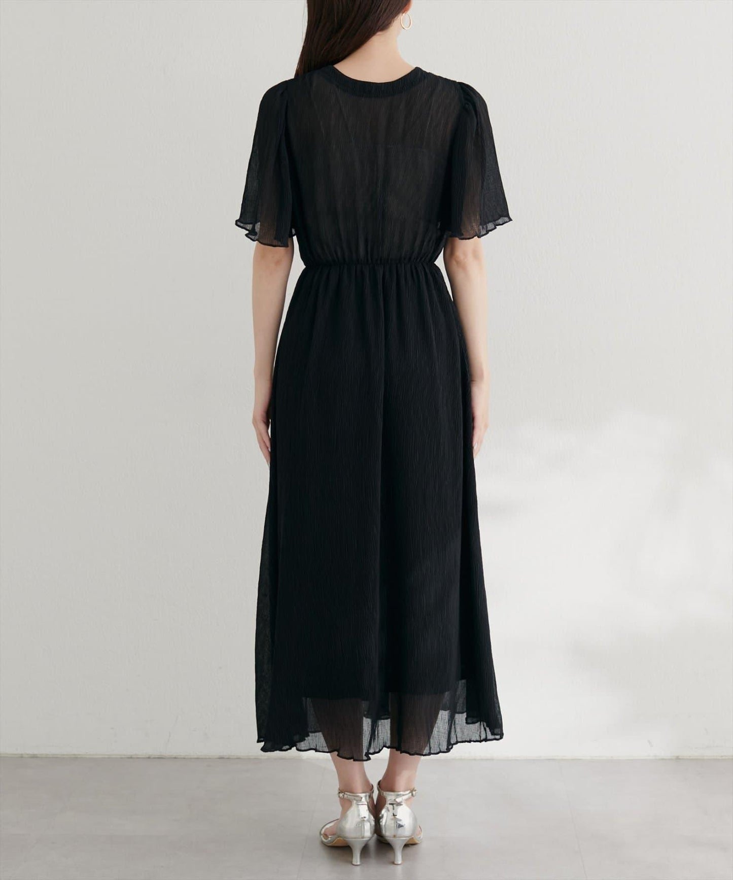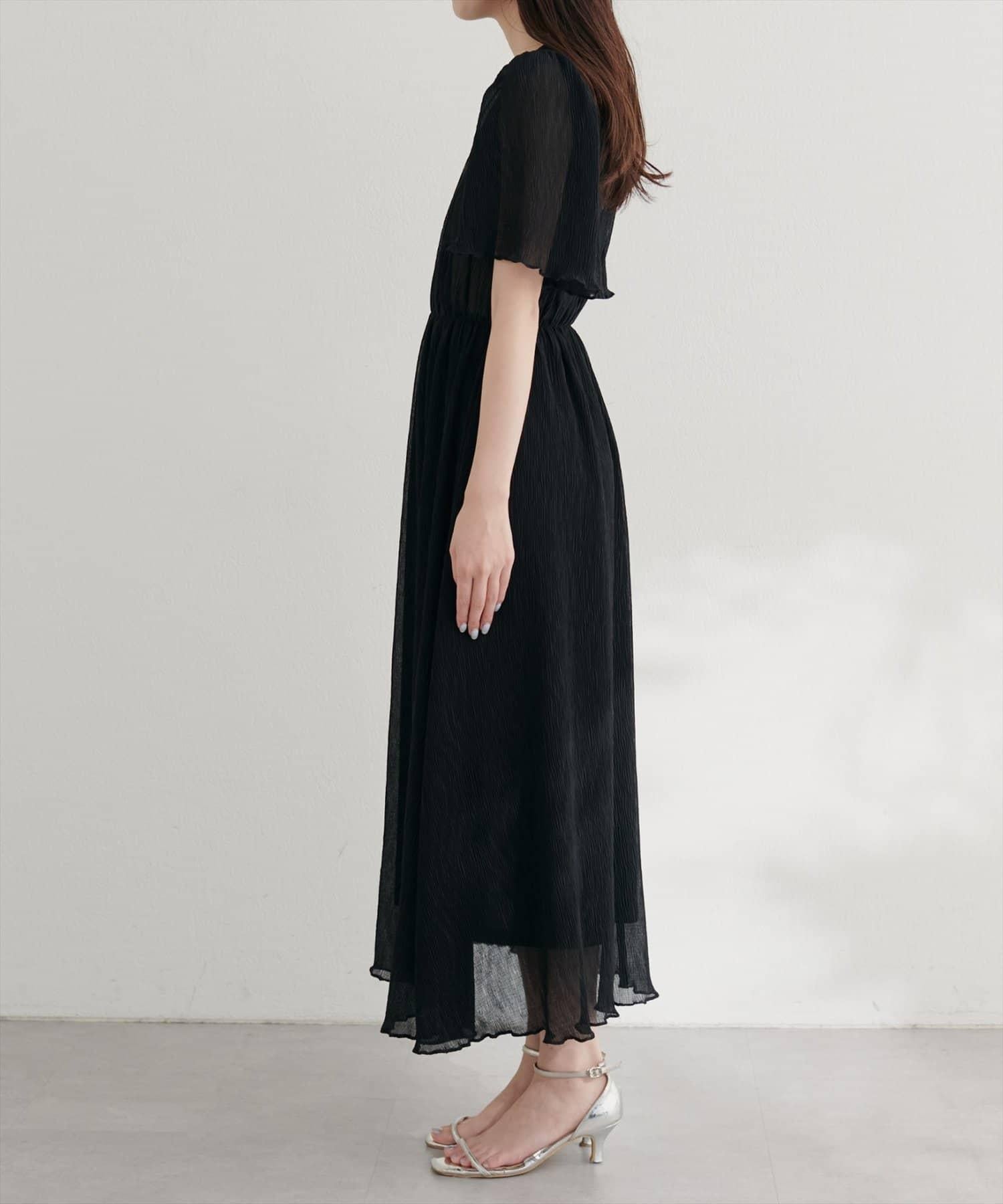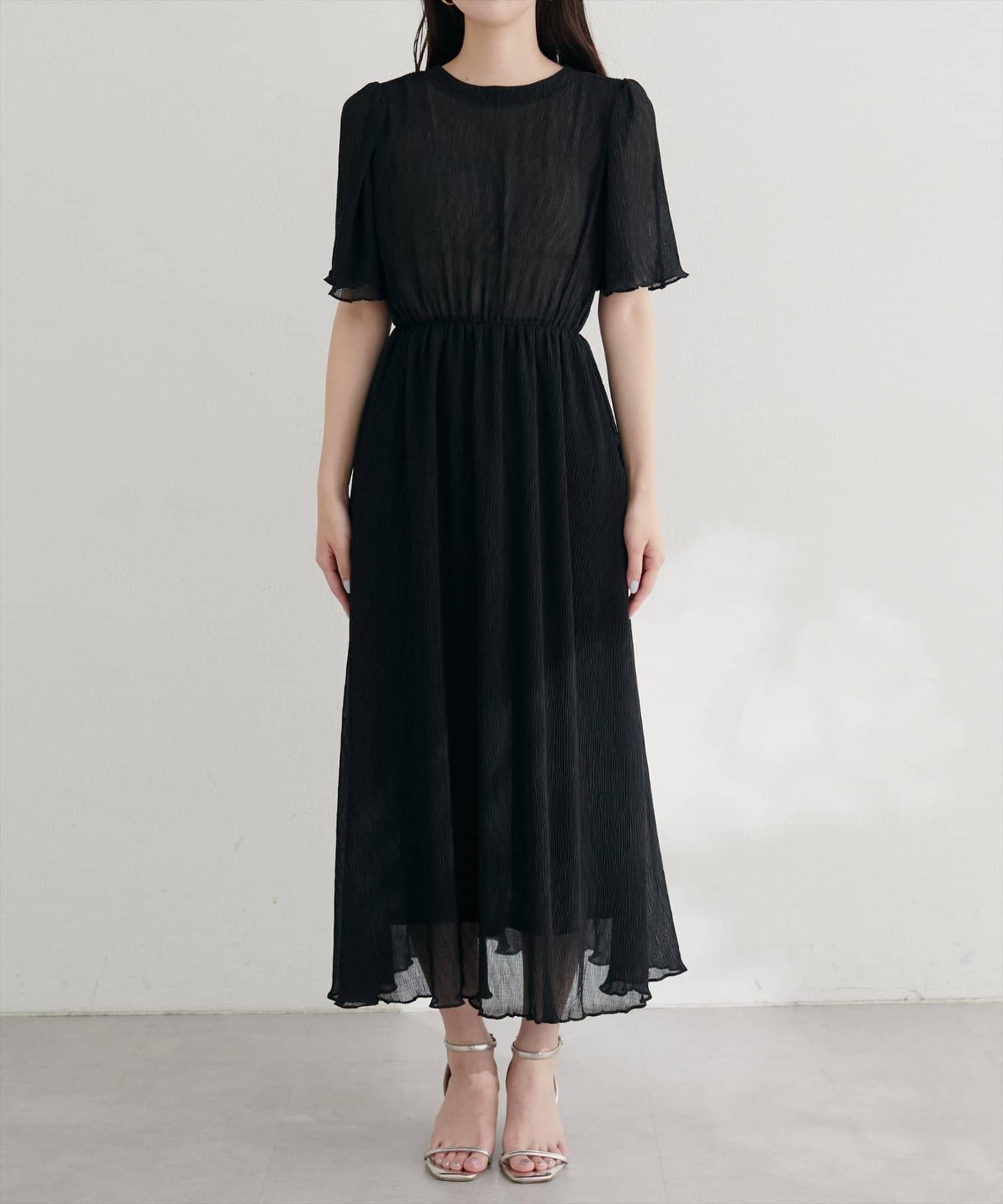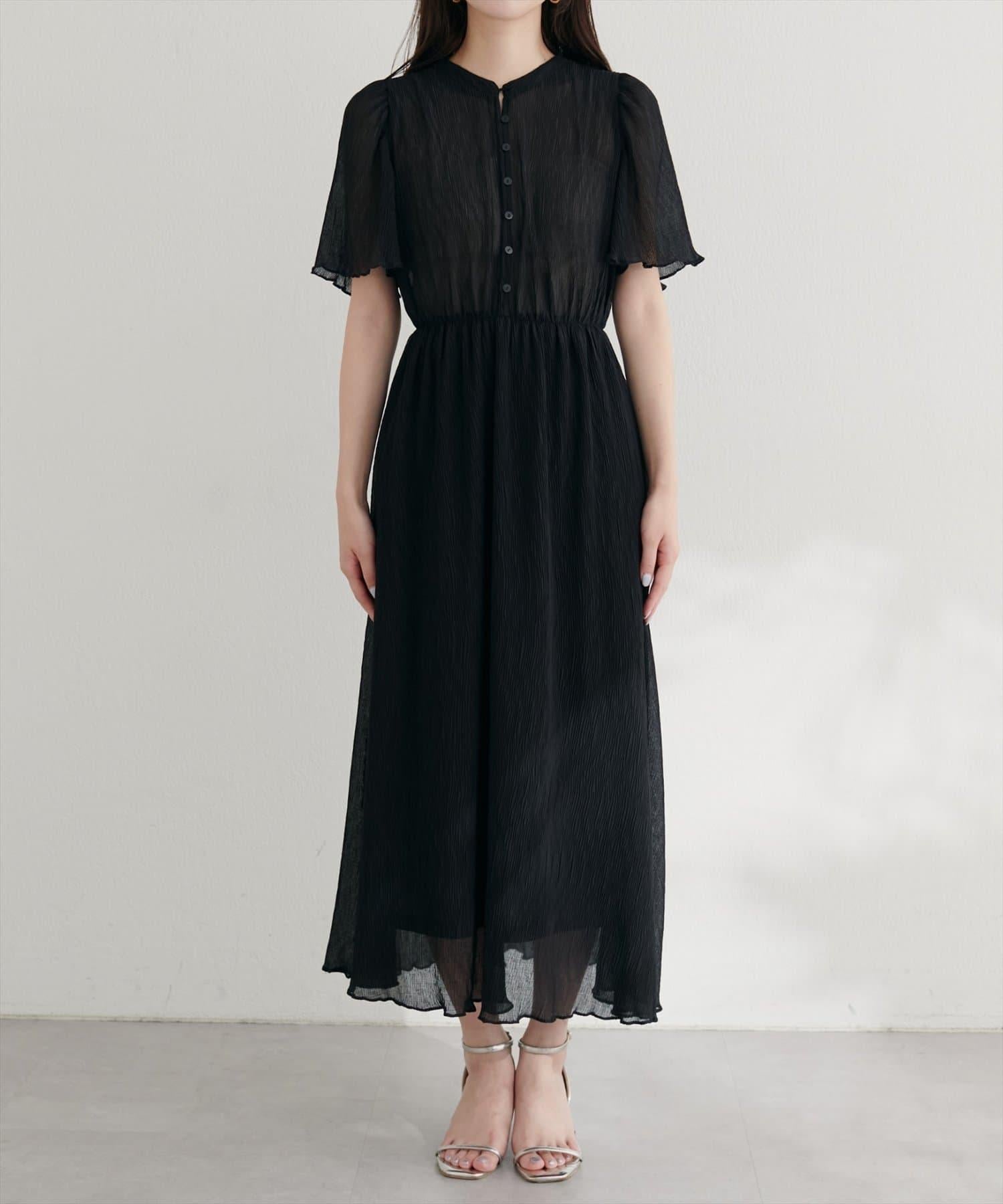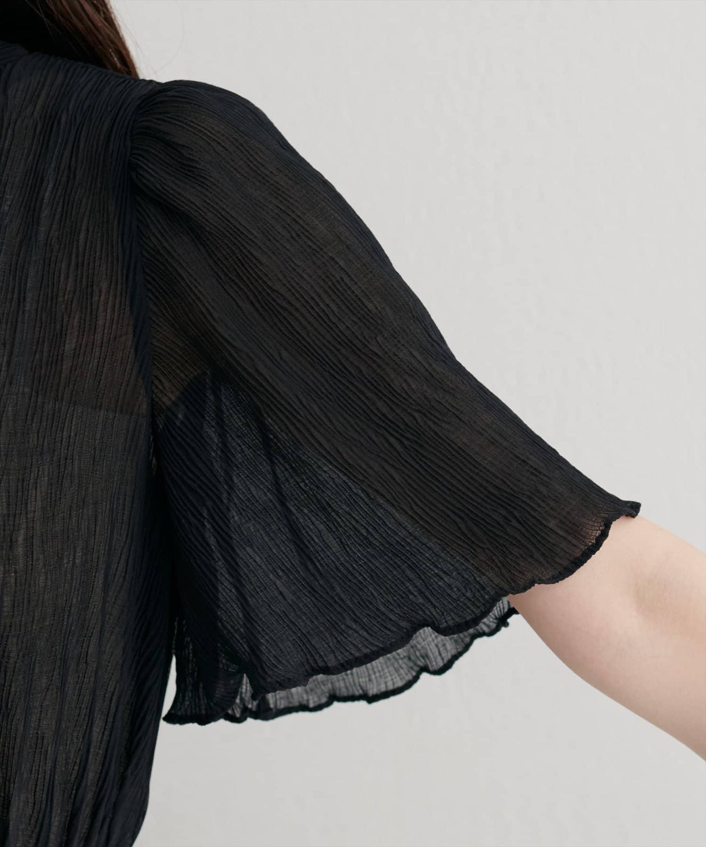 全褶皺喇叭袖連衣裙