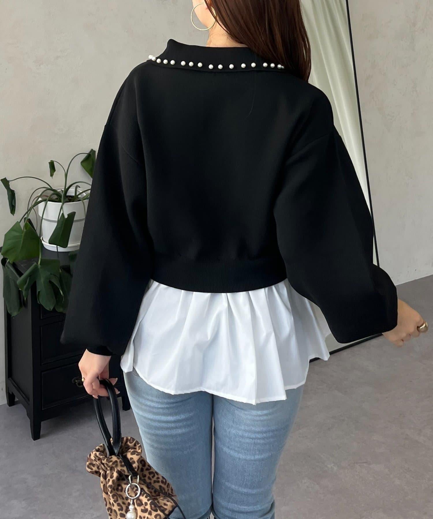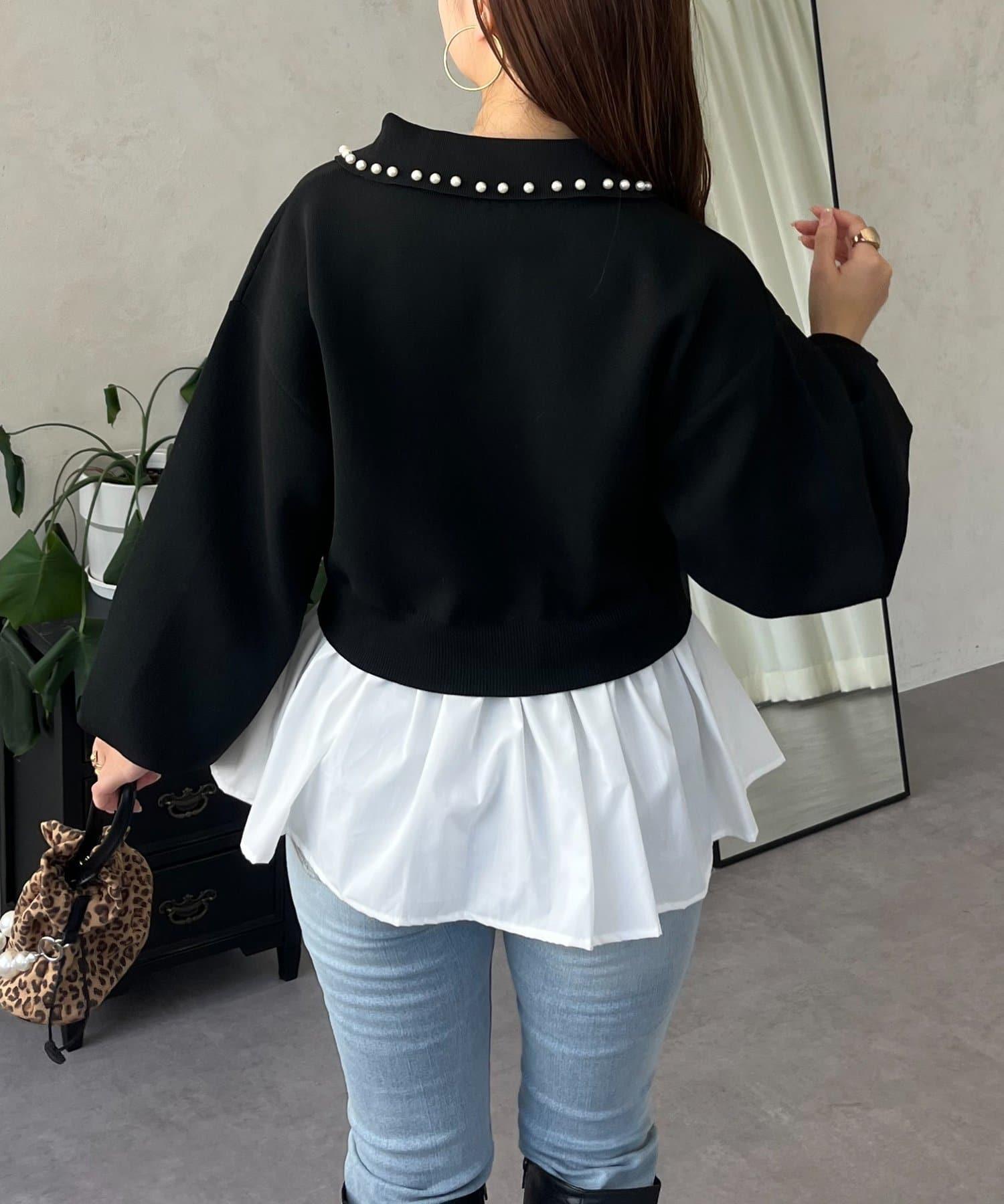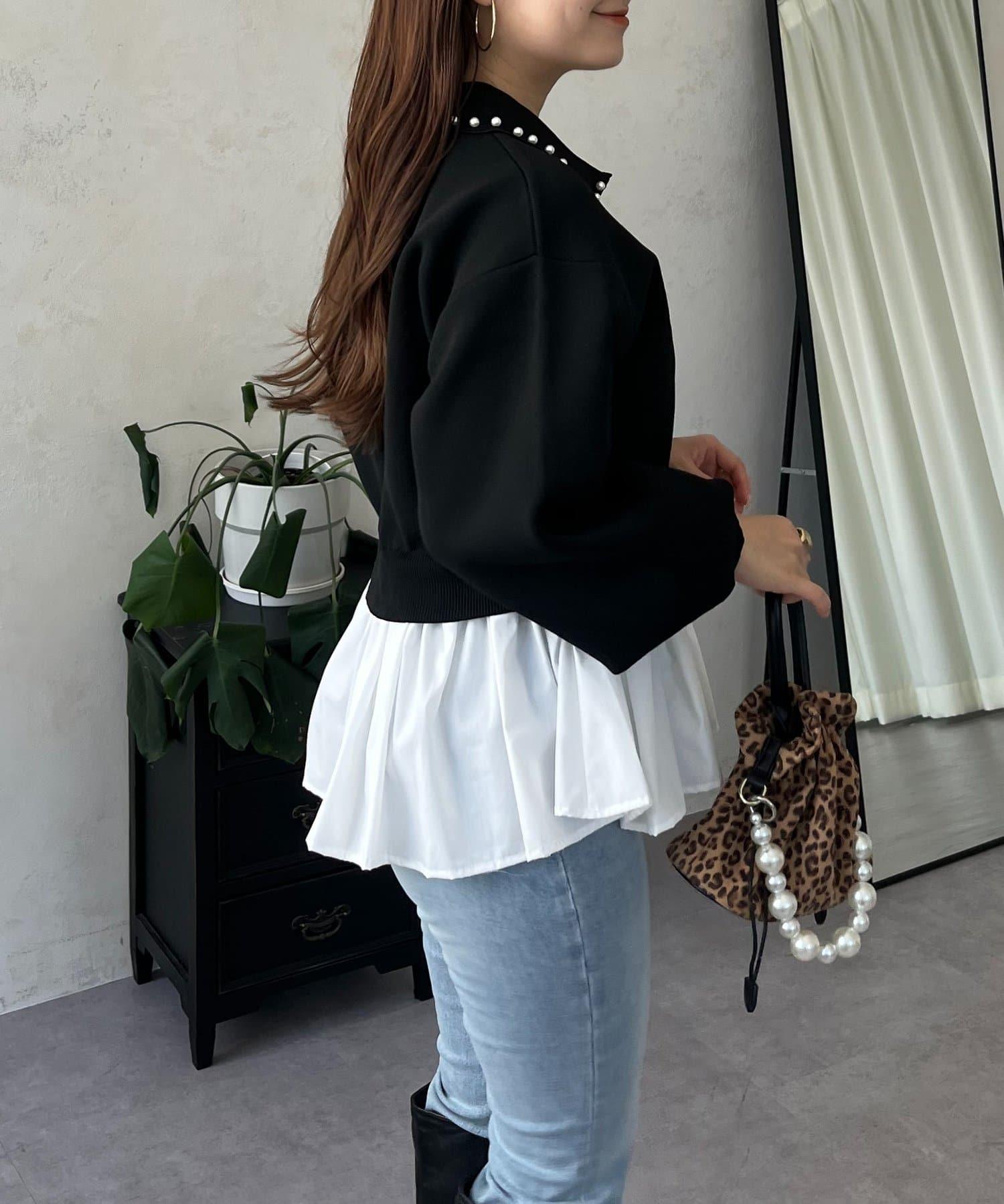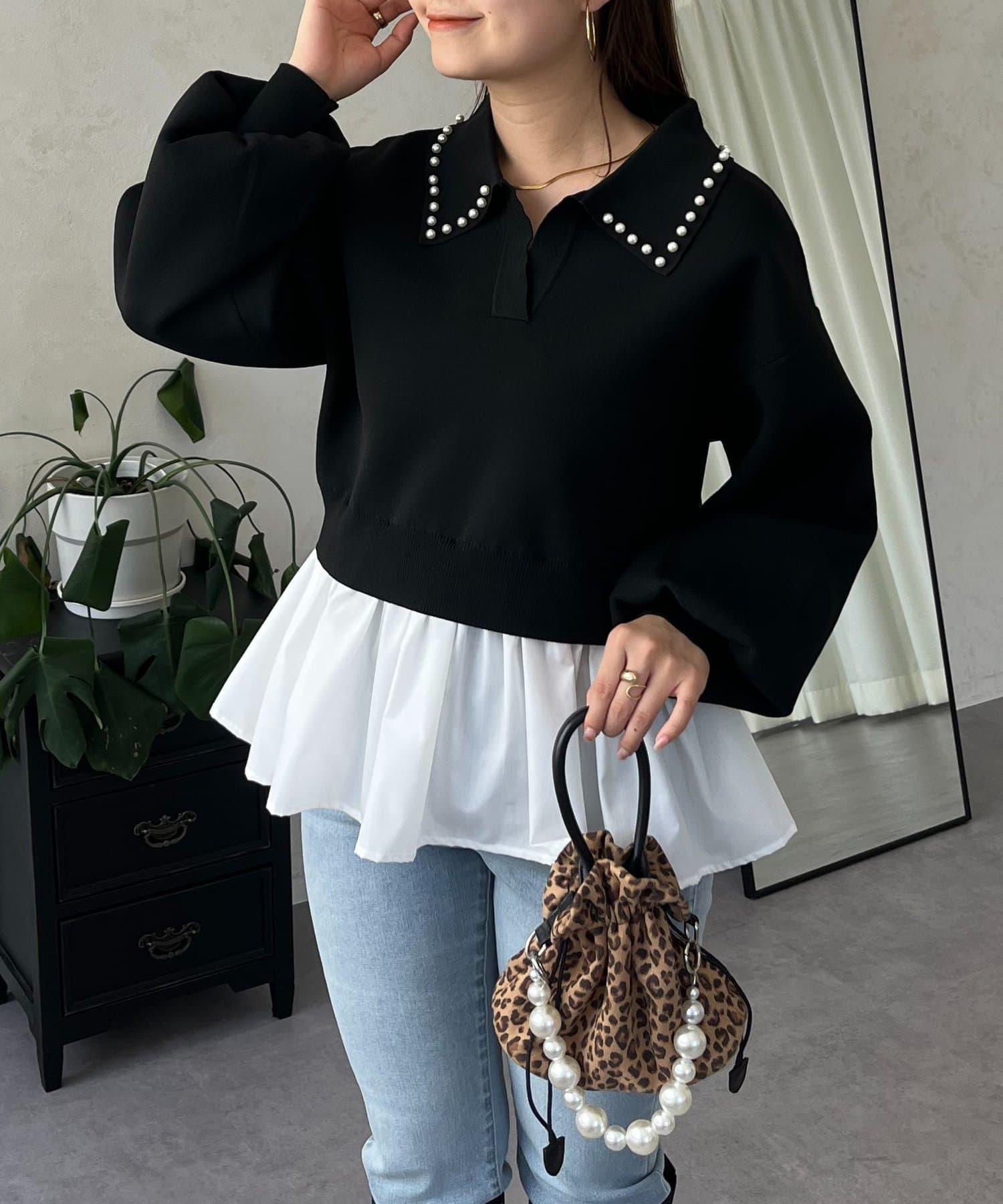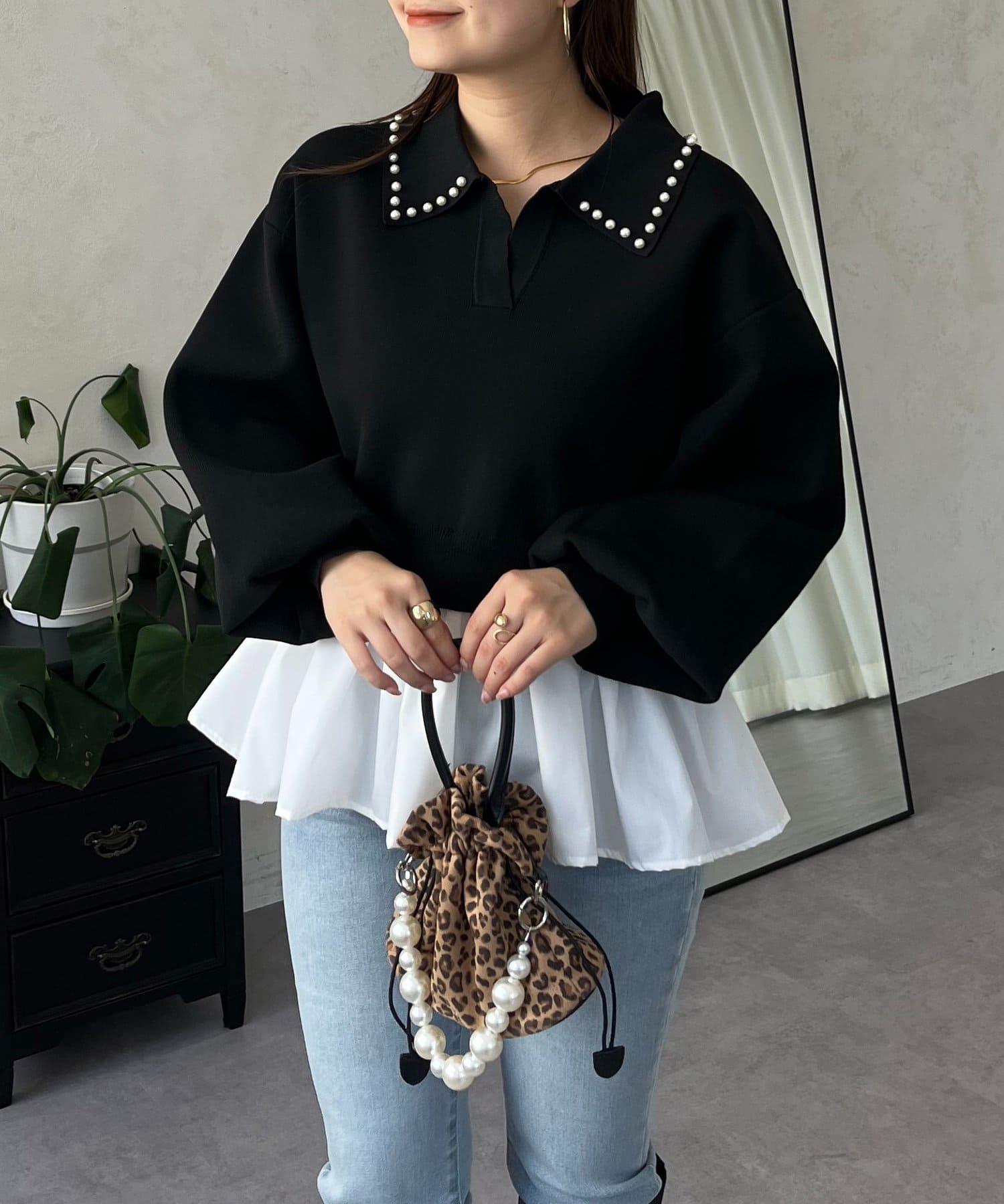 【總選舉參賽單品】珍珠領2way開領荷葉邊針織衫