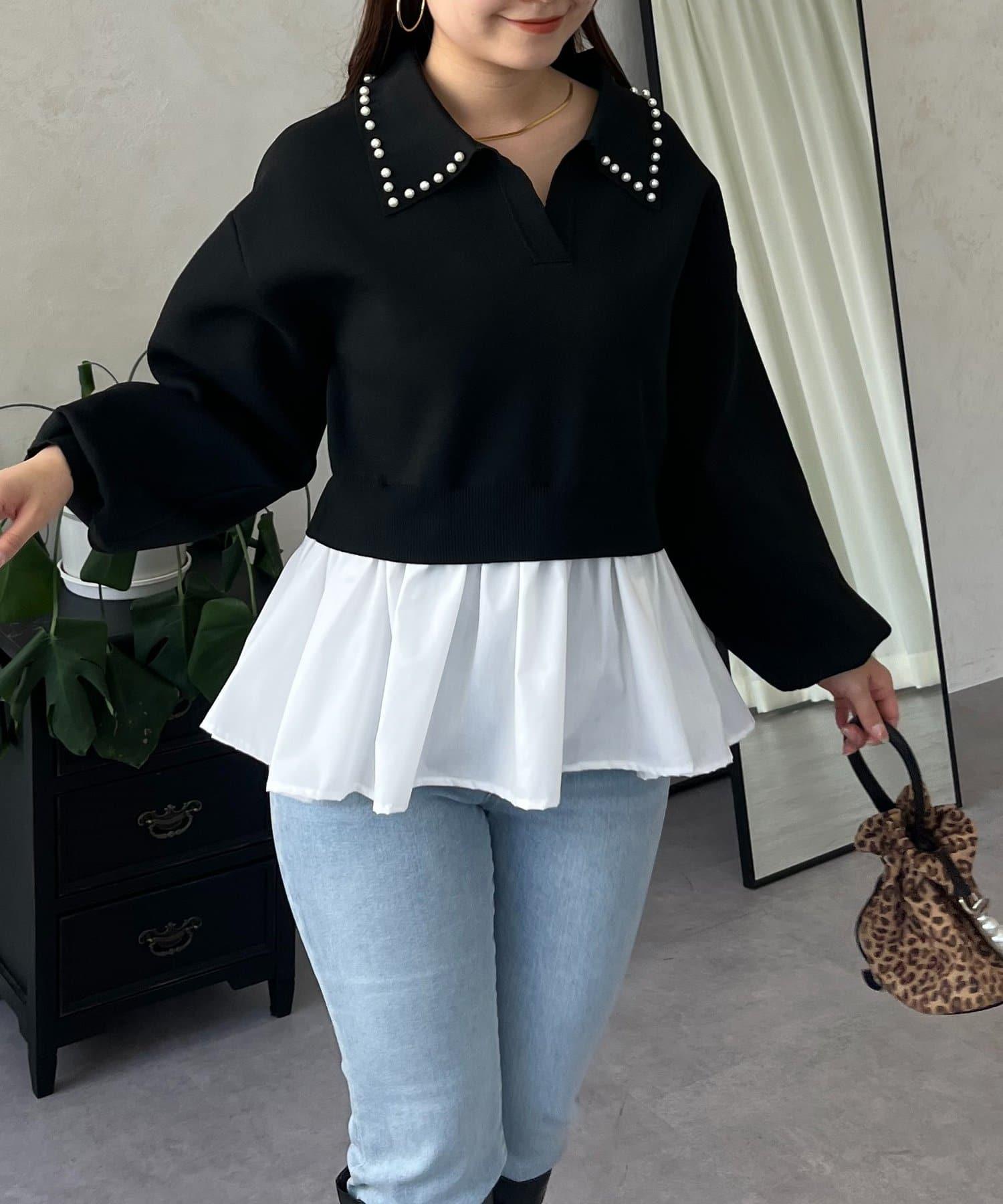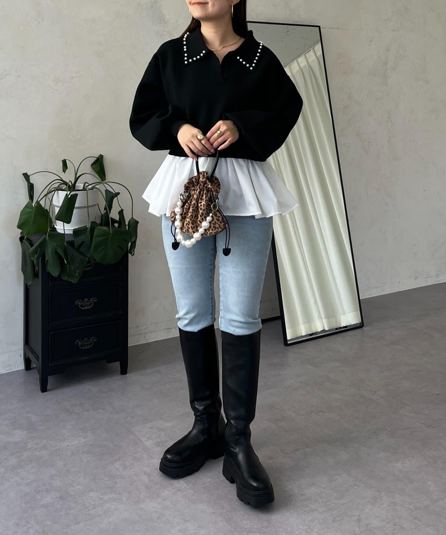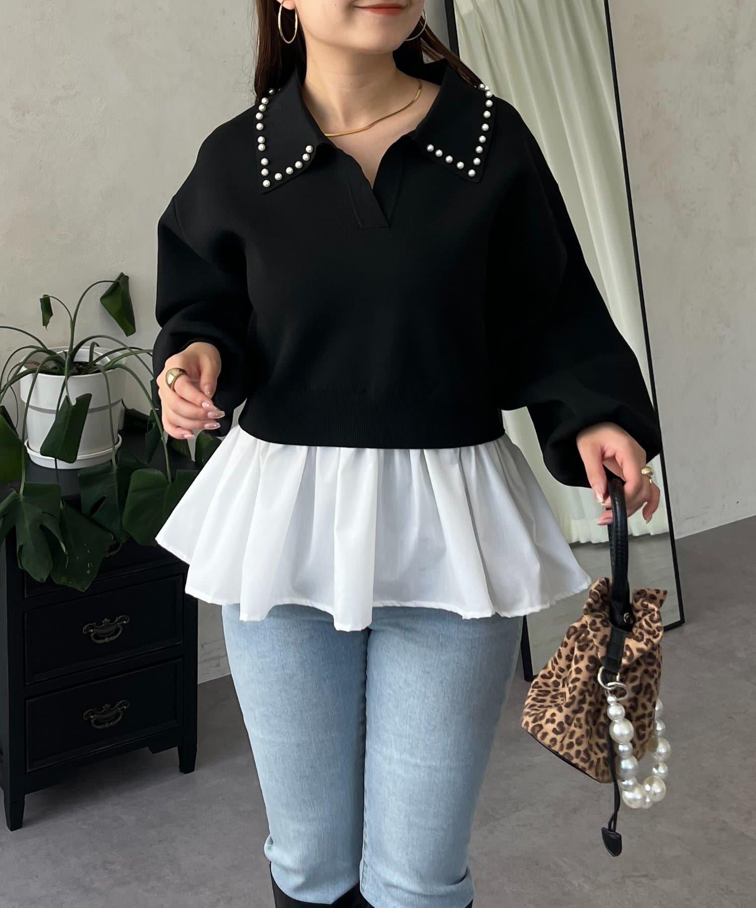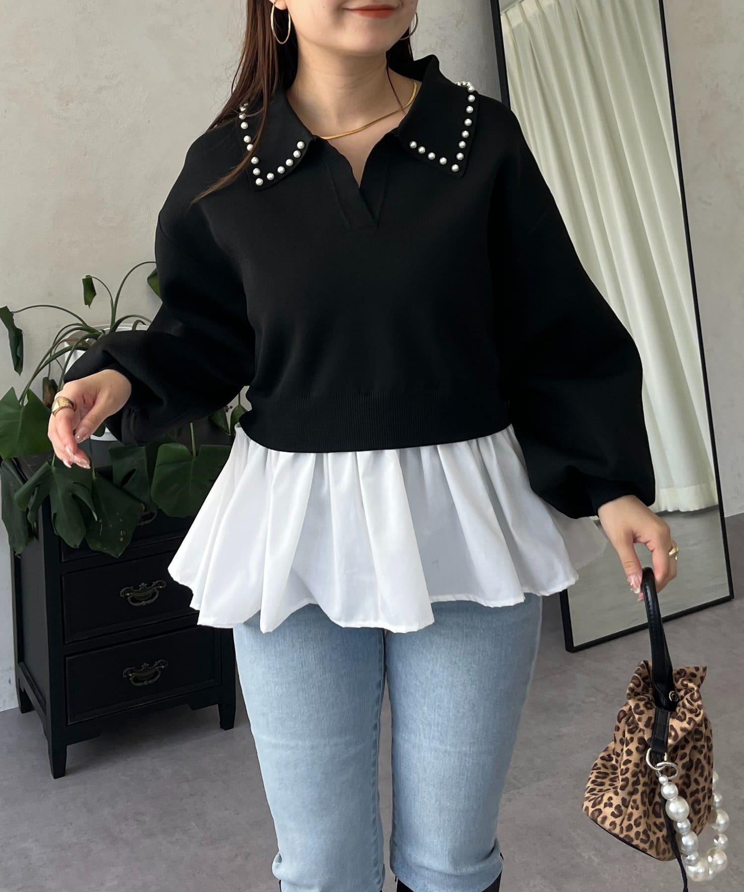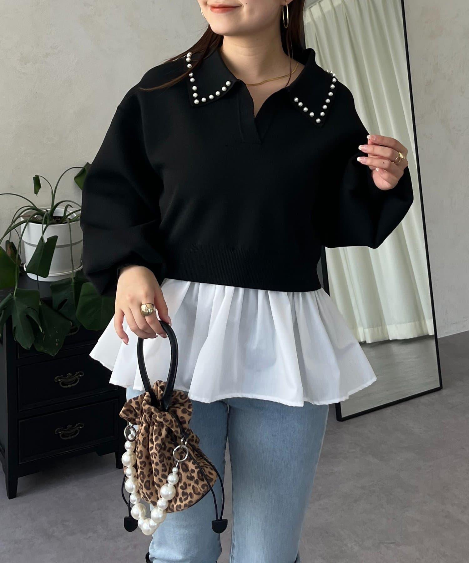 【總選舉參賽單品】珍珠領2way開領荷葉邊針織衫