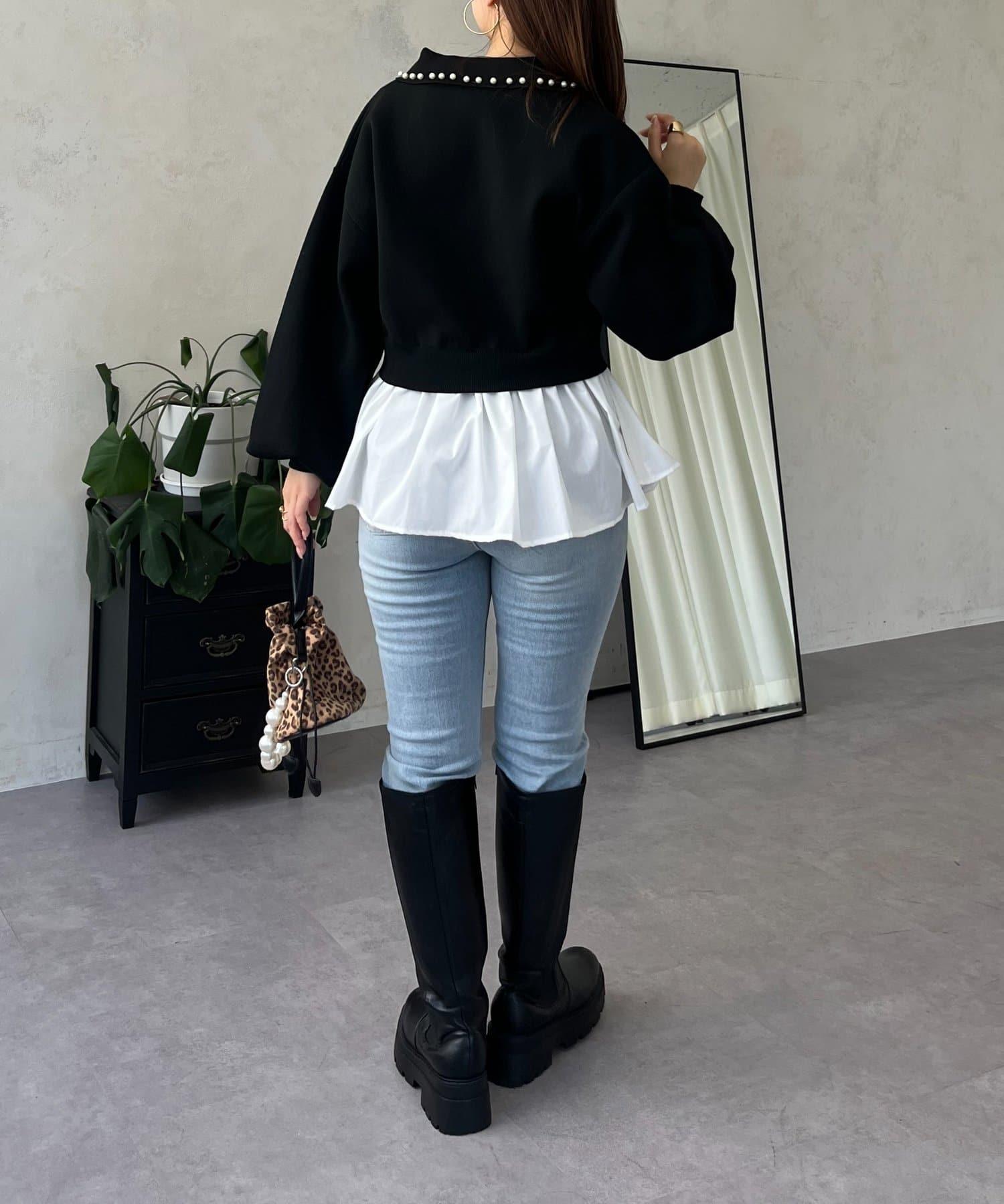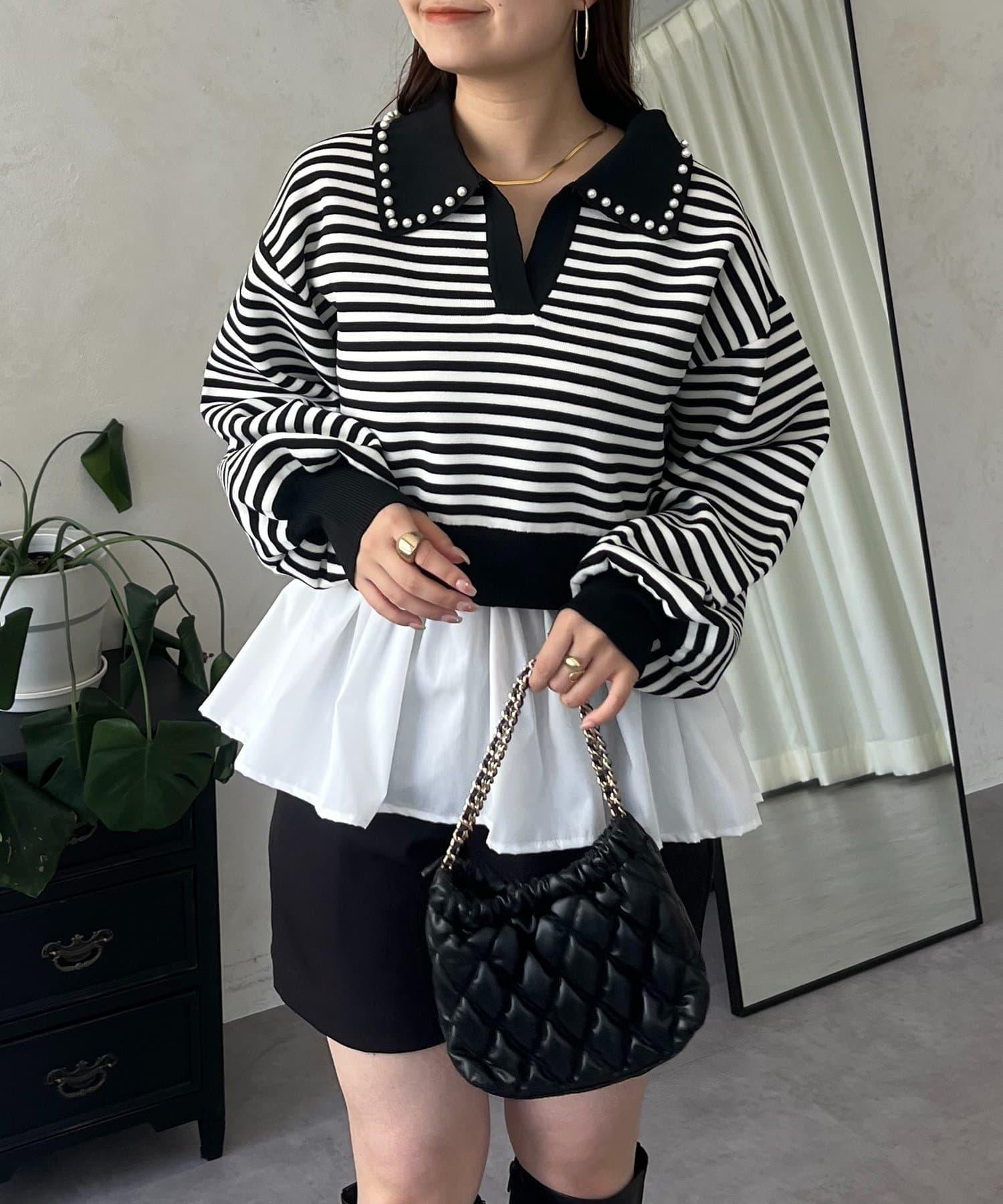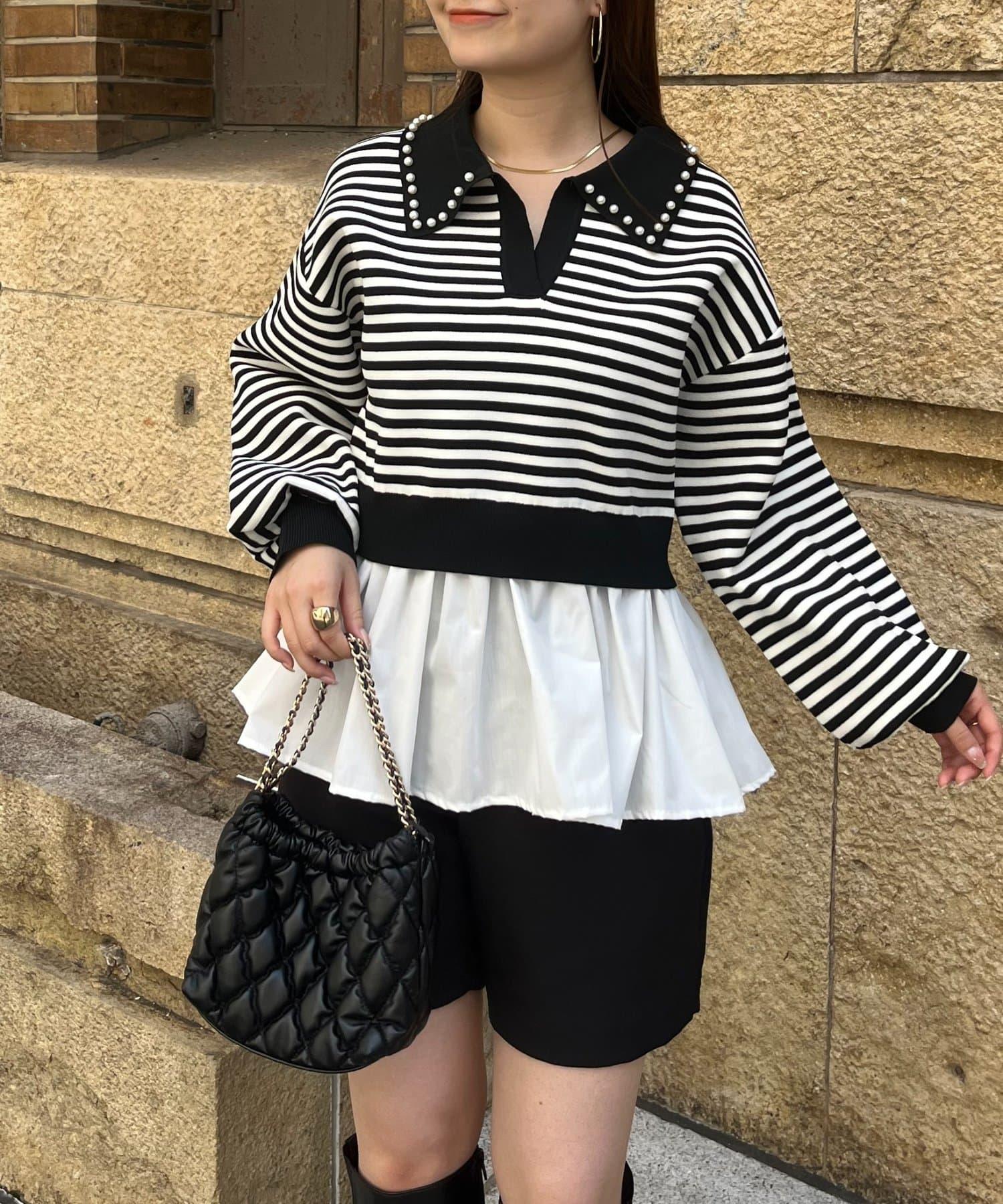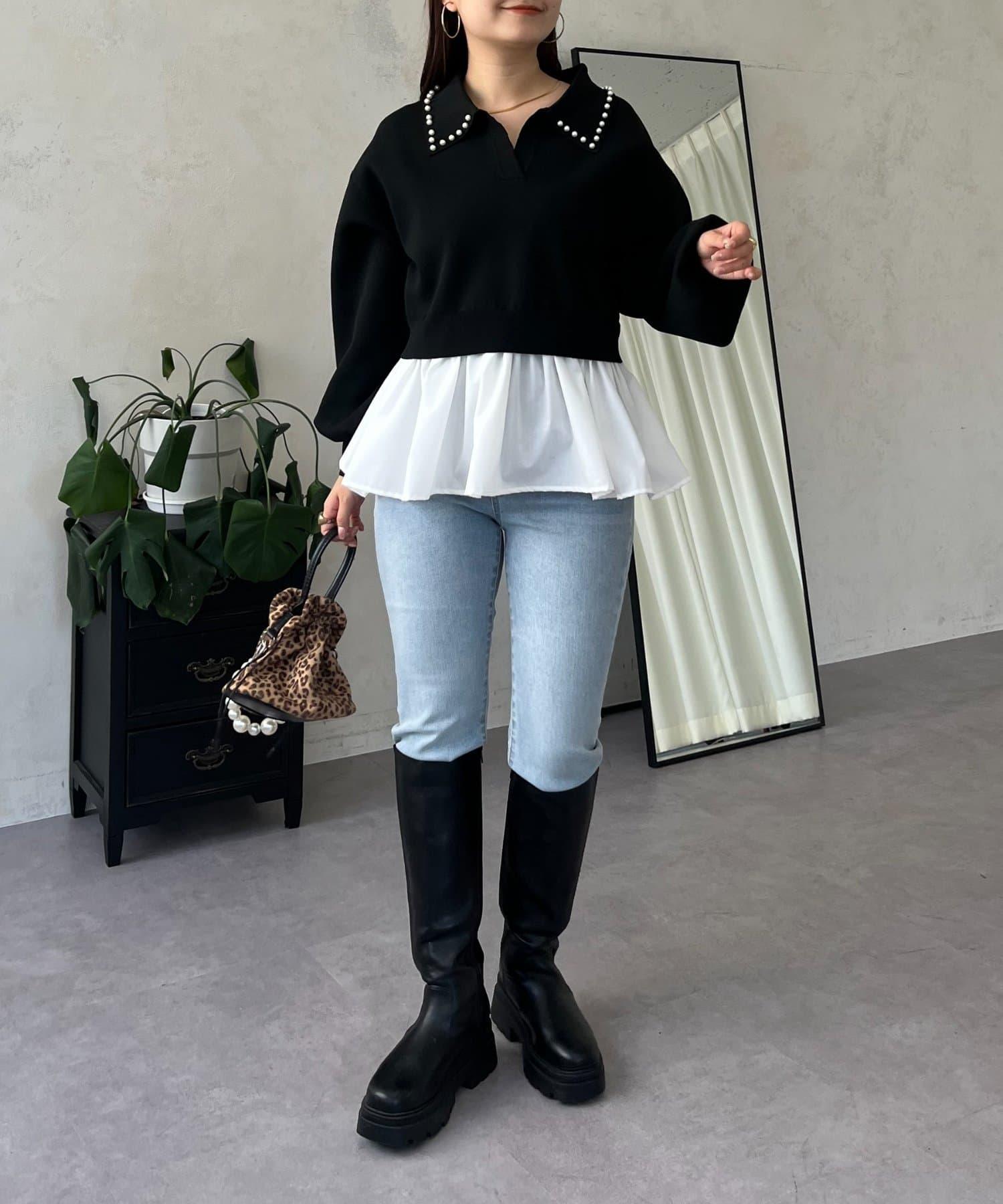 【總選舉參賽單品】珍珠領2way開領荷葉邊針織衫