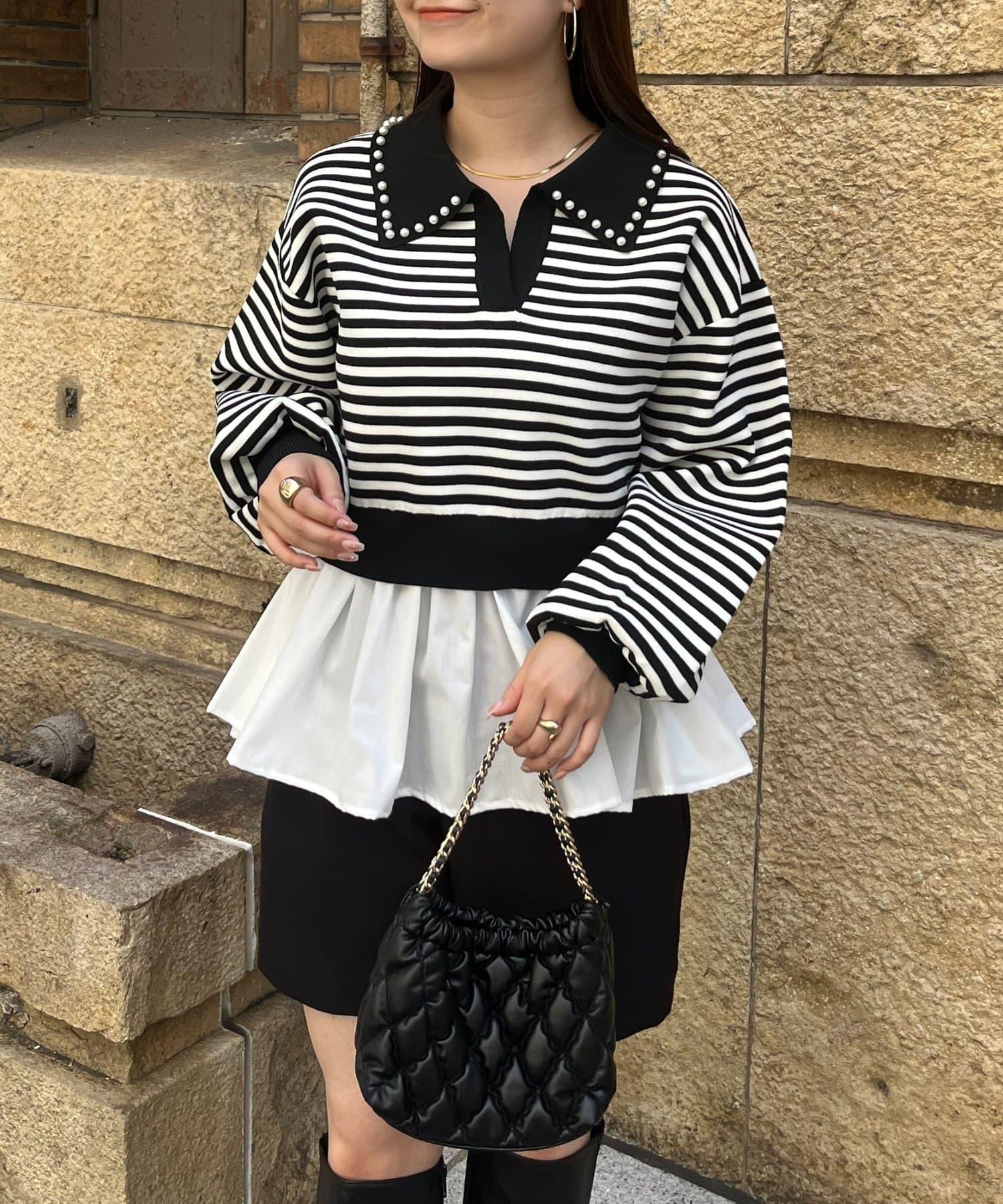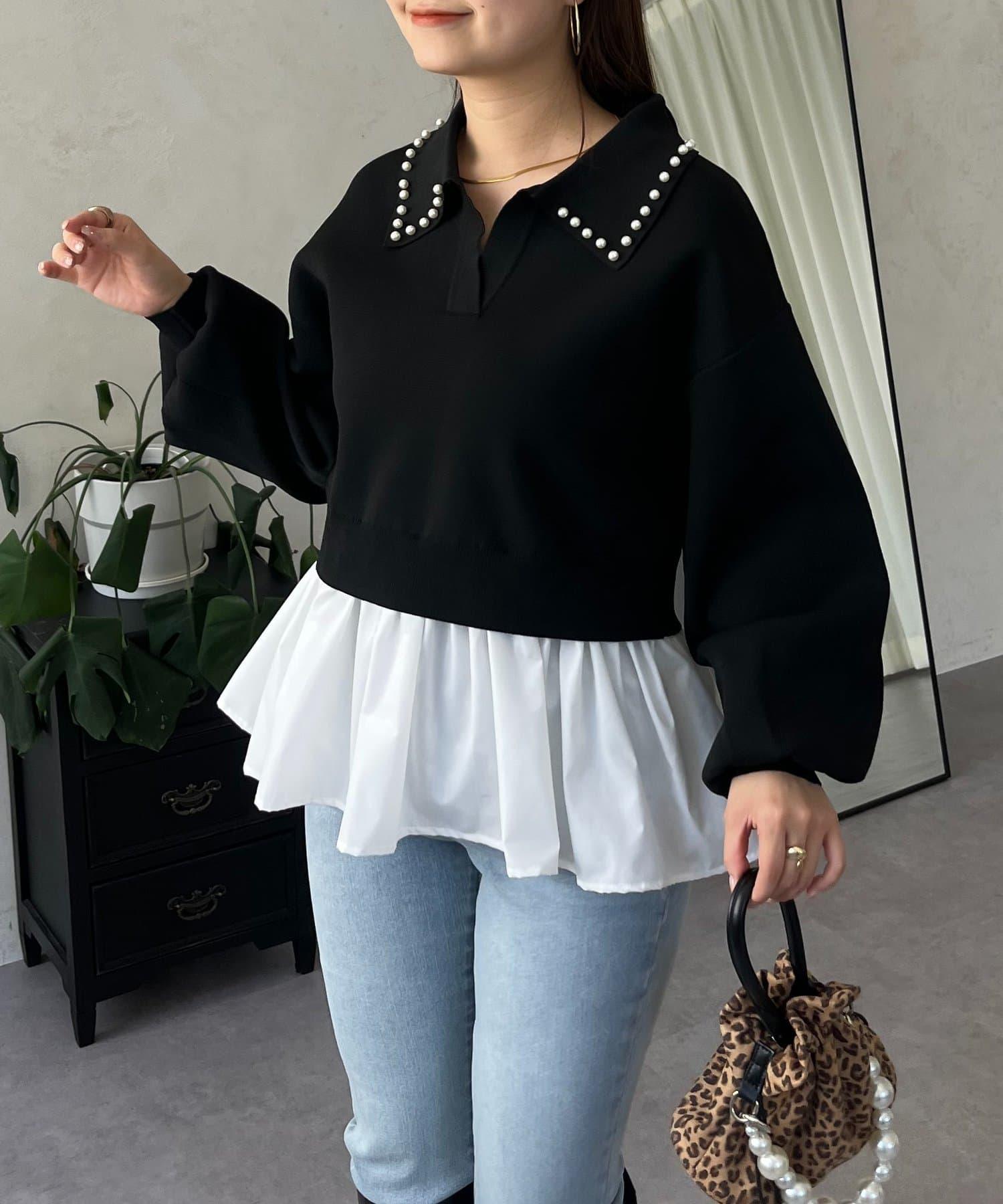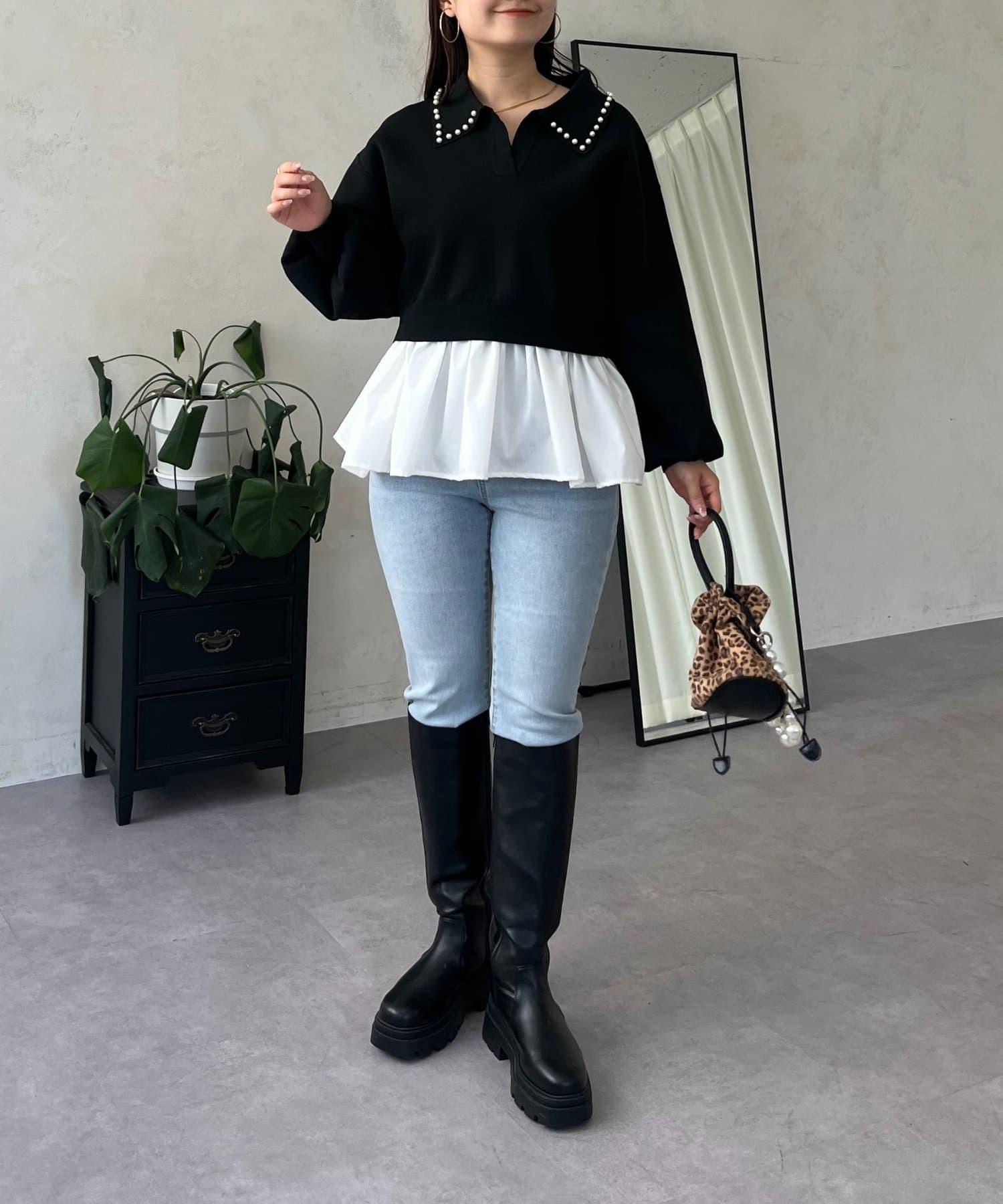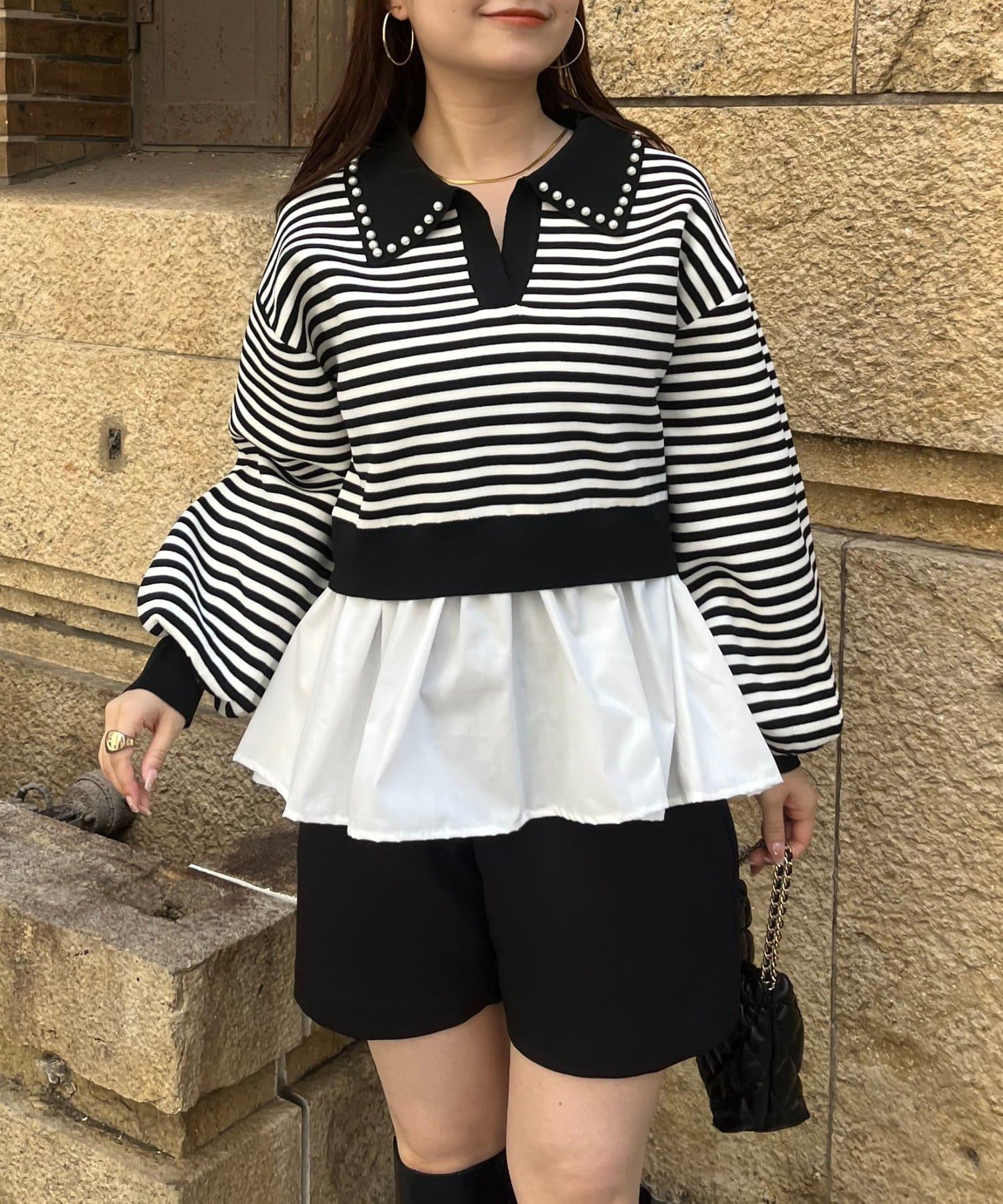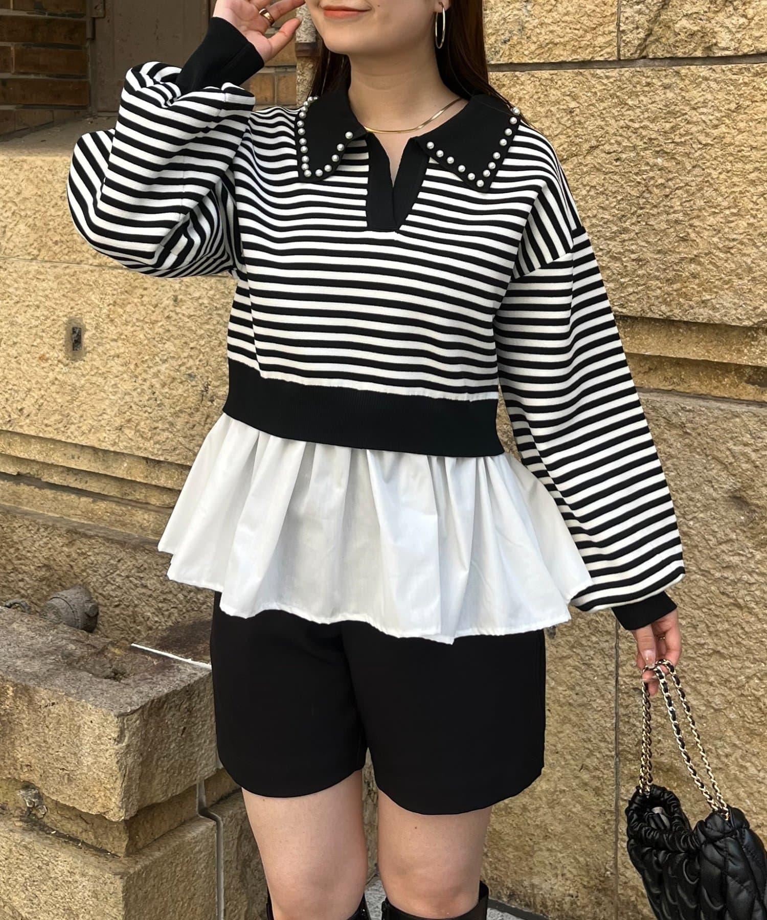 【總選舉參賽單品】珍珠領2way開領荷葉邊針織衫