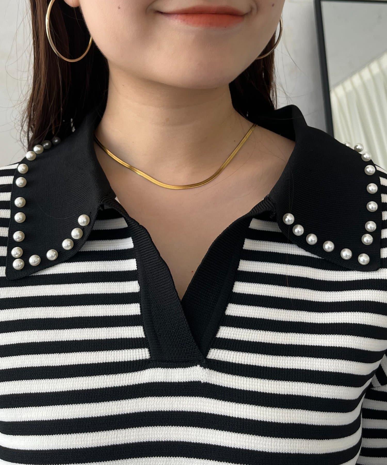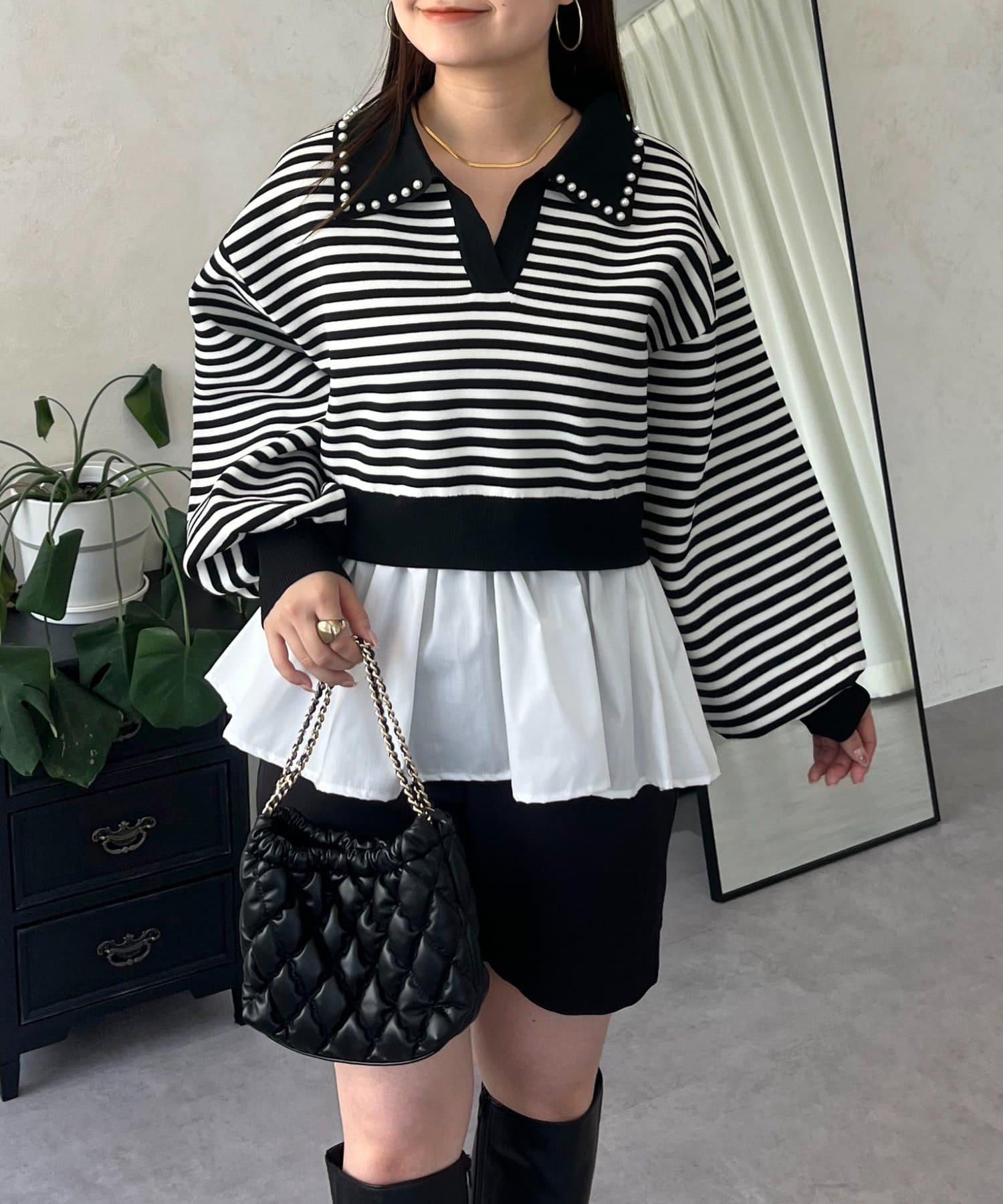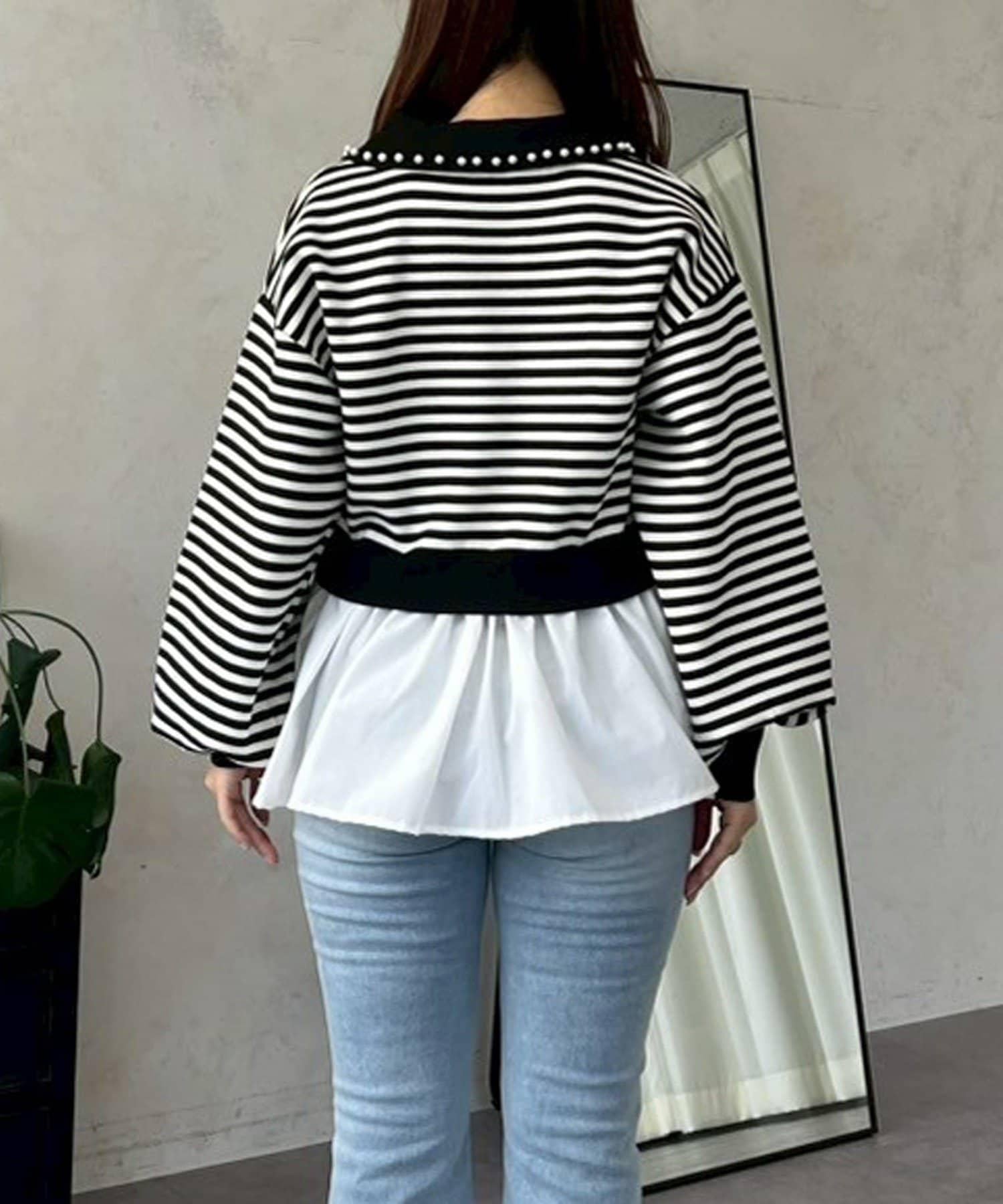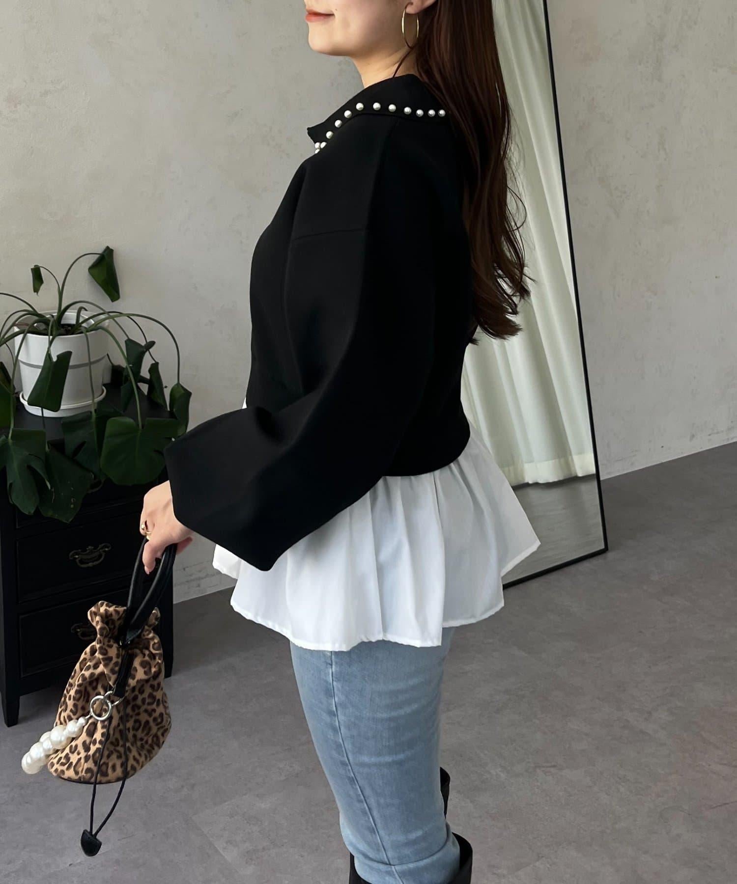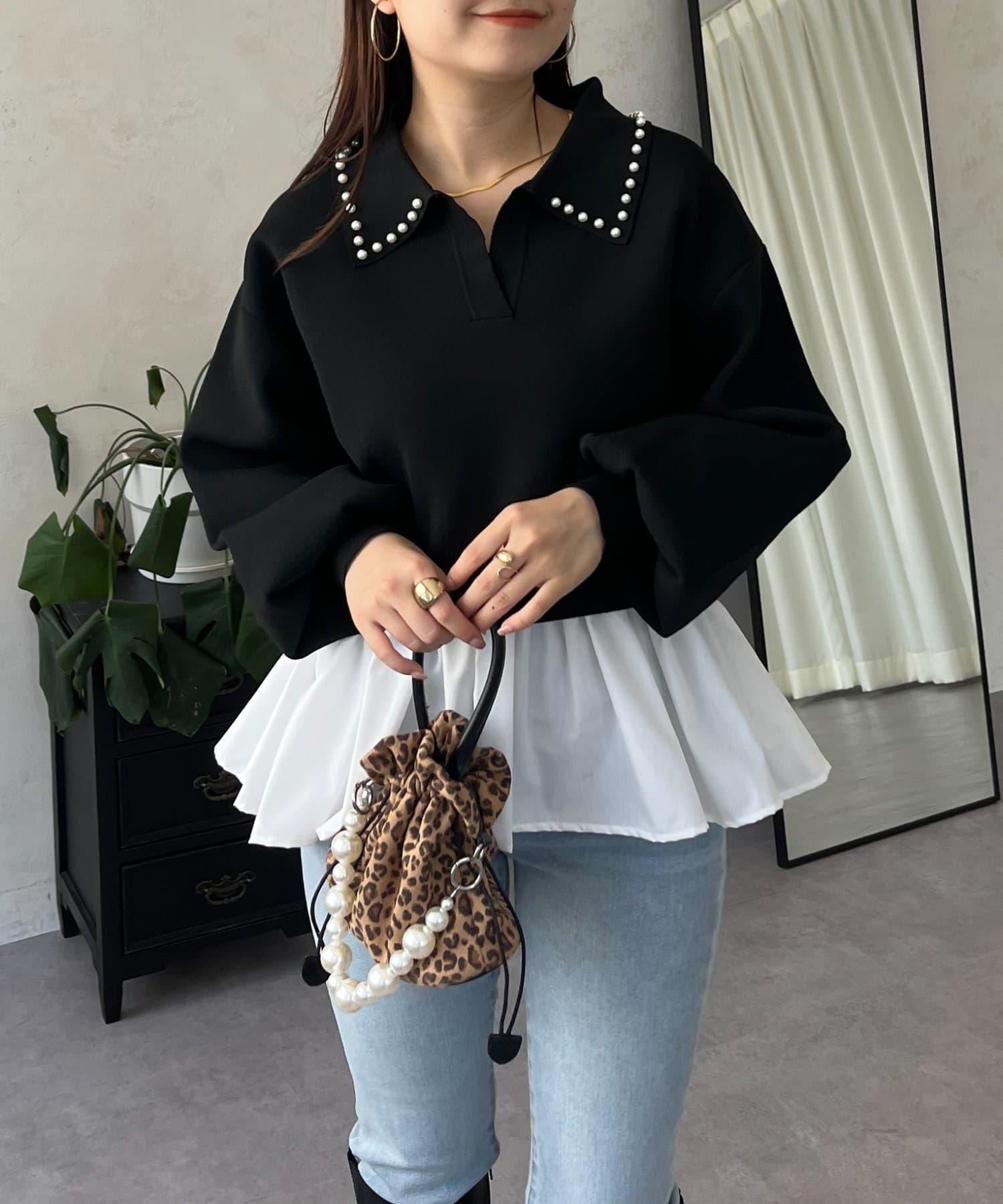 【總選舉參賽單品】珍珠領2way開領荷葉邊針織衫