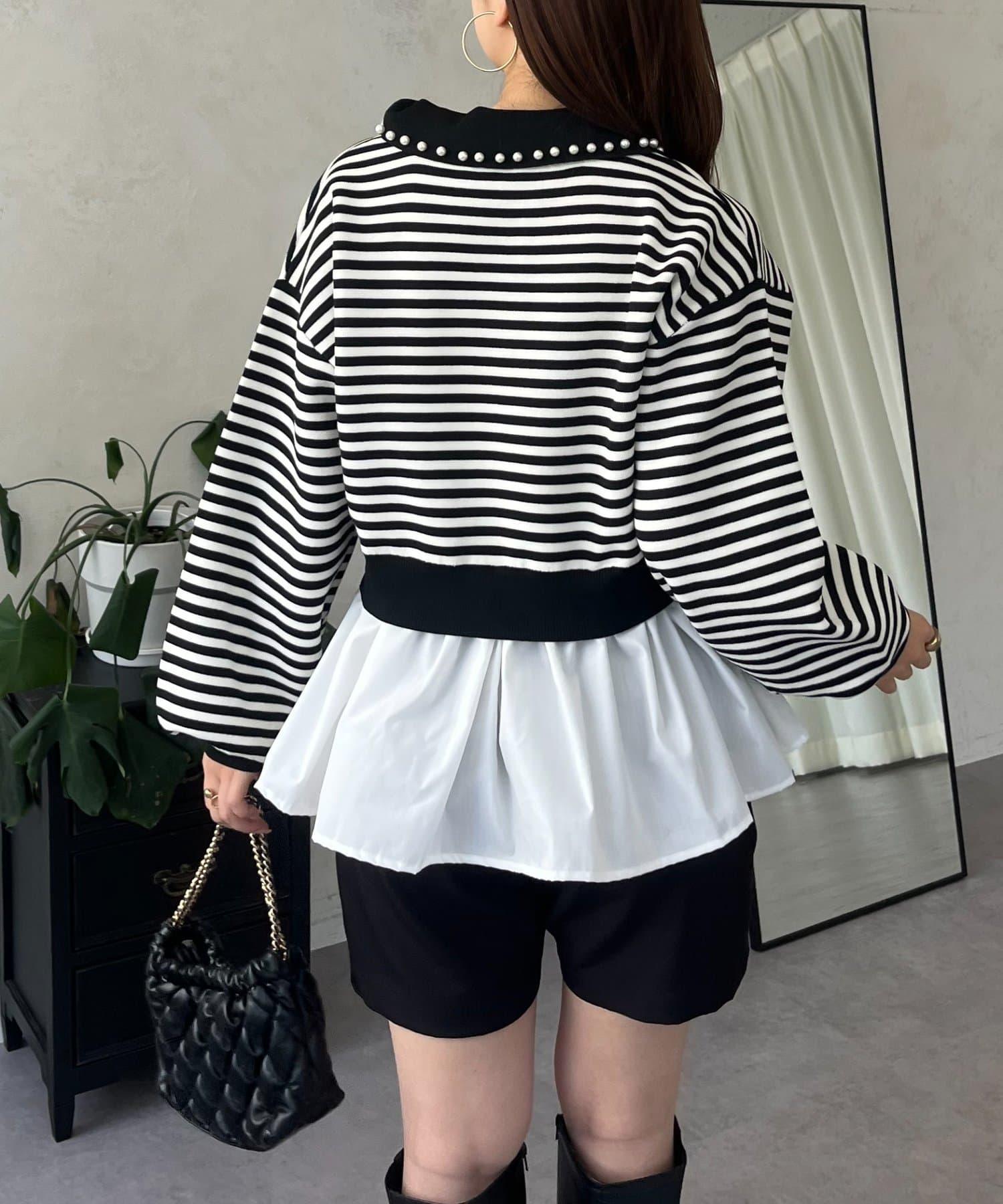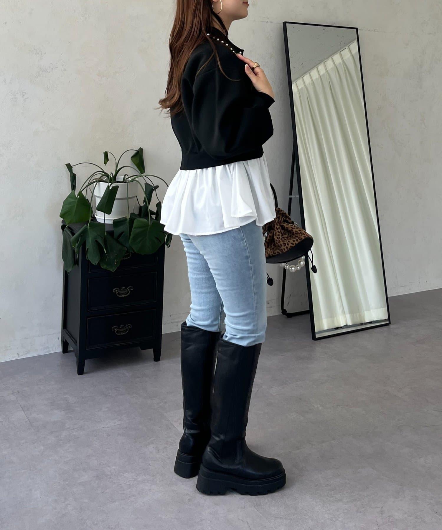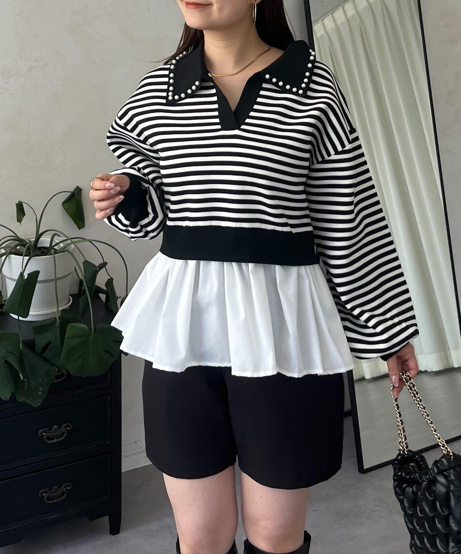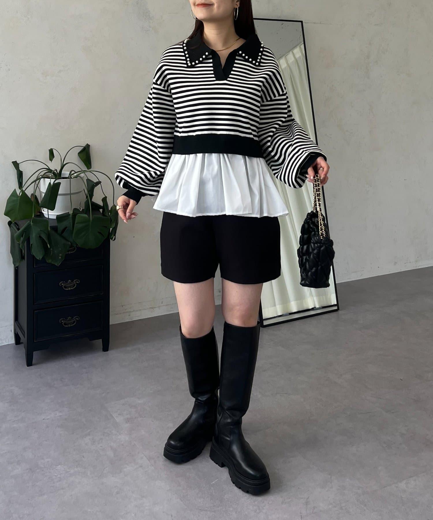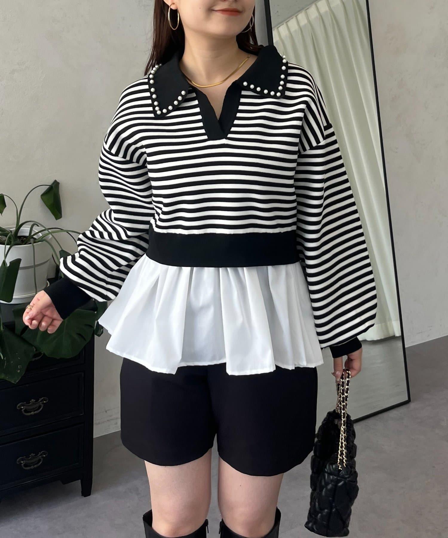 【總選舉參賽單品】珍珠領2way開領荷葉邊針織衫