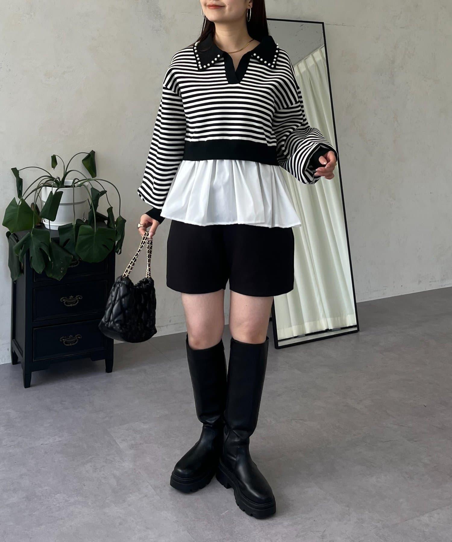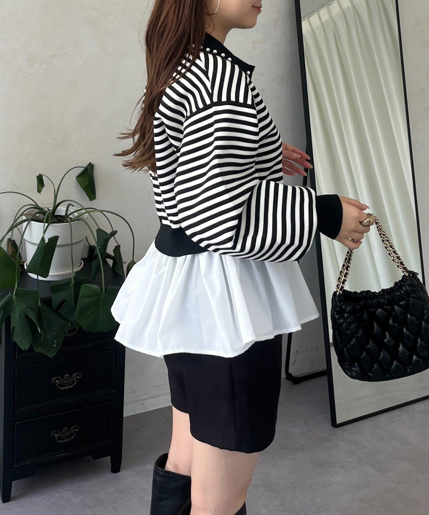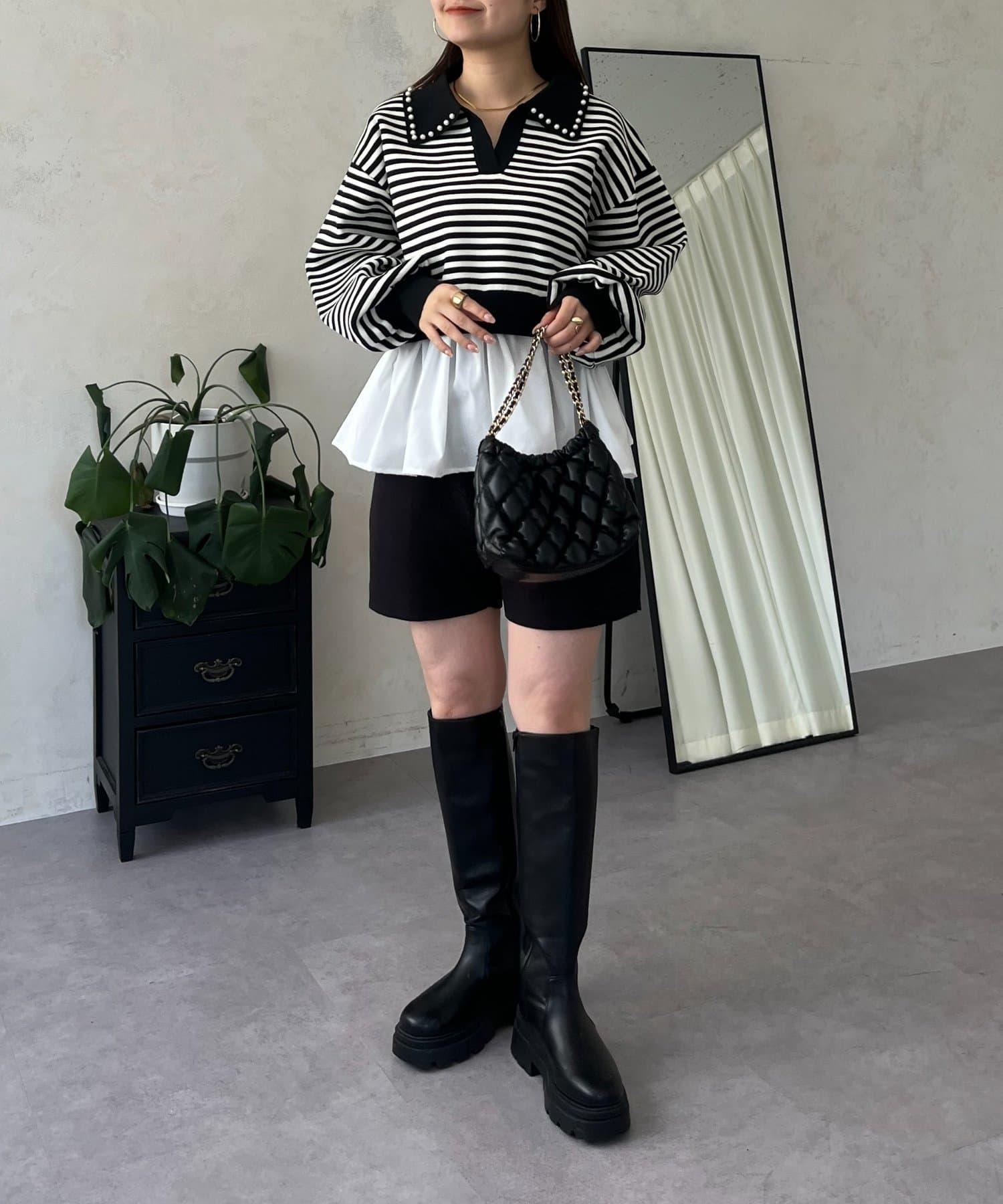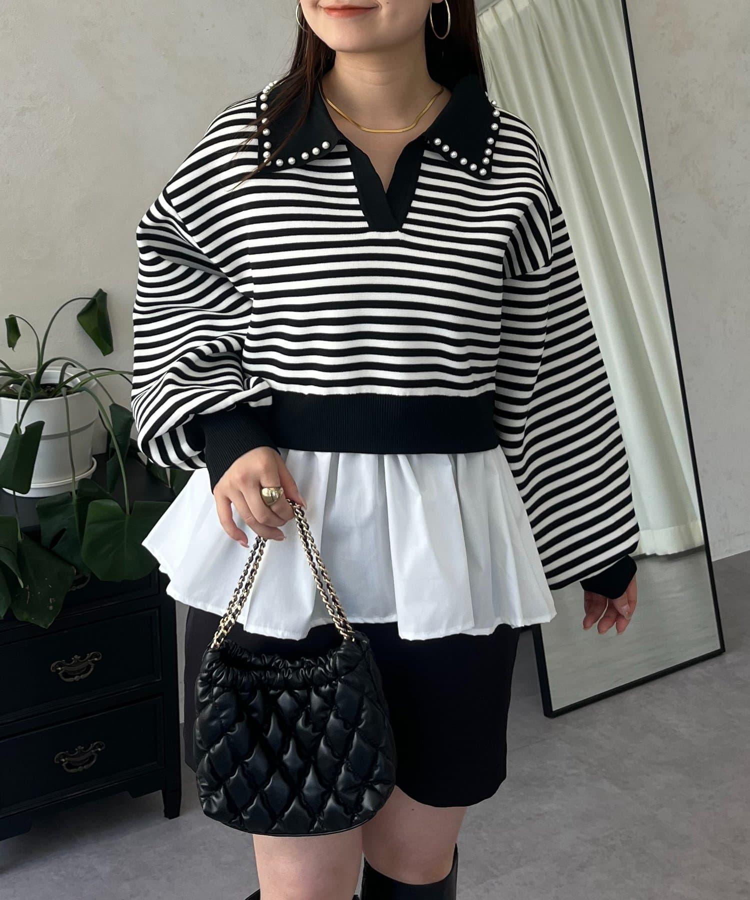 【總選舉參賽單品】珍珠領2way開領荷葉邊針織衫