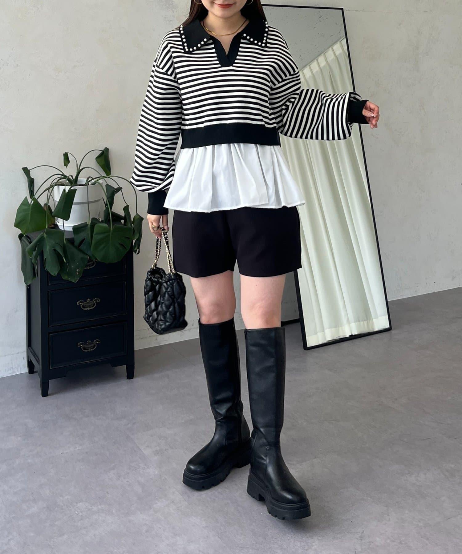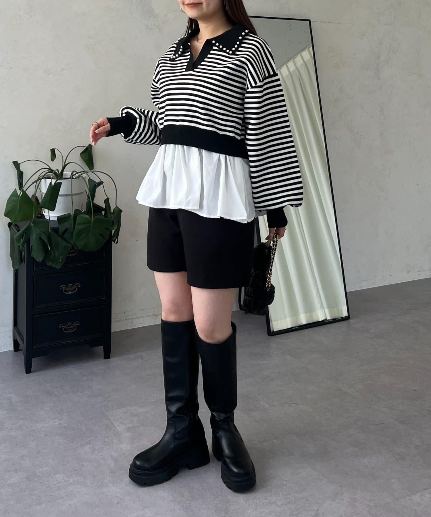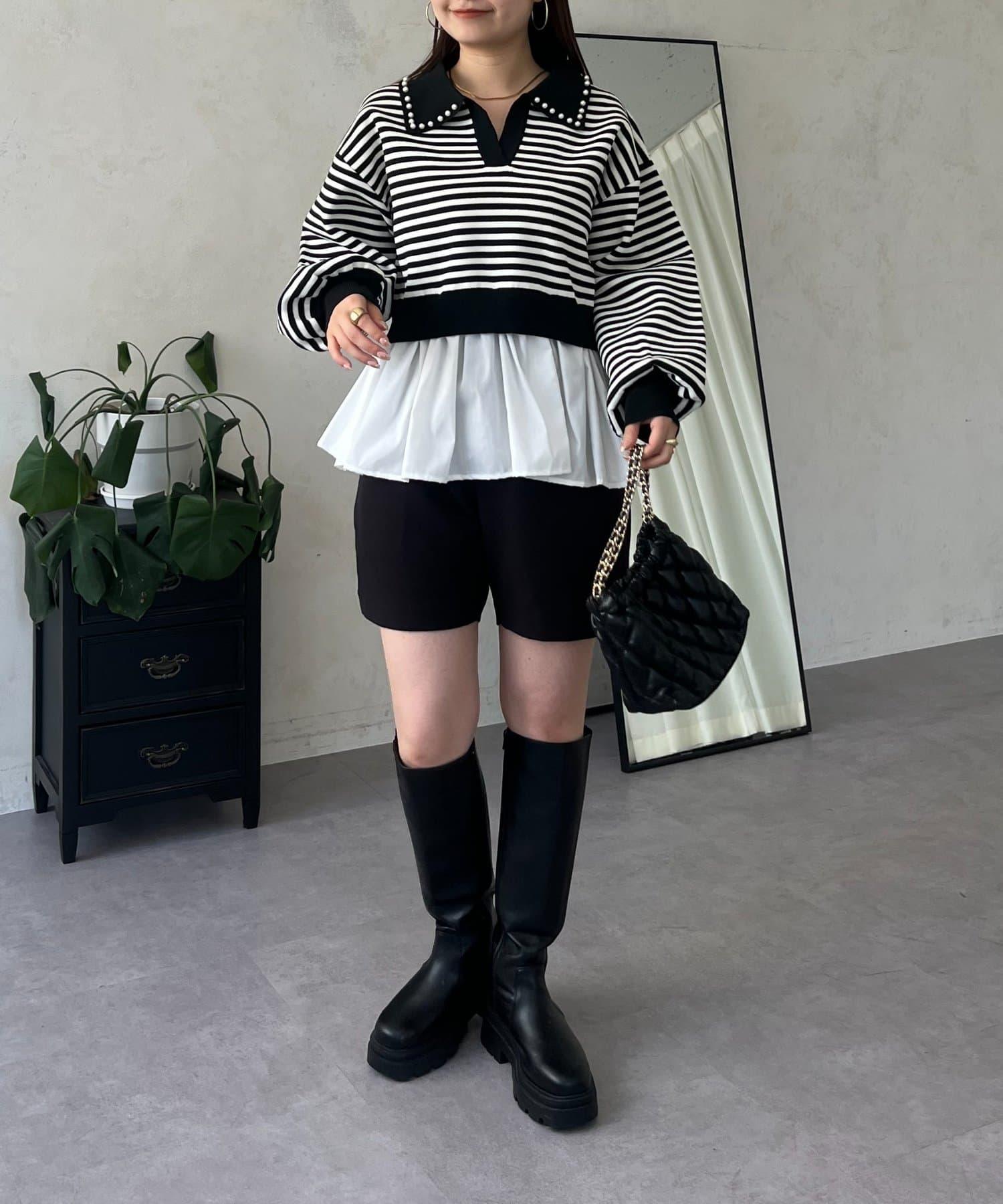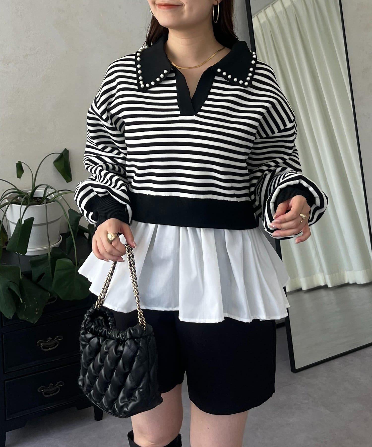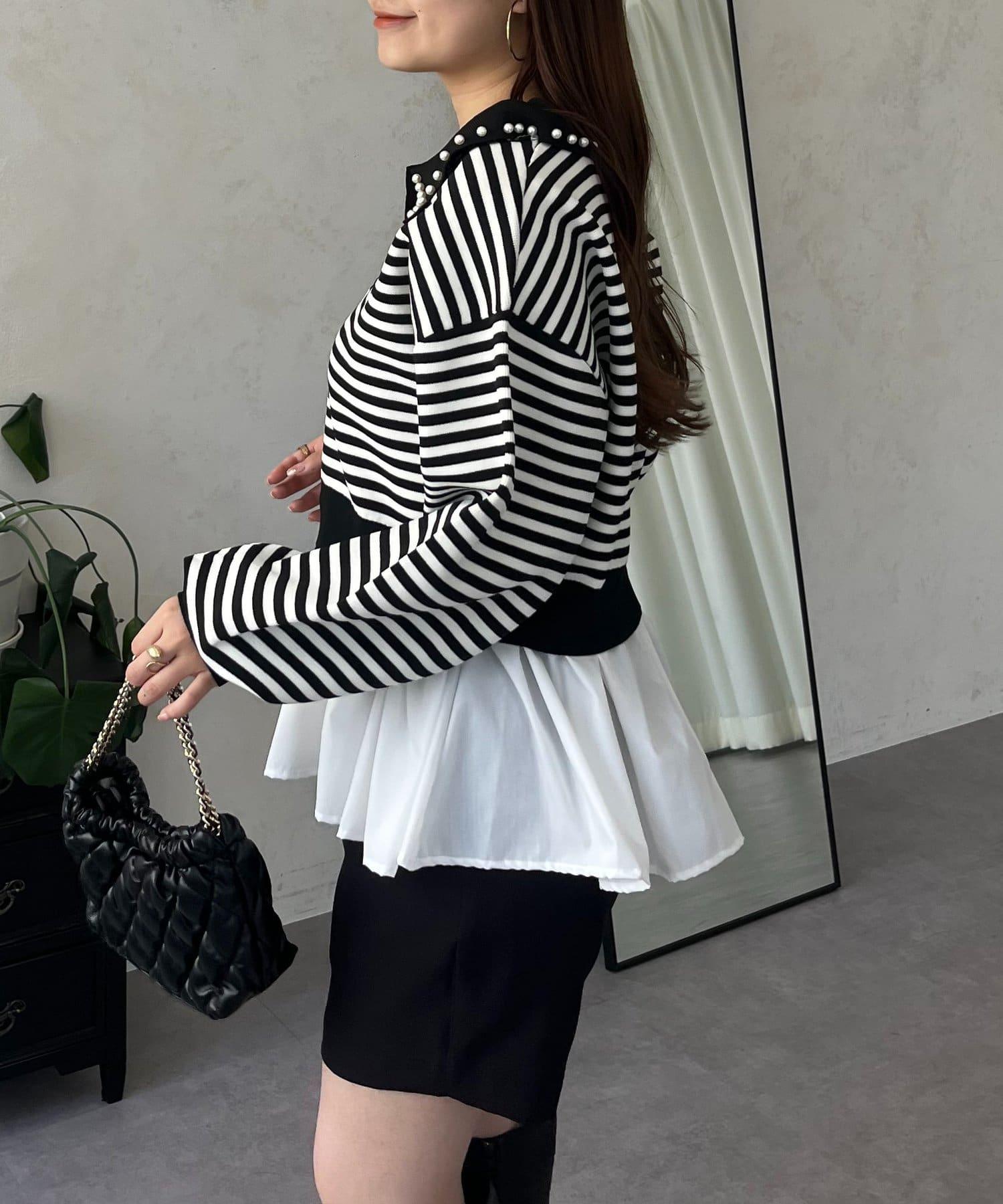 【總選舉參賽單品】珍珠領2way開領荷葉邊針織衫