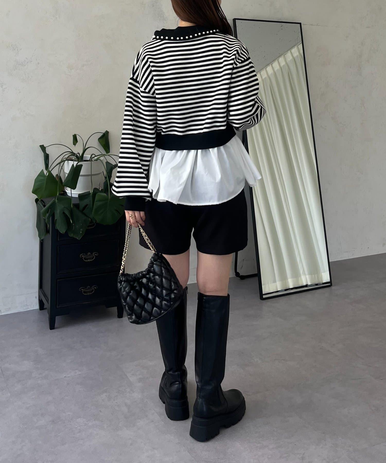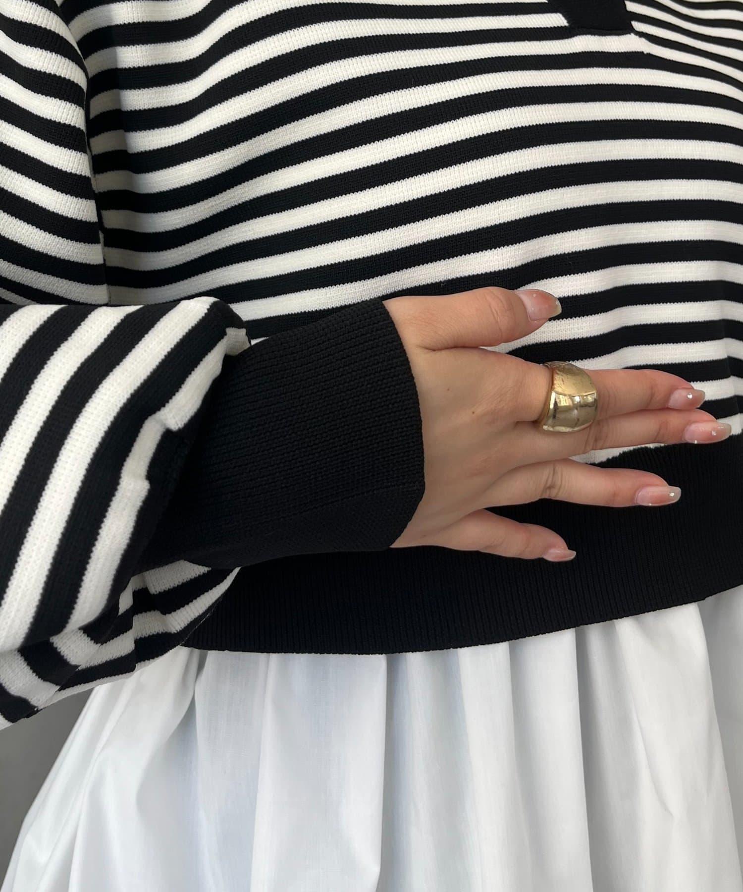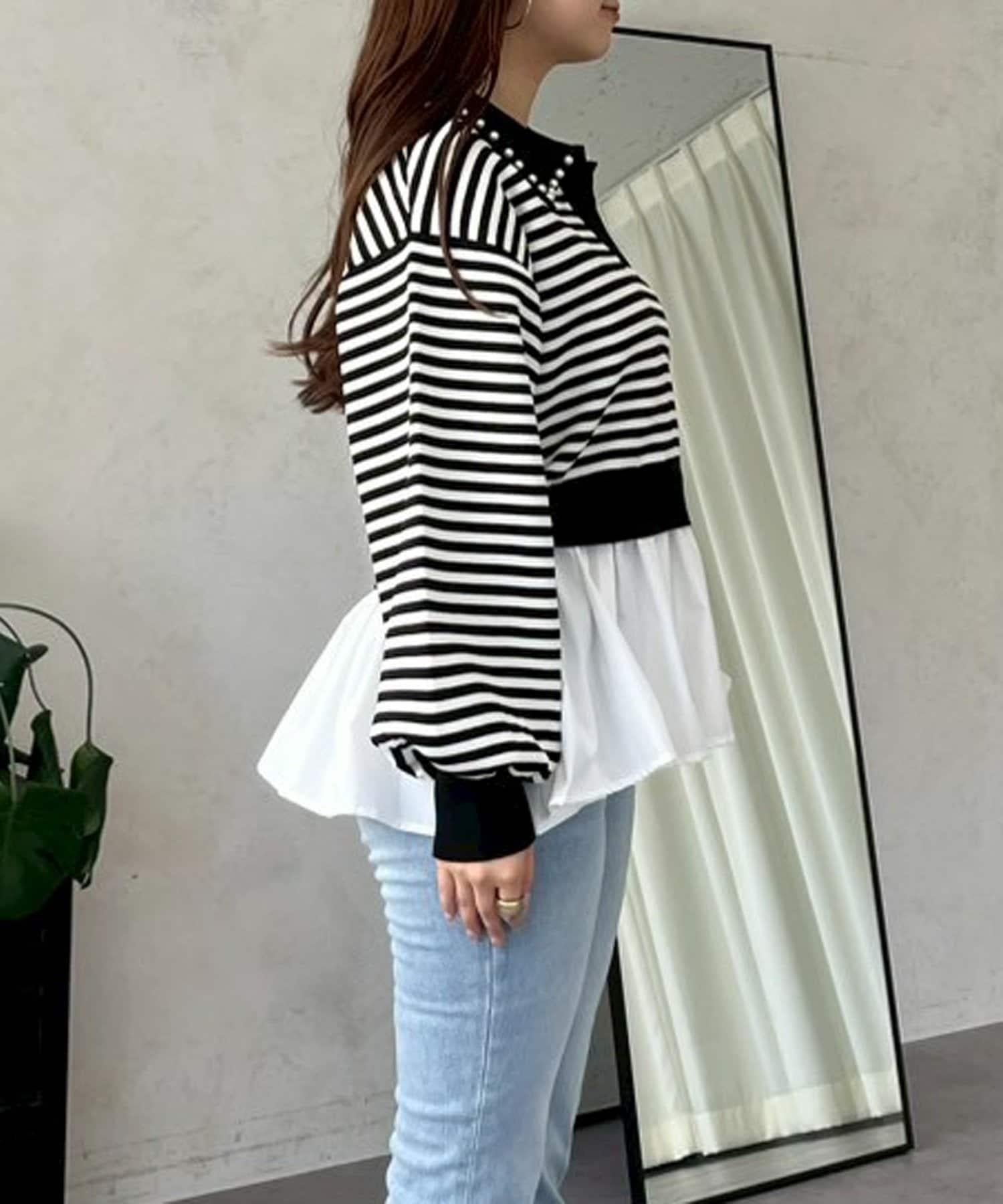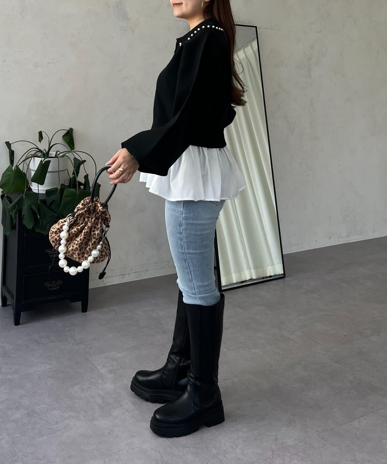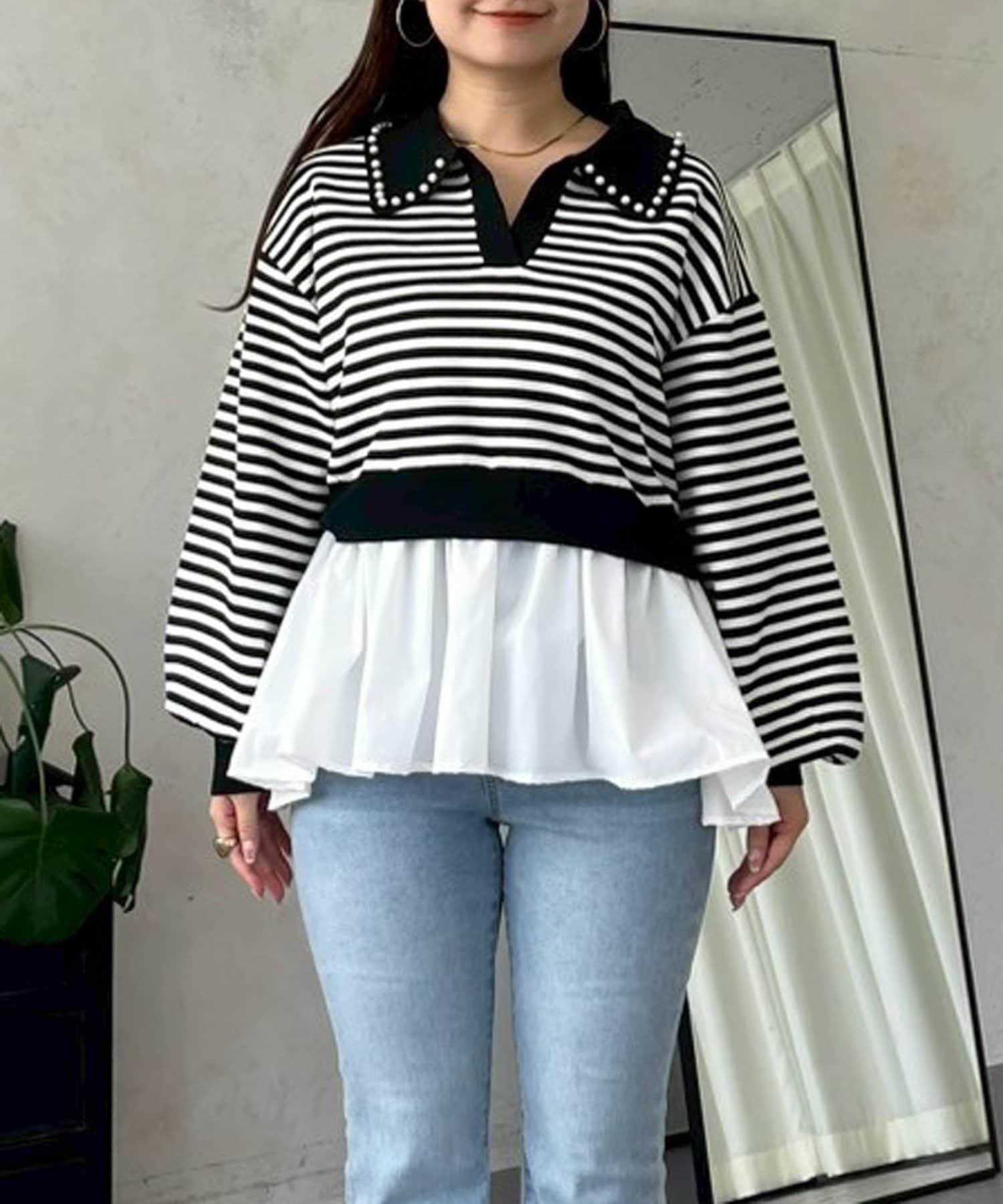 【總選舉參賽單品】珍珠領2way開領荷葉邊針織衫