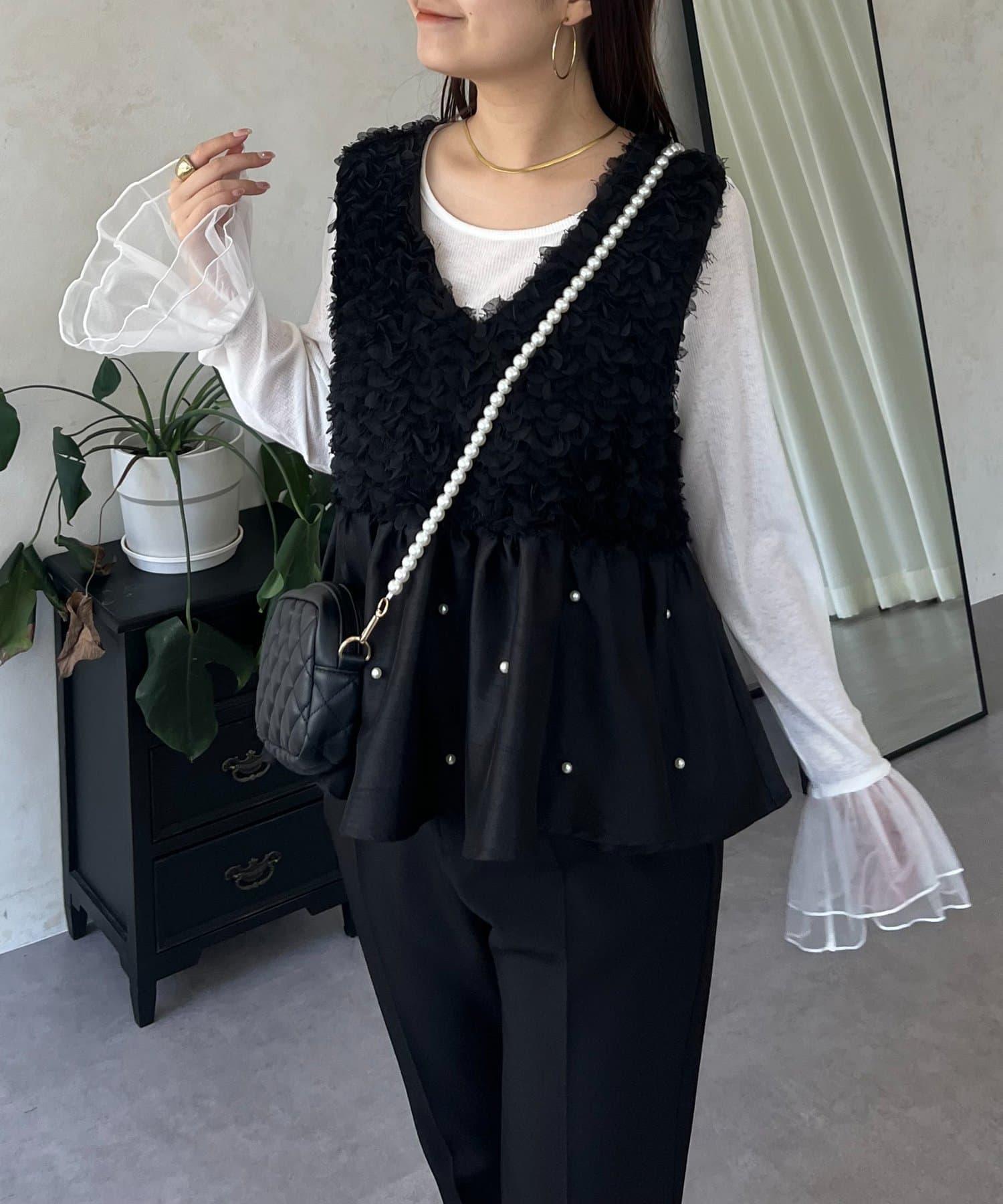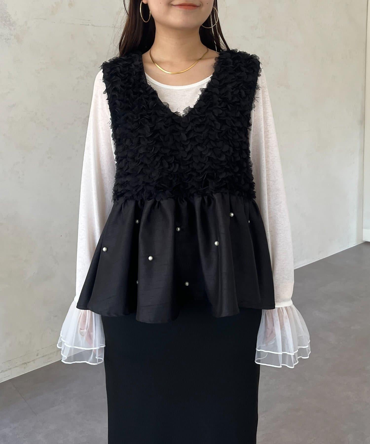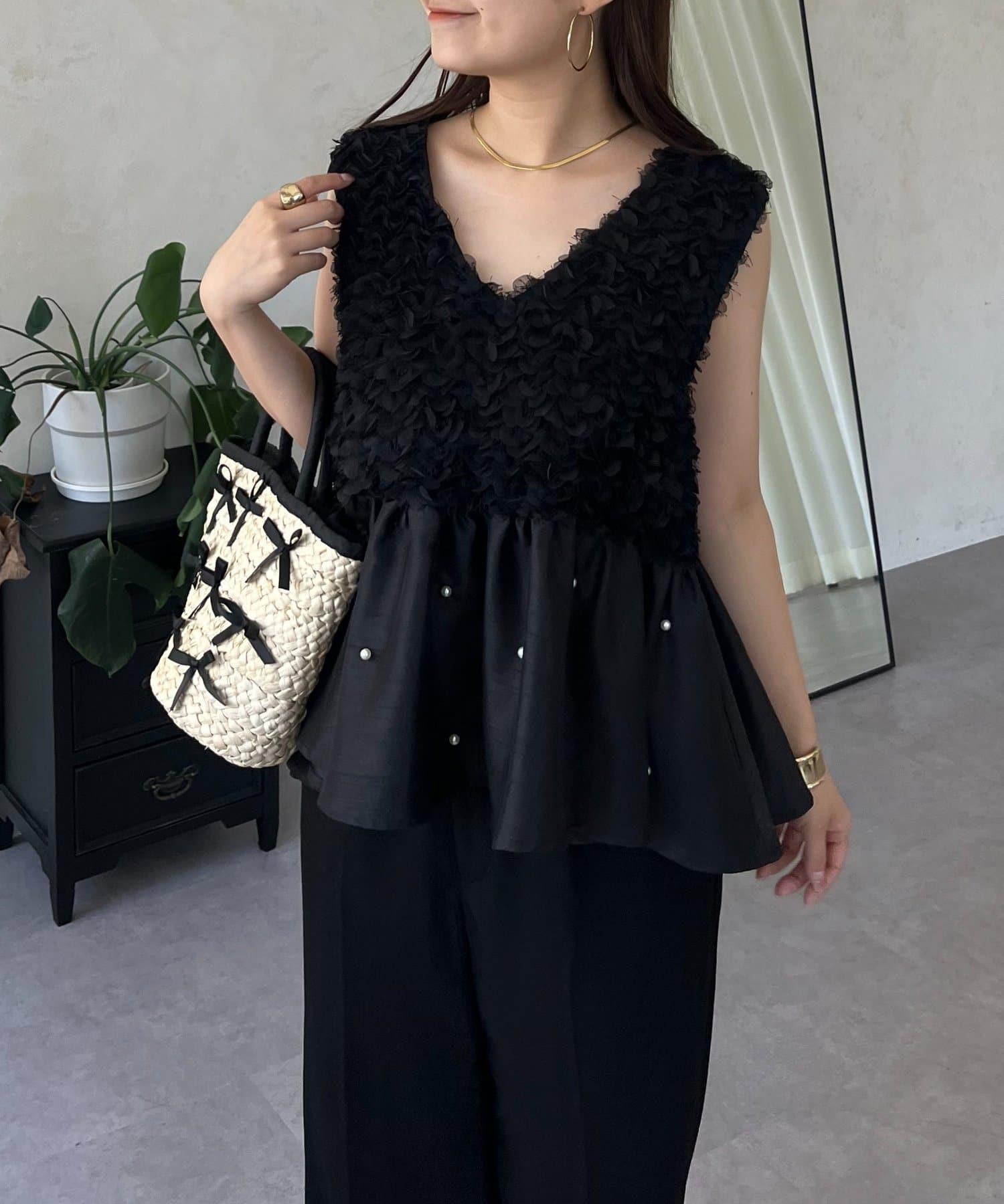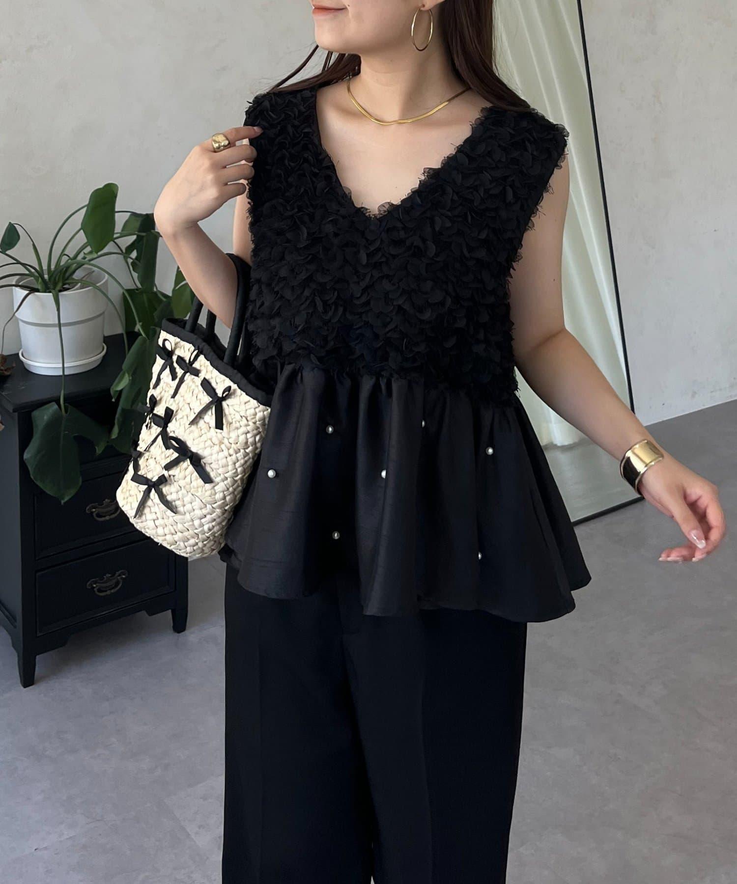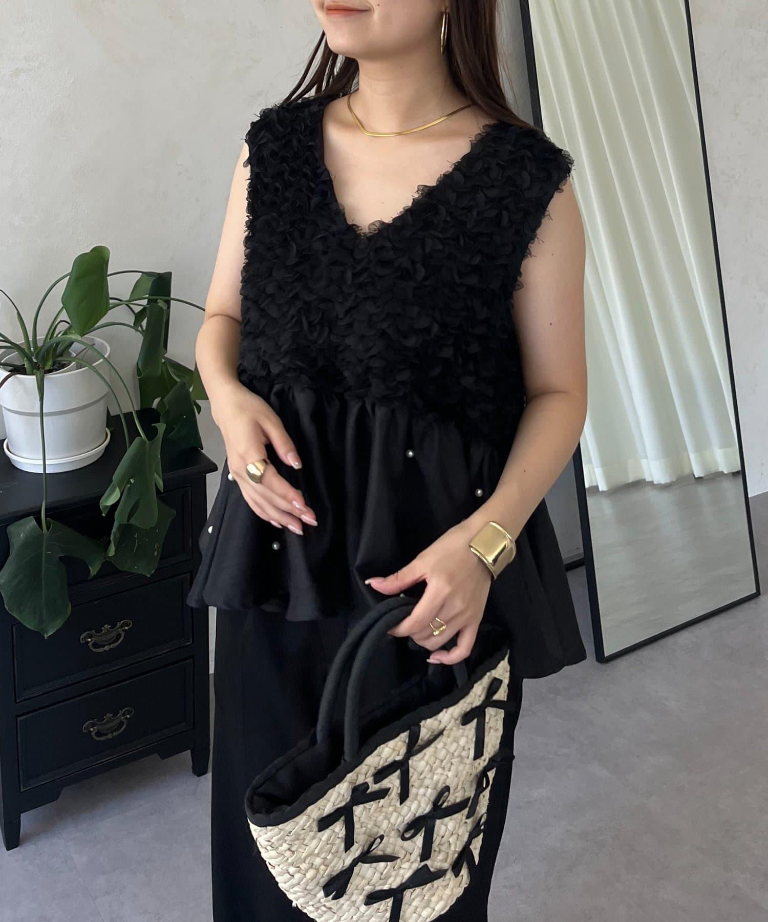 預約商品【總選舉參賽單品】花卉圖案珍珠荷葉邊背心