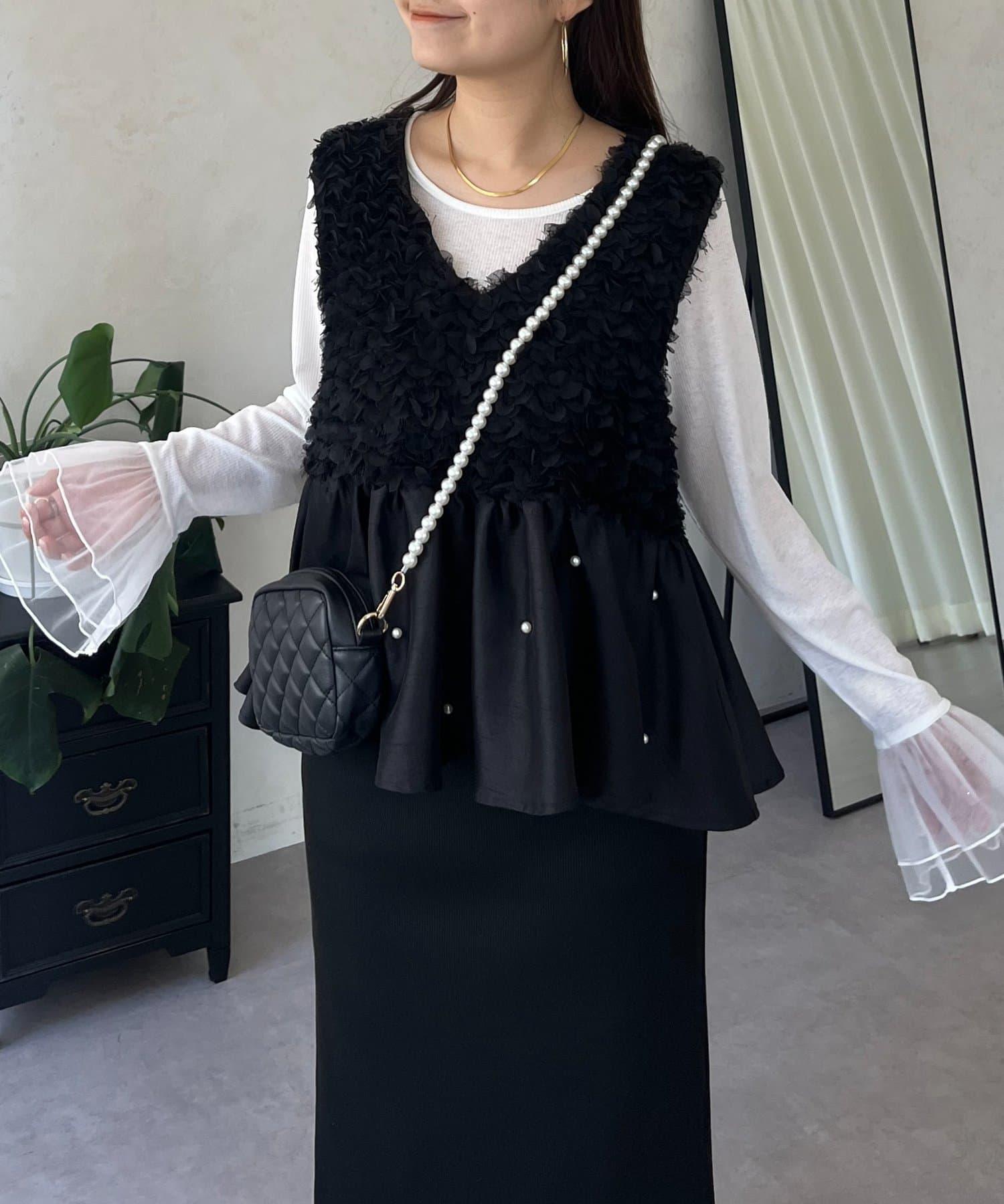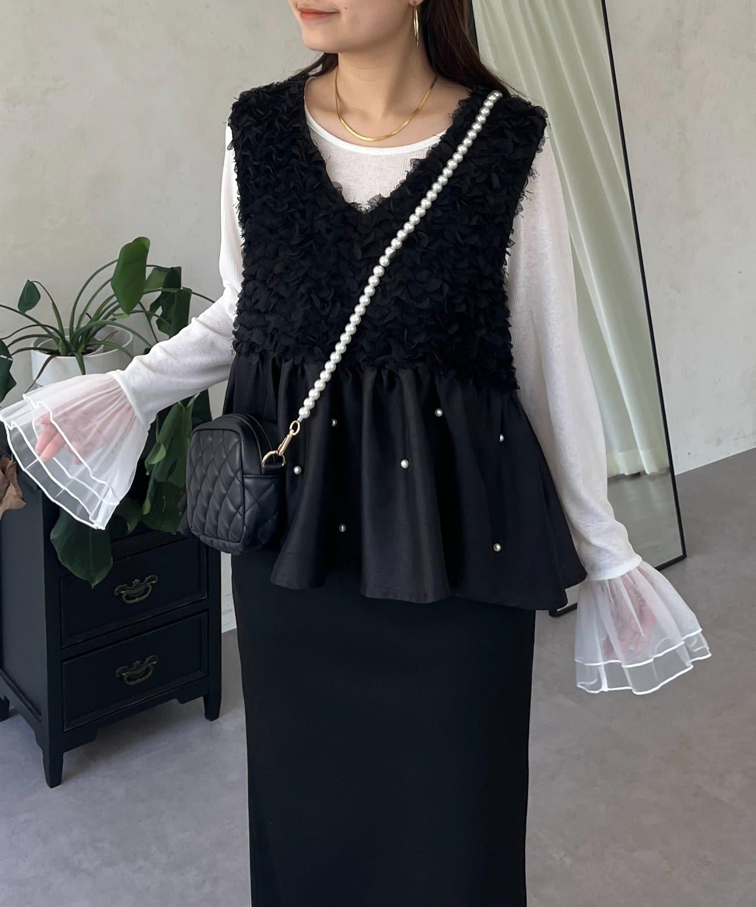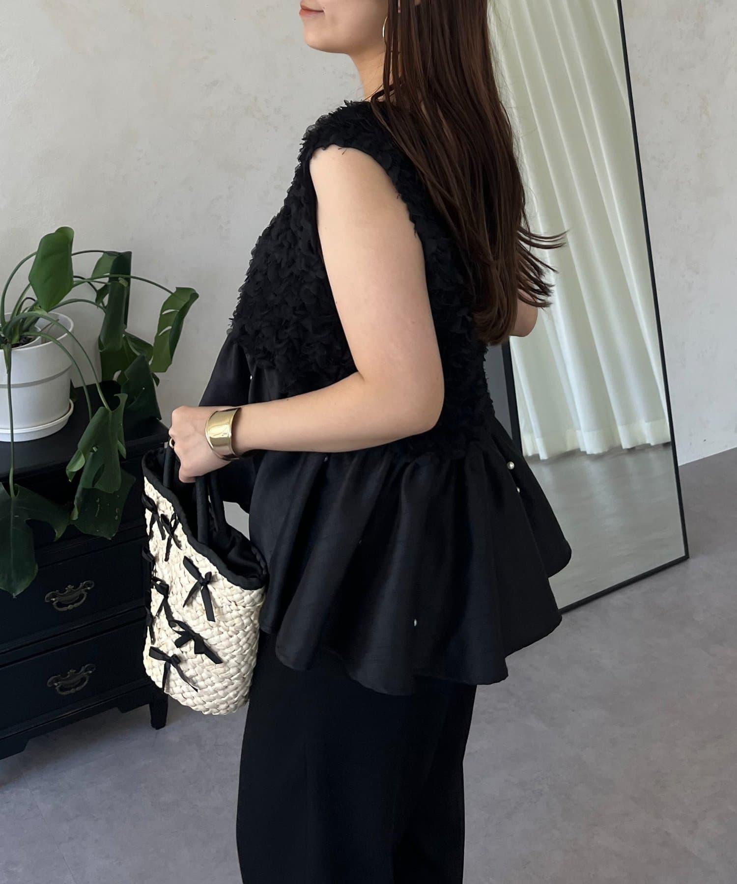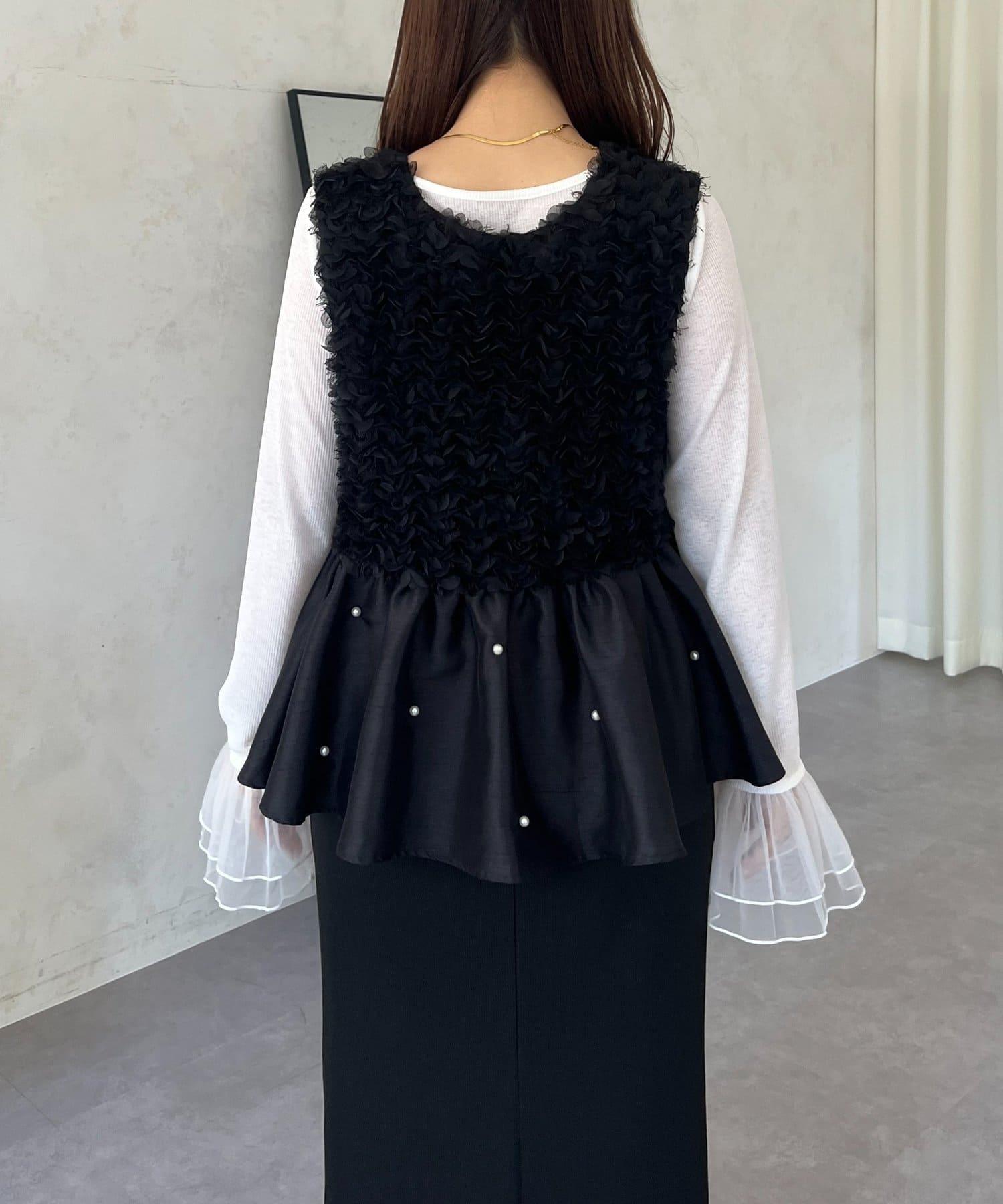 預約商品【總選舉參賽單品】花卉圖案珍珠荷葉邊背心