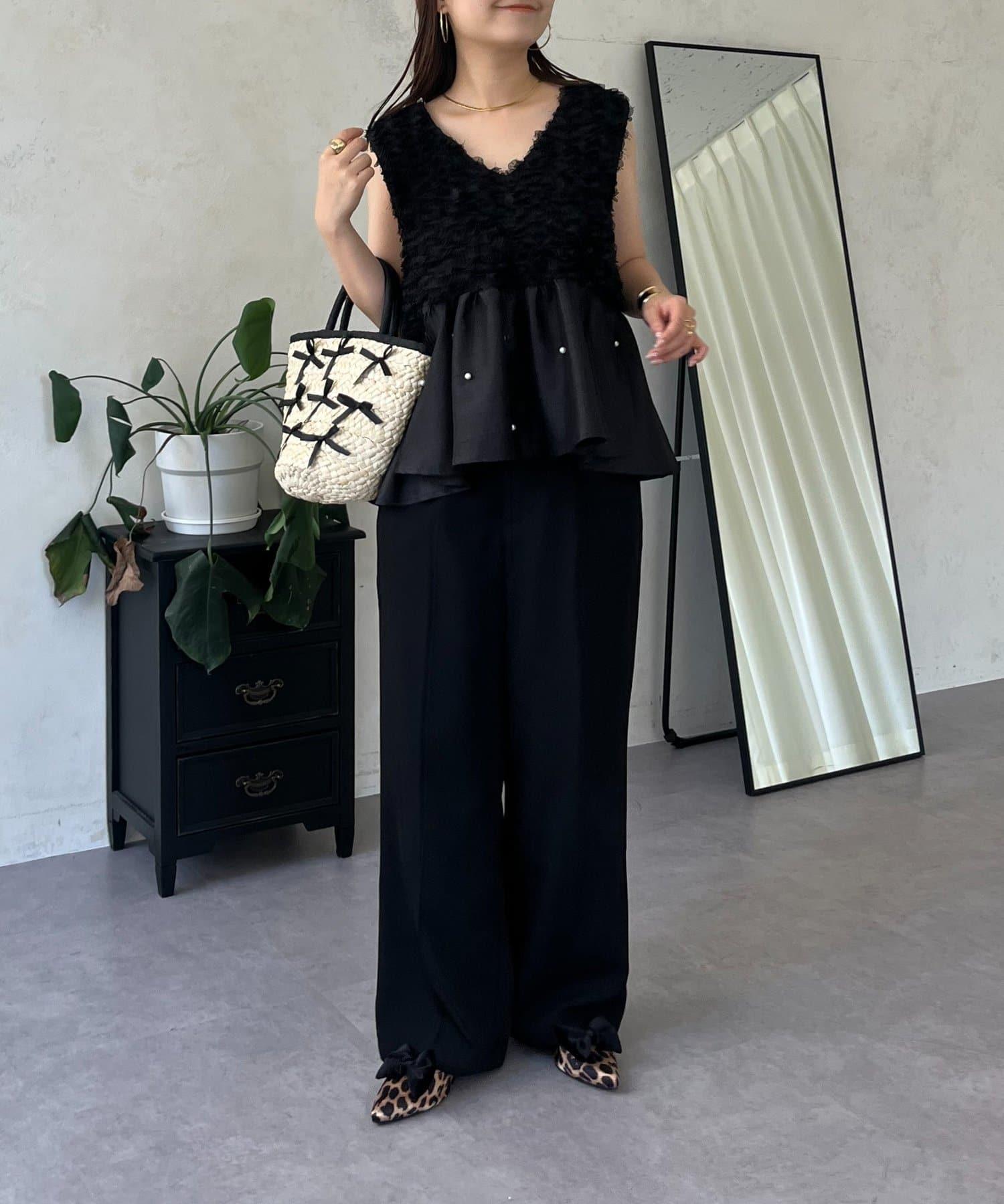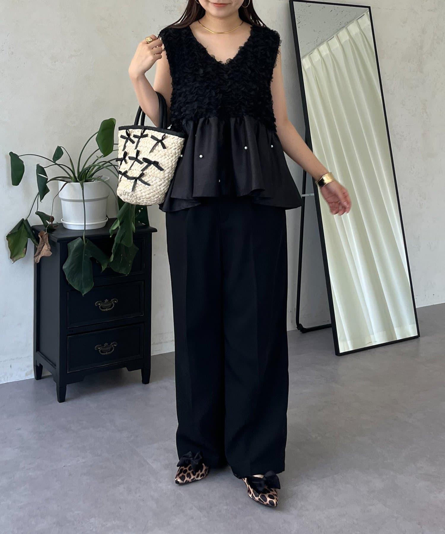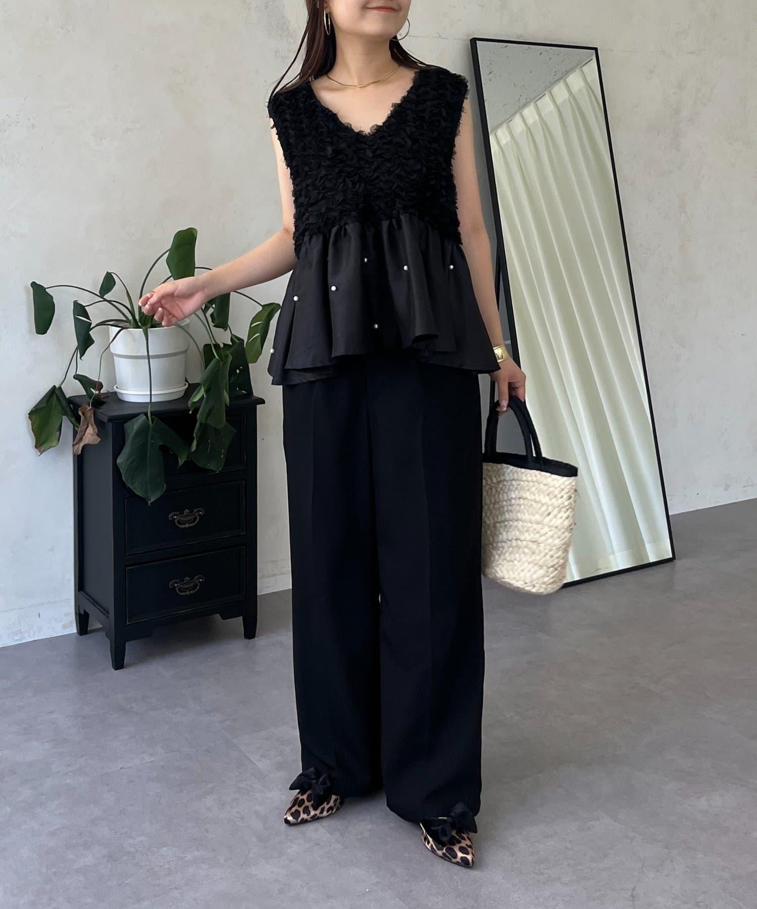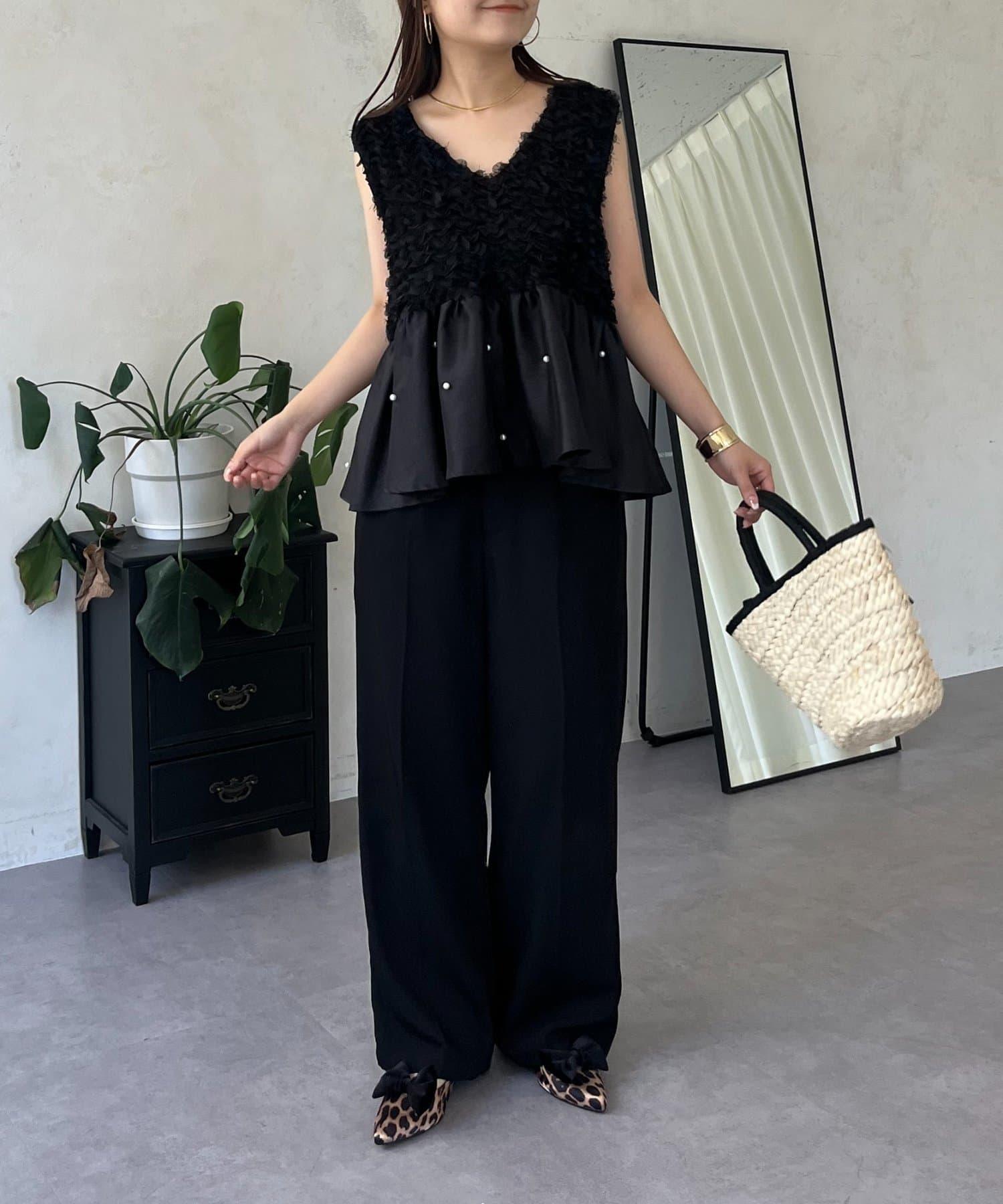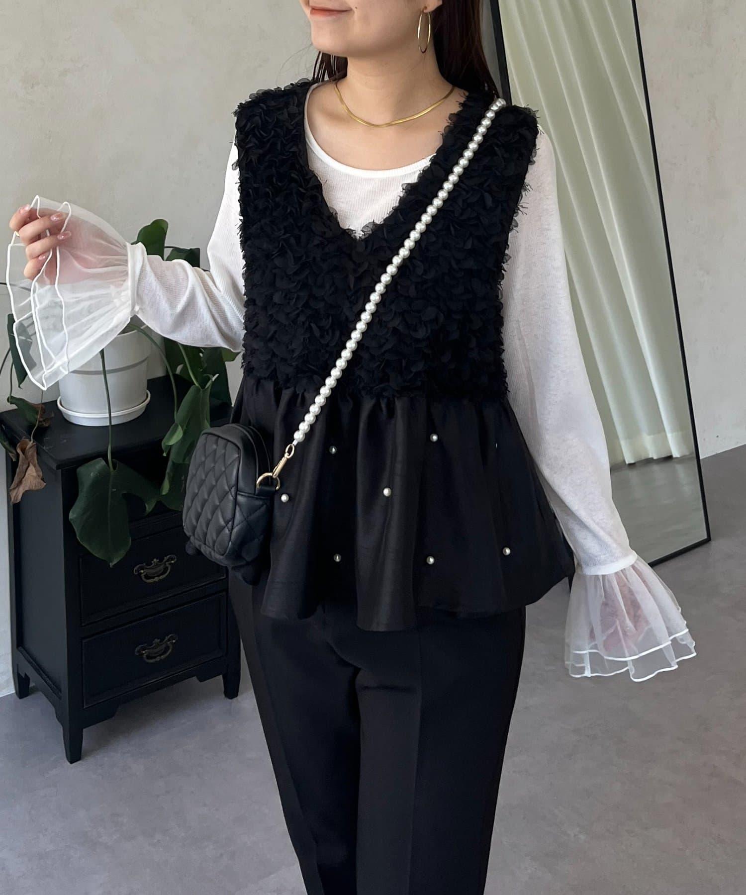 預約商品【總選舉參賽單品】花卉圖案珍珠荷葉邊背心