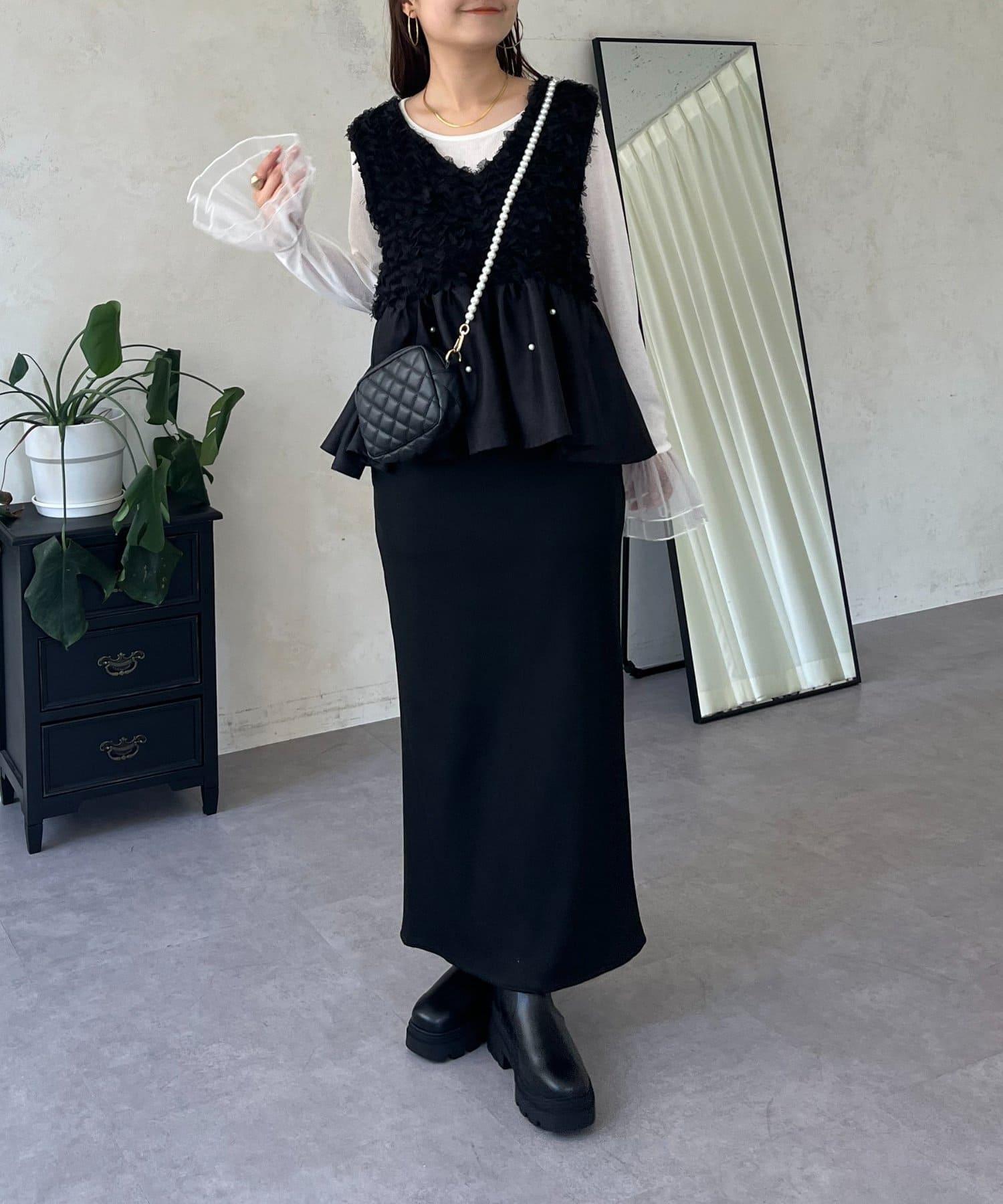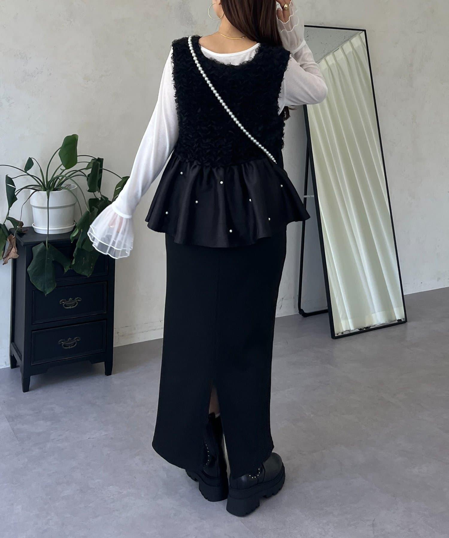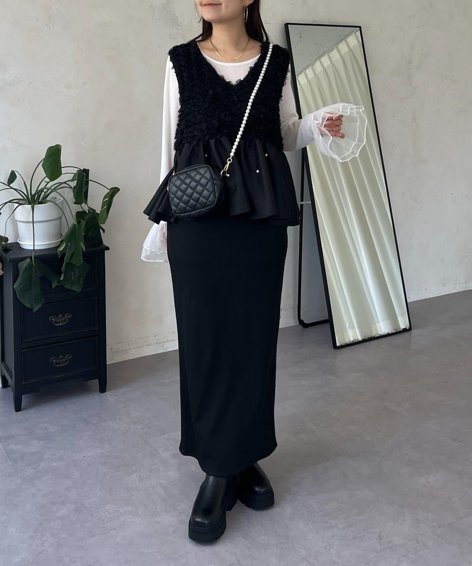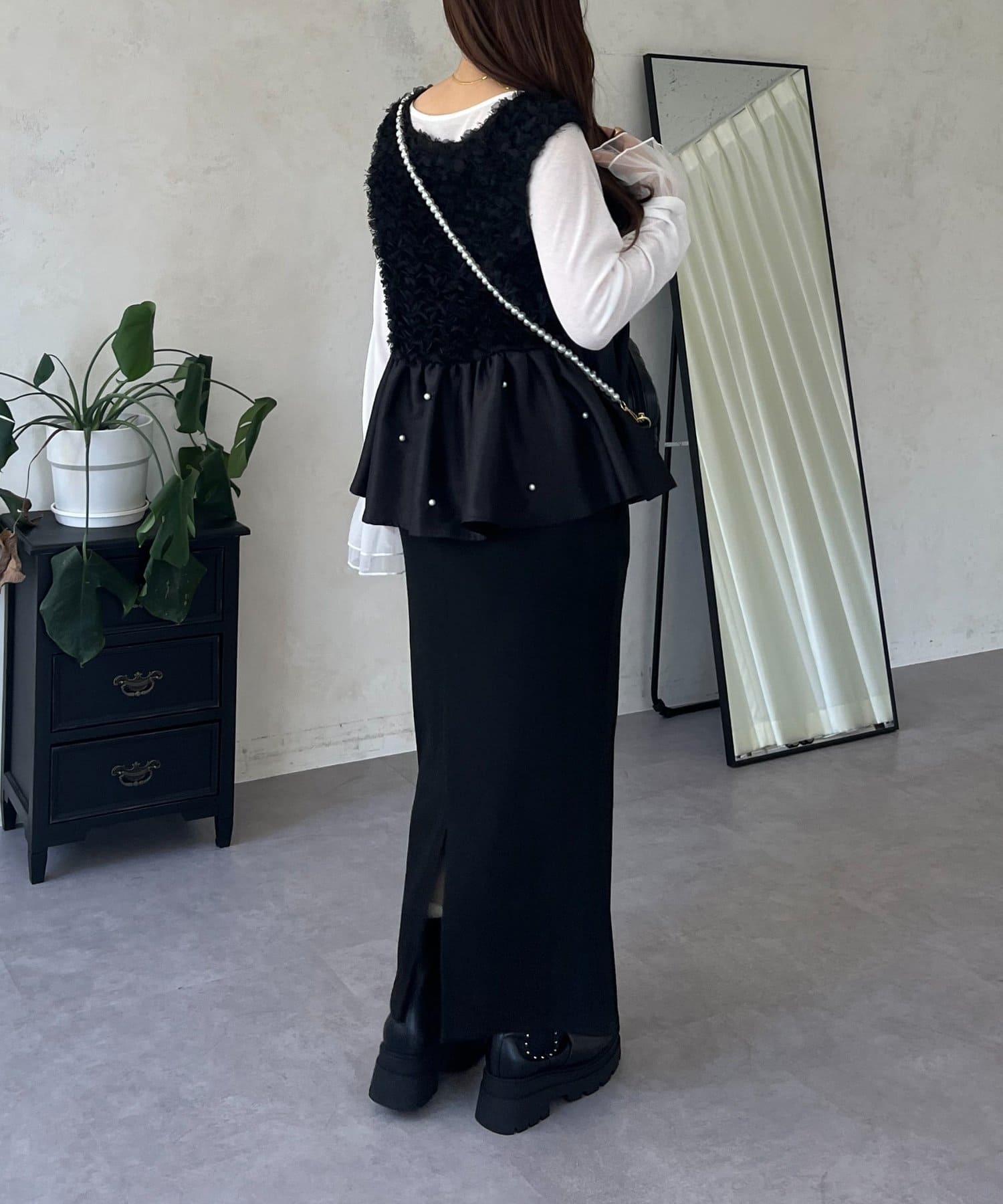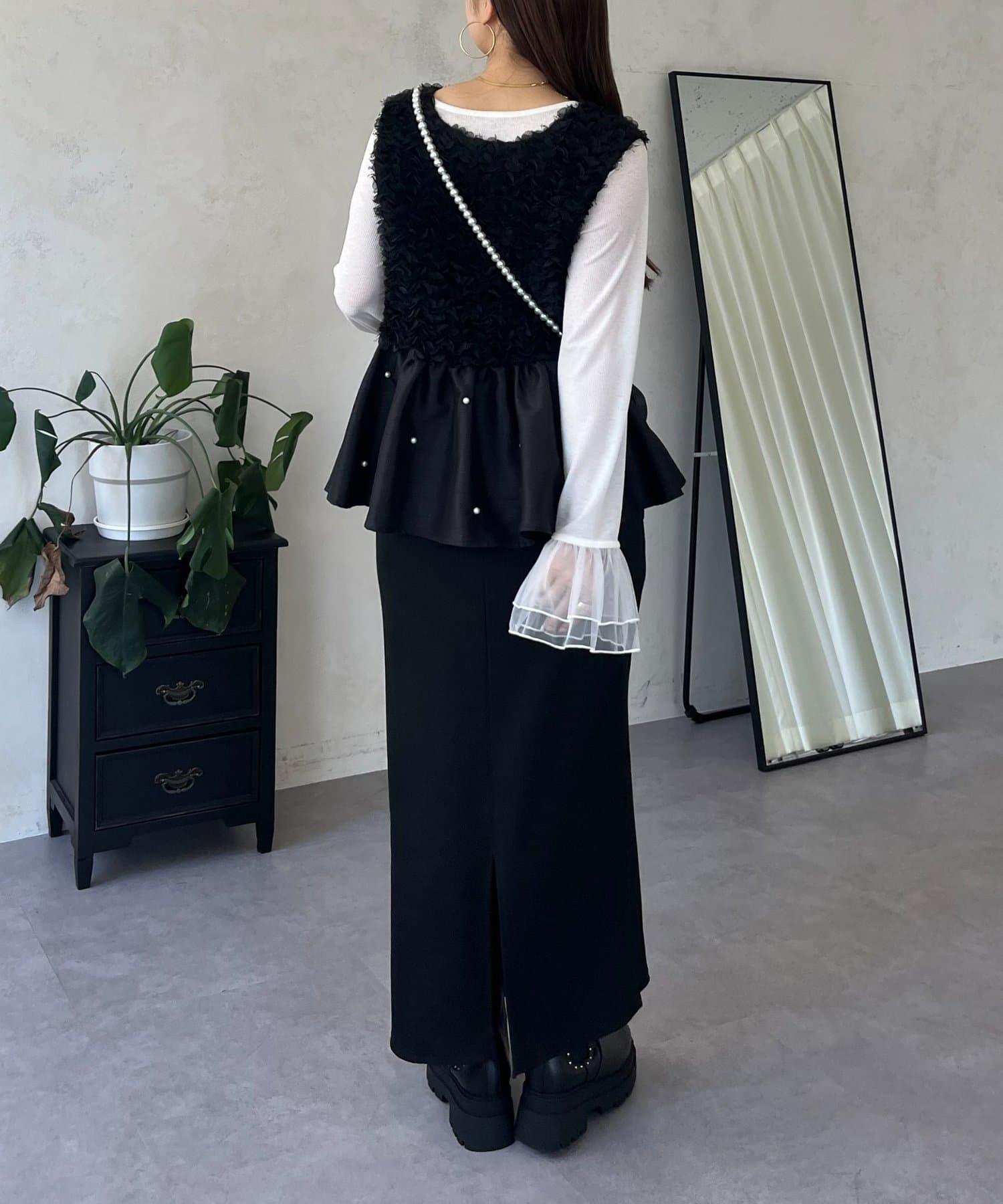 預約商品【總選舉參賽單品】花卉圖案珍珠荷葉邊背心